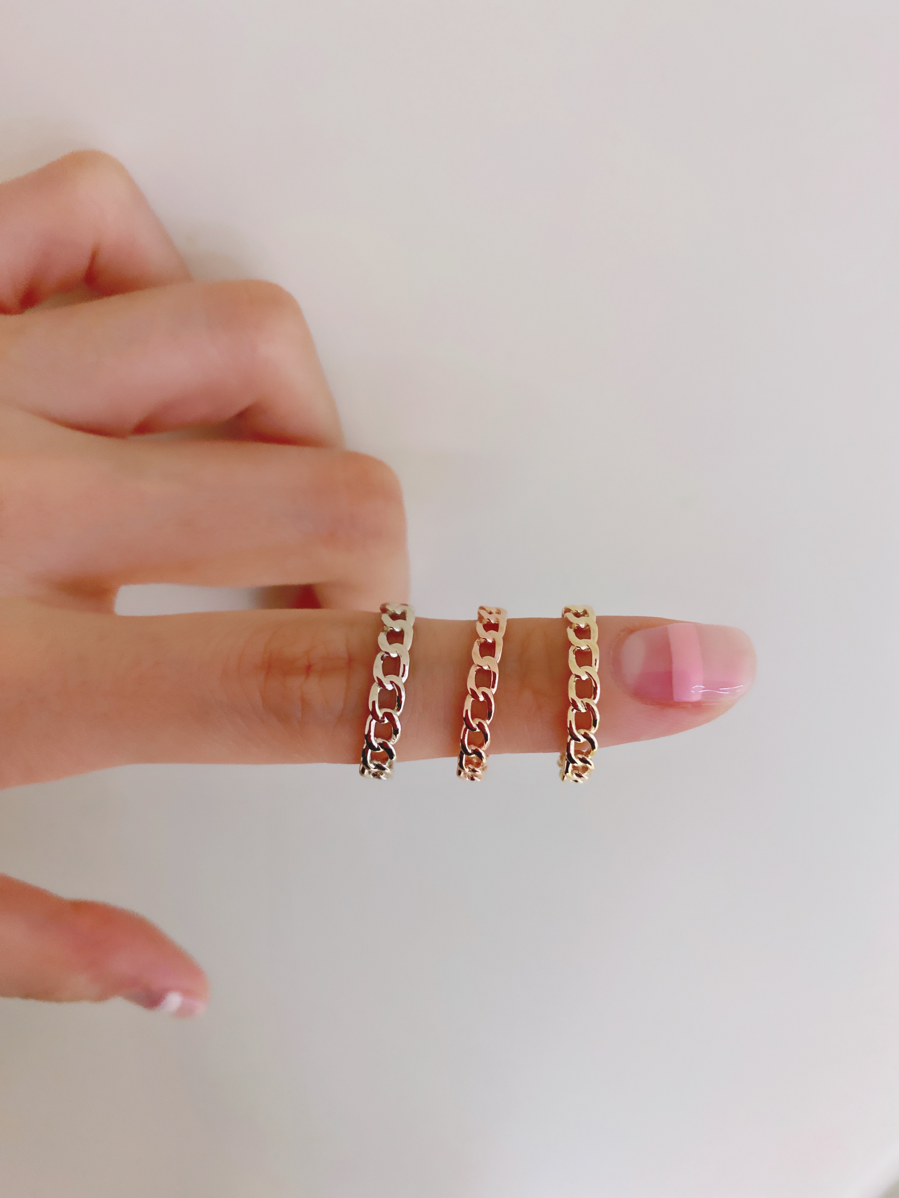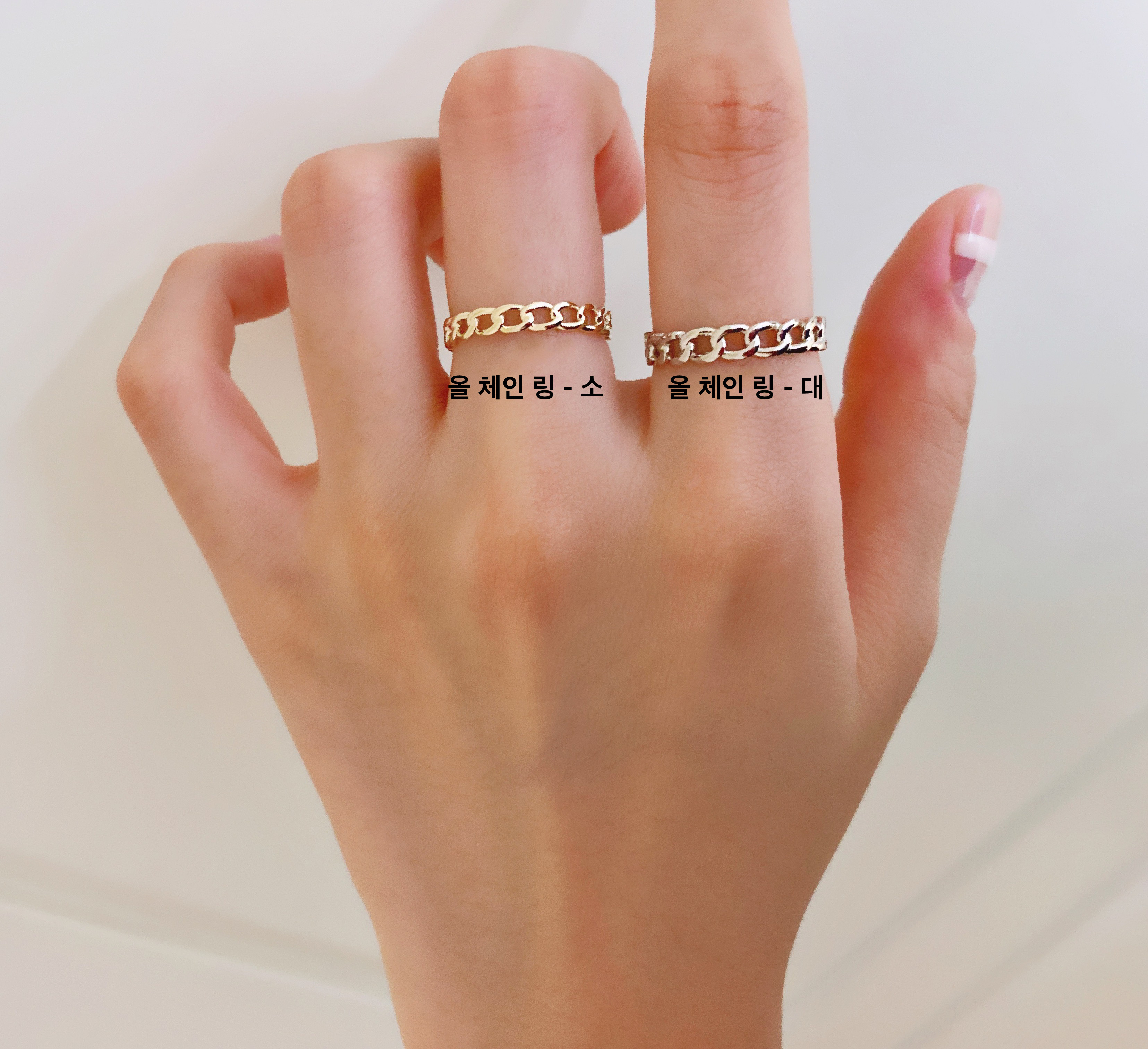 올 체인 링은 360도 전체 체인이 반복되는 디자인으로 사이즈 줄임/늘림이 불가하여 주문 전 정확한 사이즈 측정 후 구매 권장합니다.