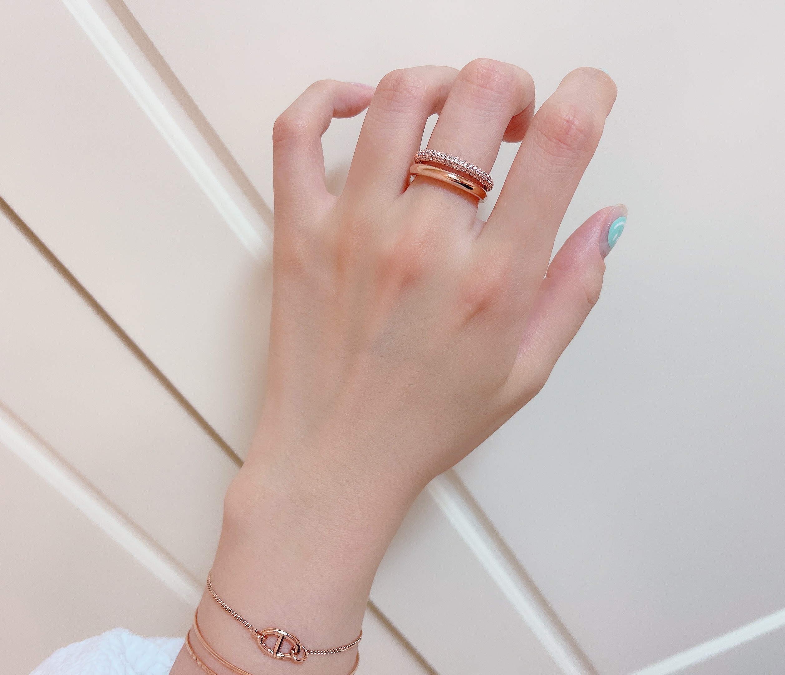 "할로우"는 제품 안쪽이 비어있다는 의미로 착용하시고 손에 힘이 세게 들어가는 기구 운동, 병뚜껑을 따는 행위같은 반지에 물리적인 센 힘이 가해지는 등의 경우는 피해주셔야 합니다.