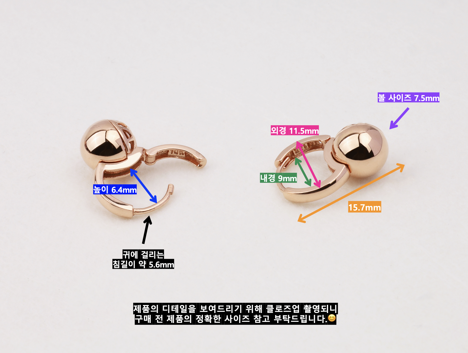 ▫️ 귀걸이 사이즈: 내경 9.0mm, 외경 11.5mm, 안쪽 높이 6.4mm