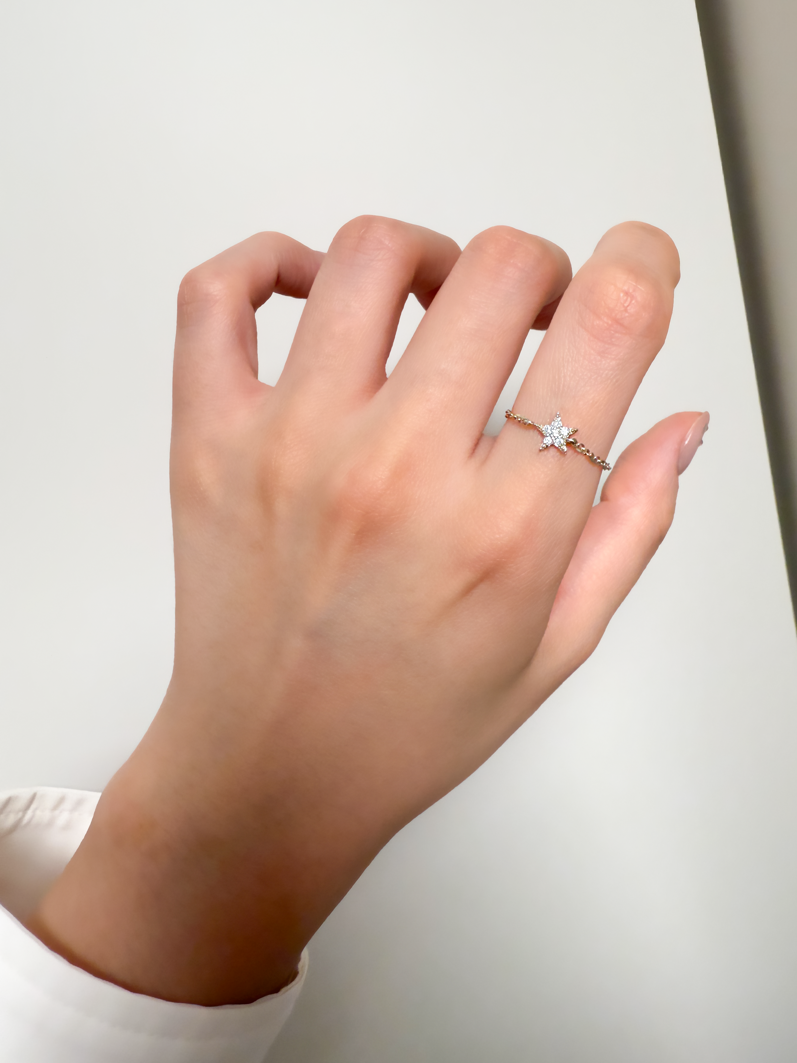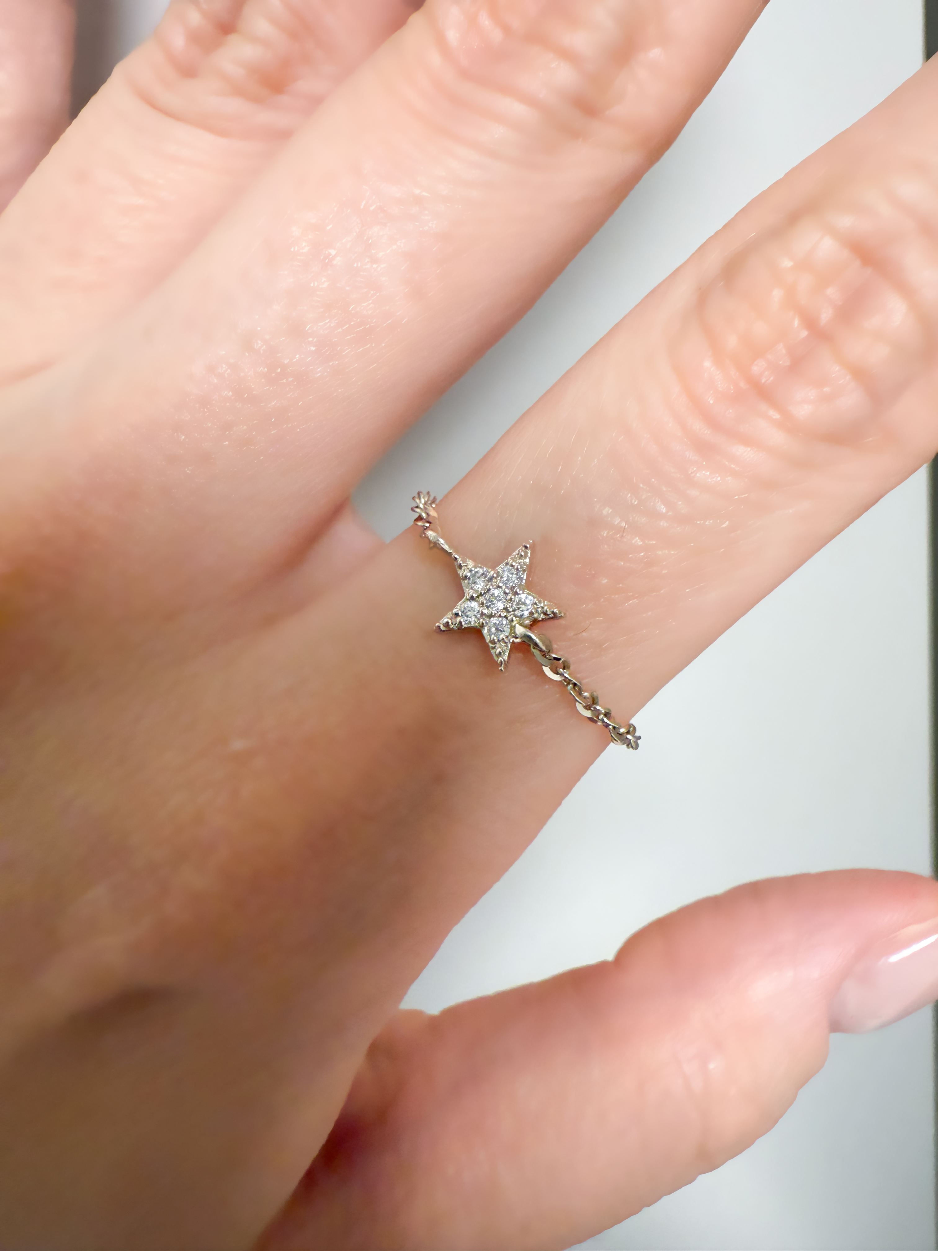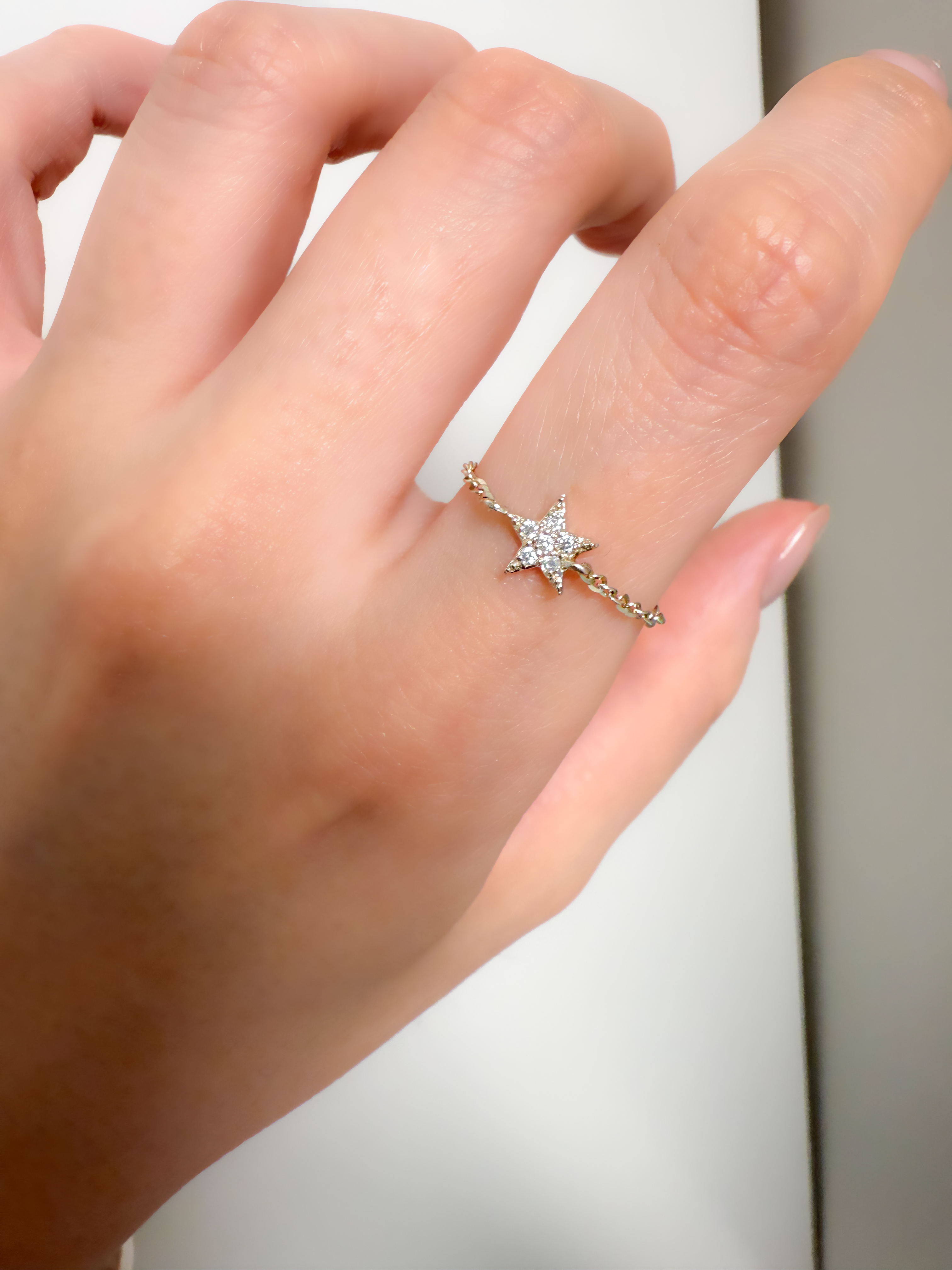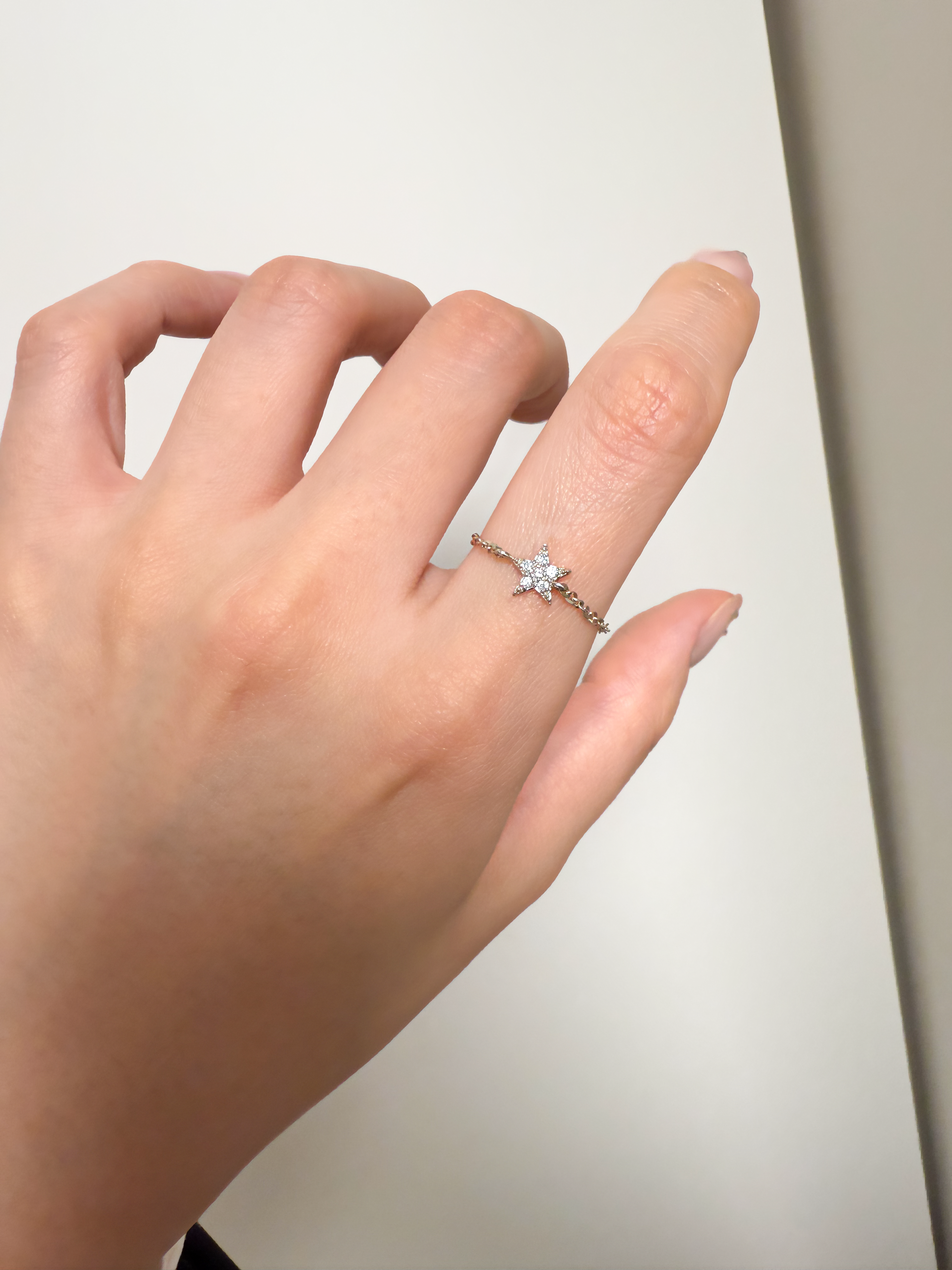 아토 다이아몬드 체인 링은 메인 펜던트가 별 디자인으로 체인을 돌돌 돌려서 내리면 별이 잘 뒤집어지지 않을 수 있어