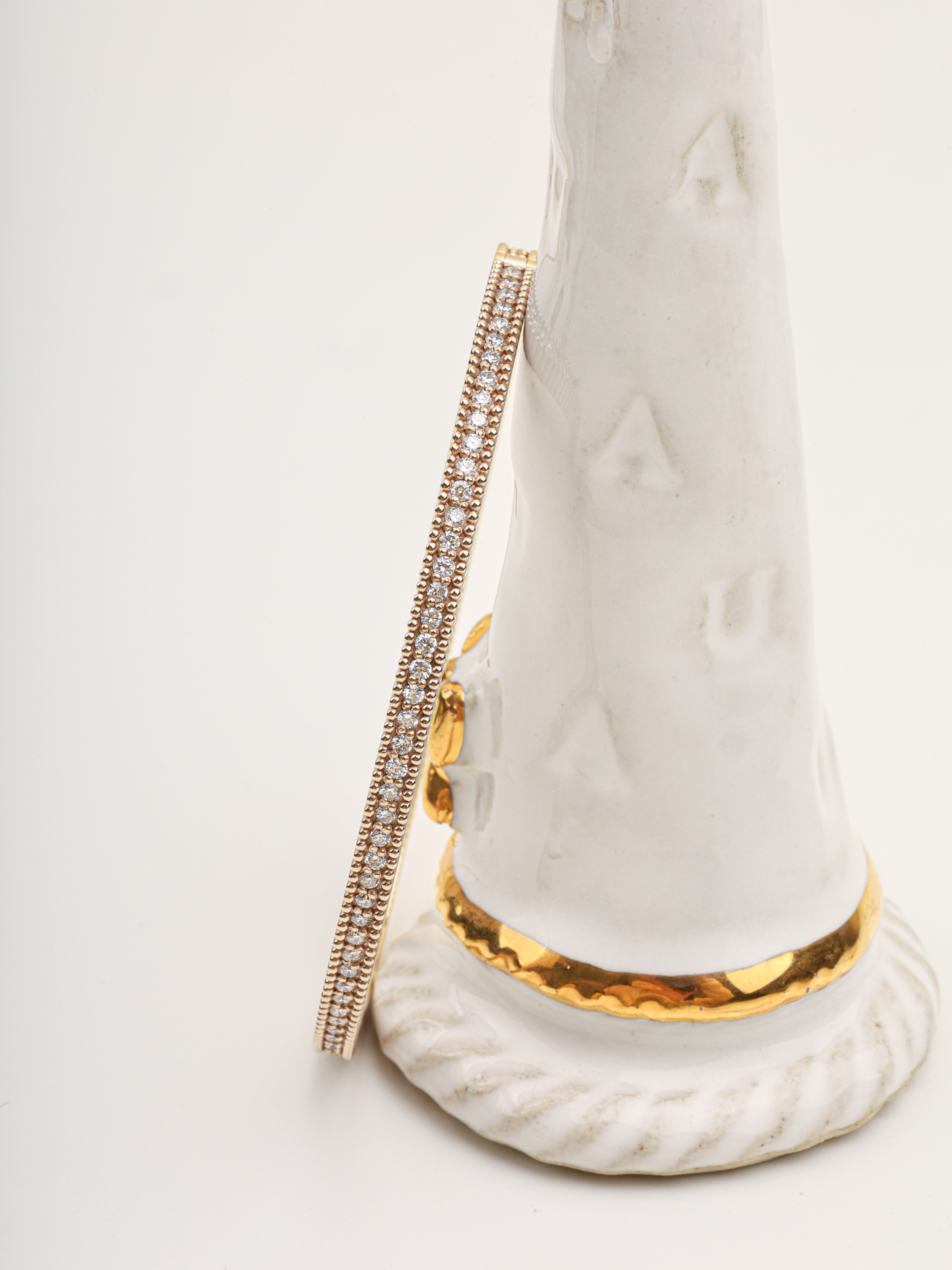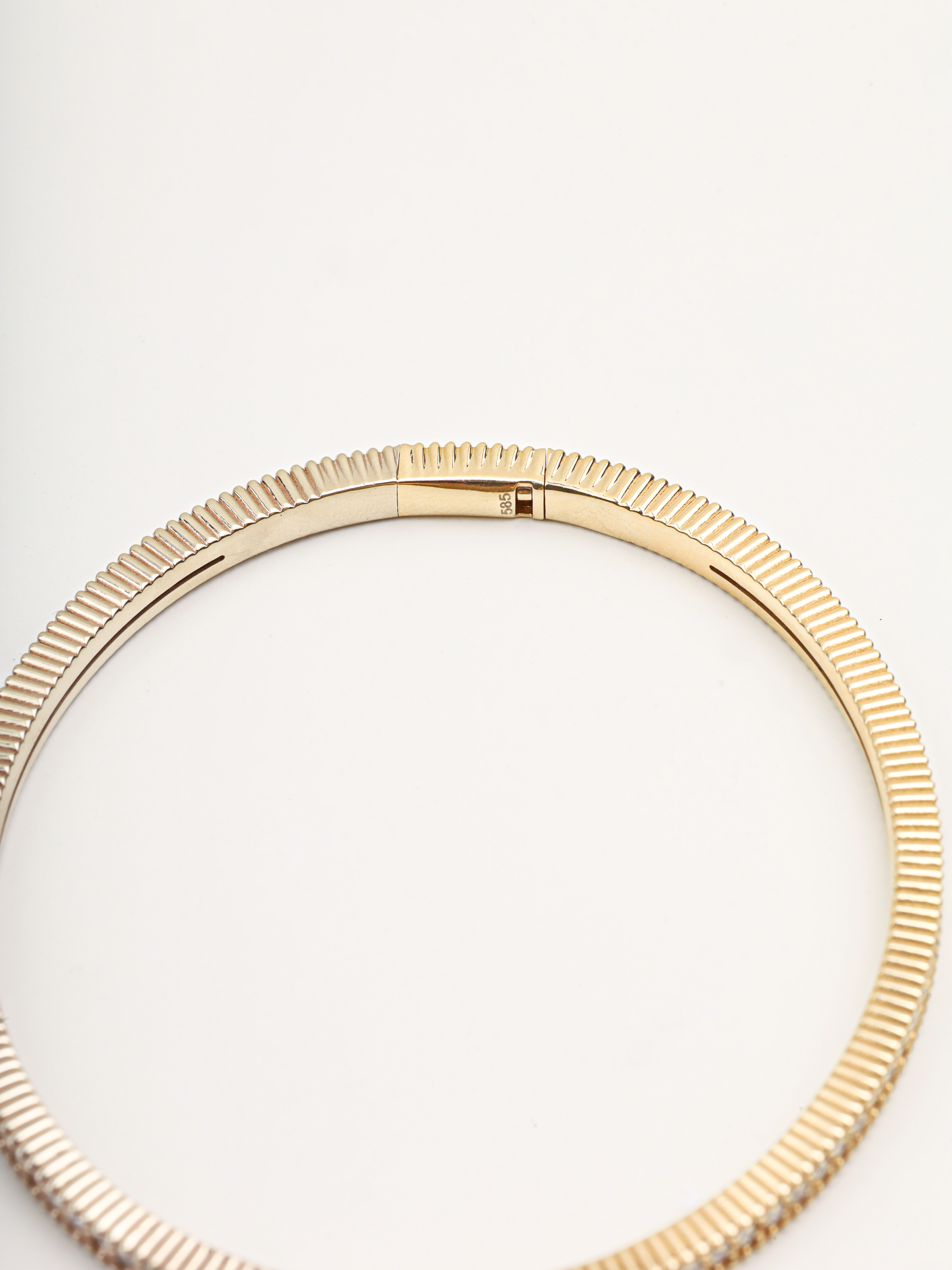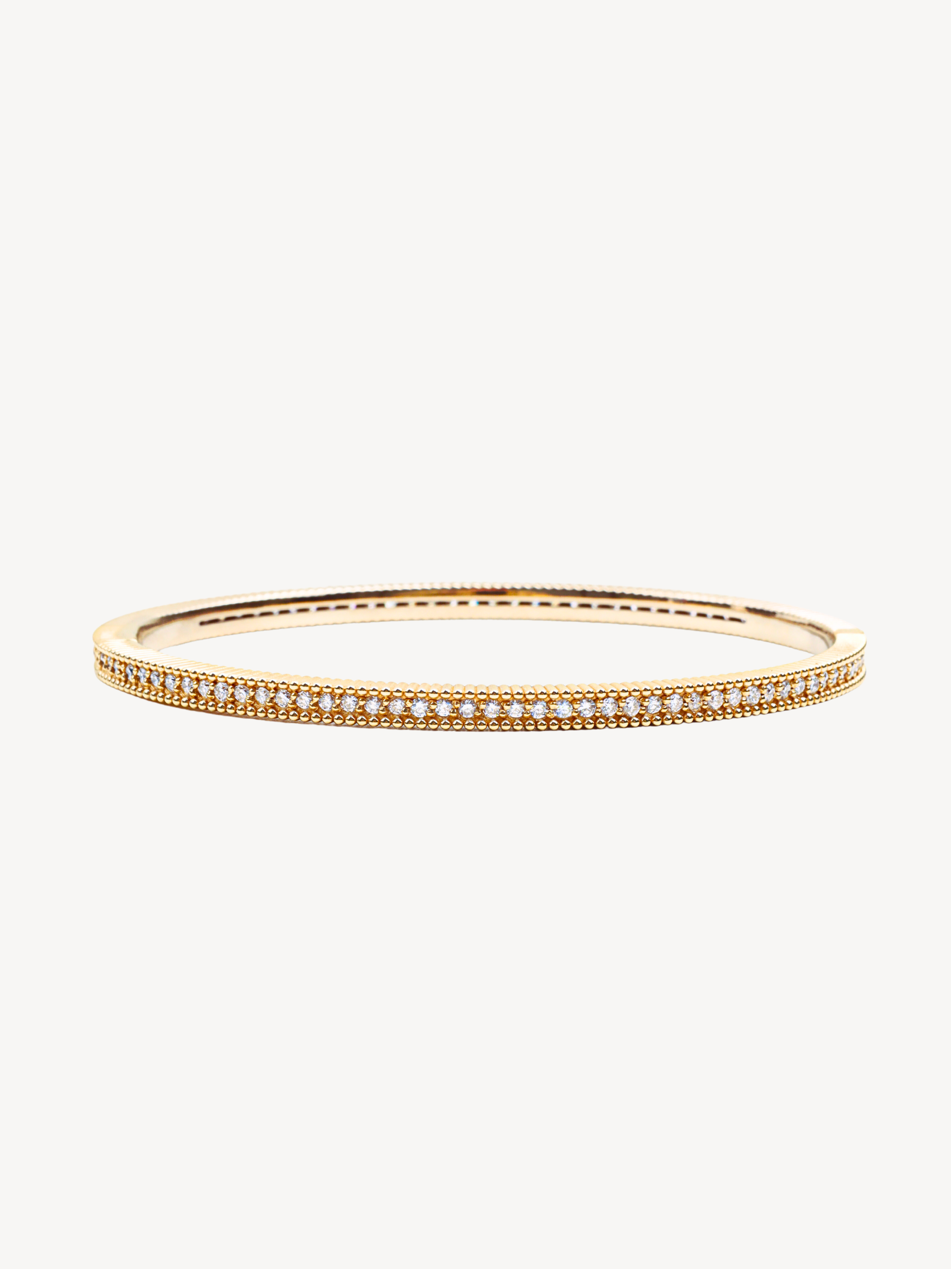 클래식한 라인에 다이아몬드가 정교하게 세팅된 뱅글입니다.