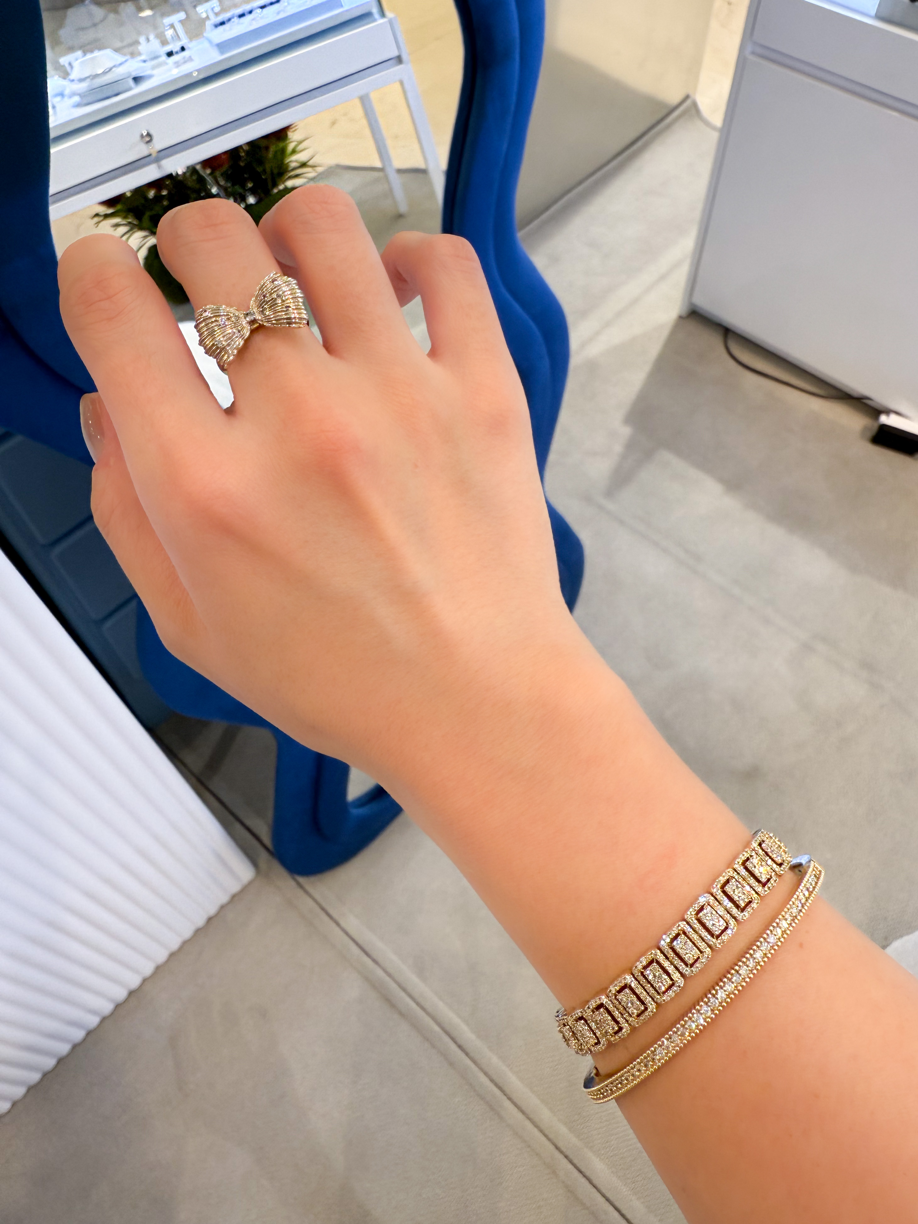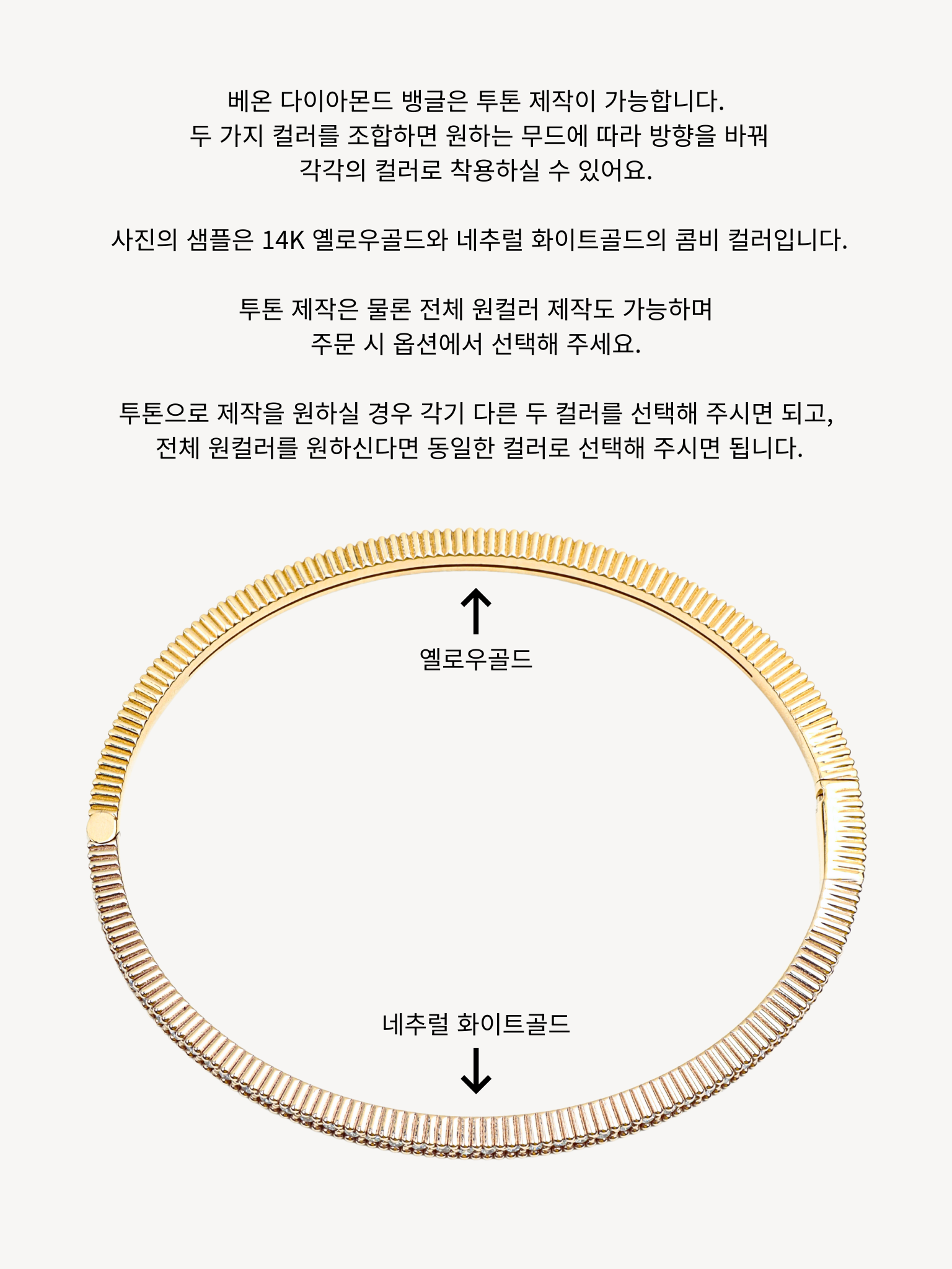▫️ 사이즈 팁 : 베온 다이아몬드 뱅글은 손목둘레에서 1.5~2cm 크게 착용 권장드립니다. 모델은 손목둘레 14cm에 16cm 착용했습니다.