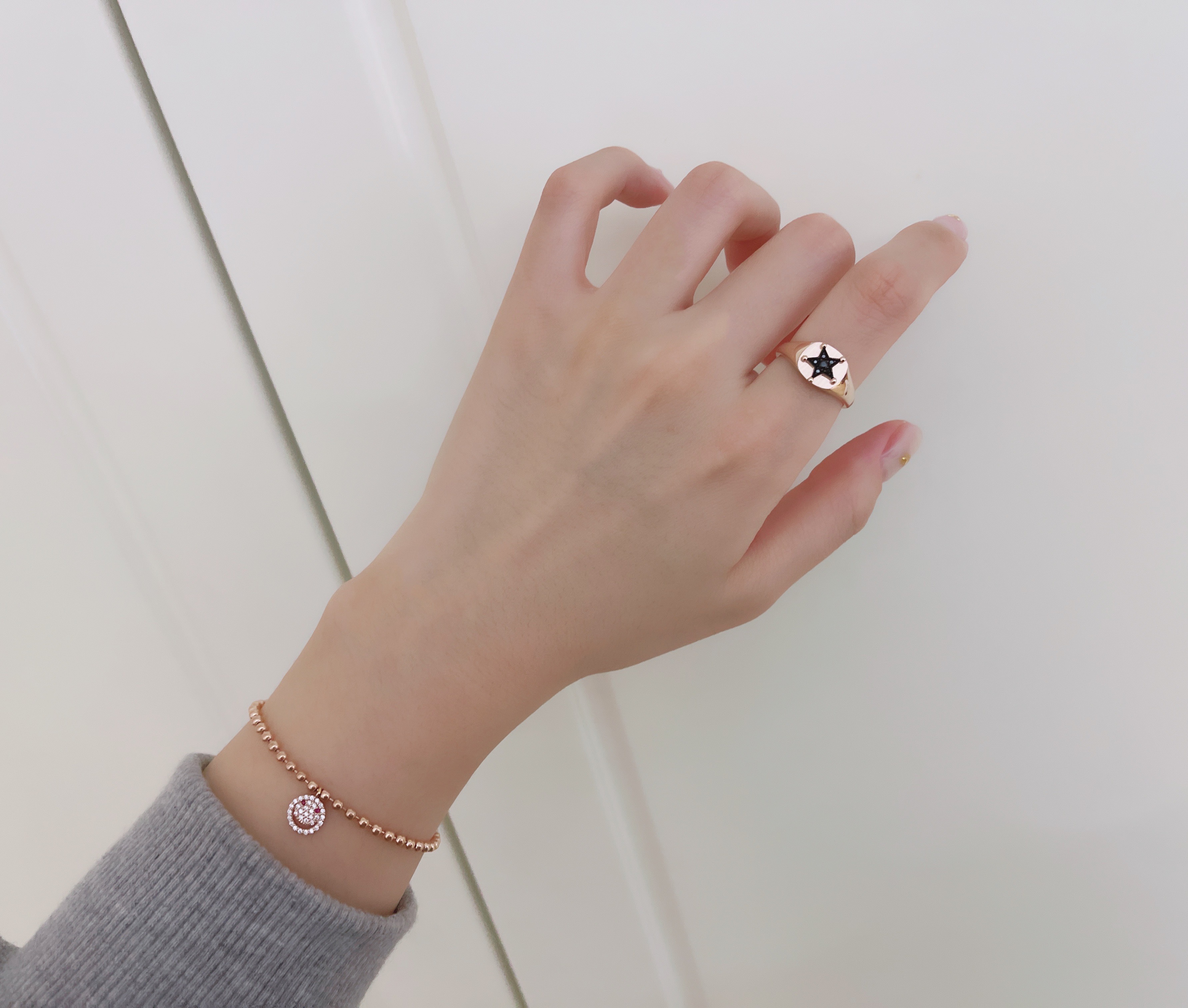 ▫️ 사이즈 팁 : 손목둘레에서 1~1.5cm 크게 주문하시면 됩니다. 모델은 손목둘레 14cm에 15cm 착용했습니다.