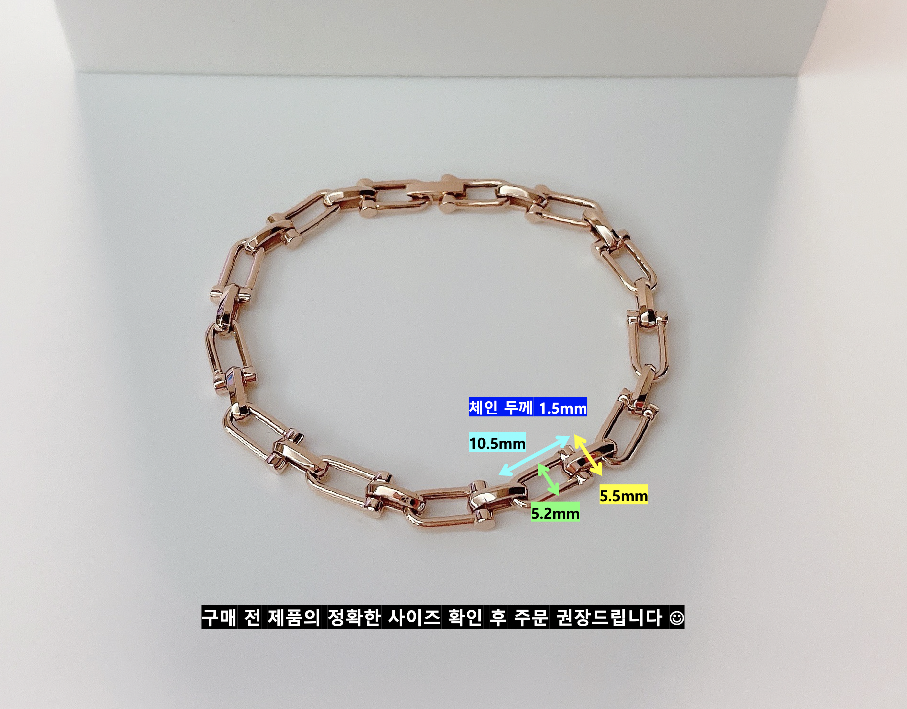 1센치 간격 주문 사이즈는 사진 그대로 링크가 반복되어 제작되고, 0.5cm 단위 제작건은 고정되는 링크 사이즈로 인하여
