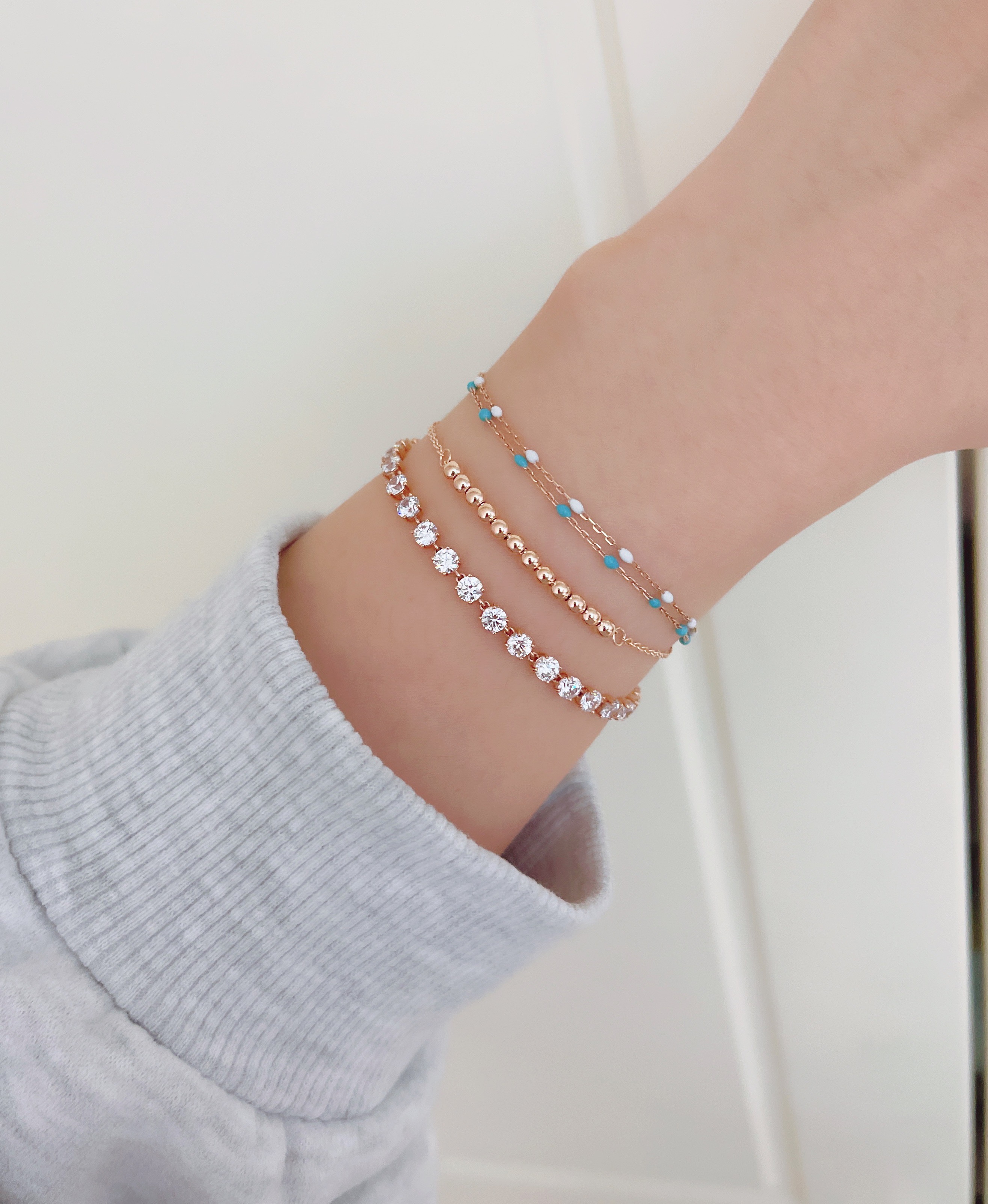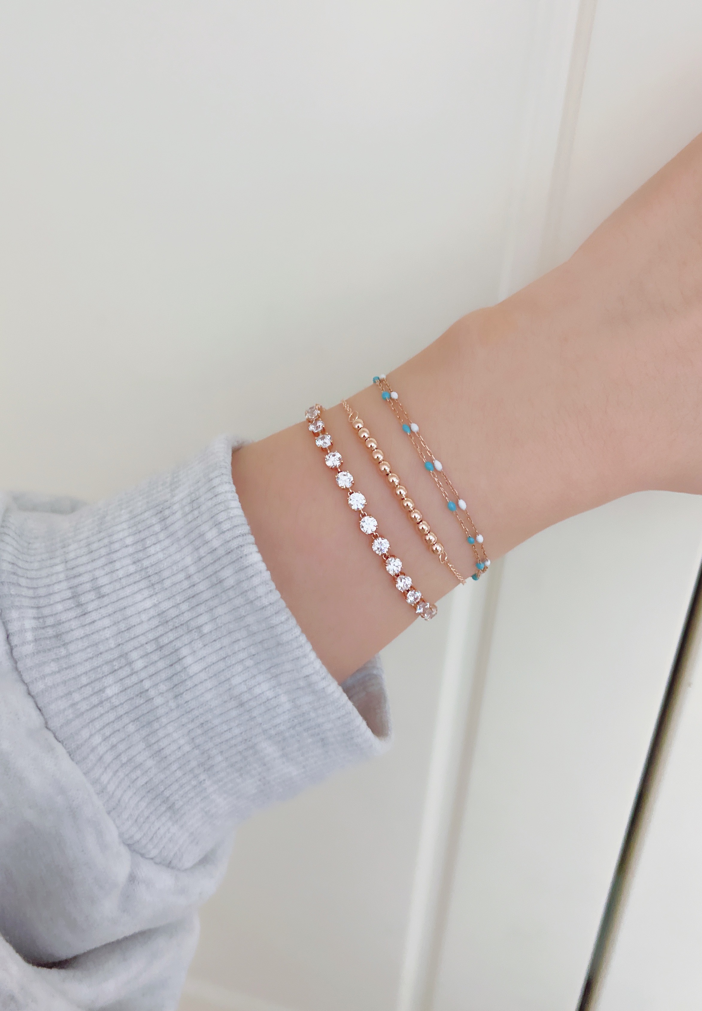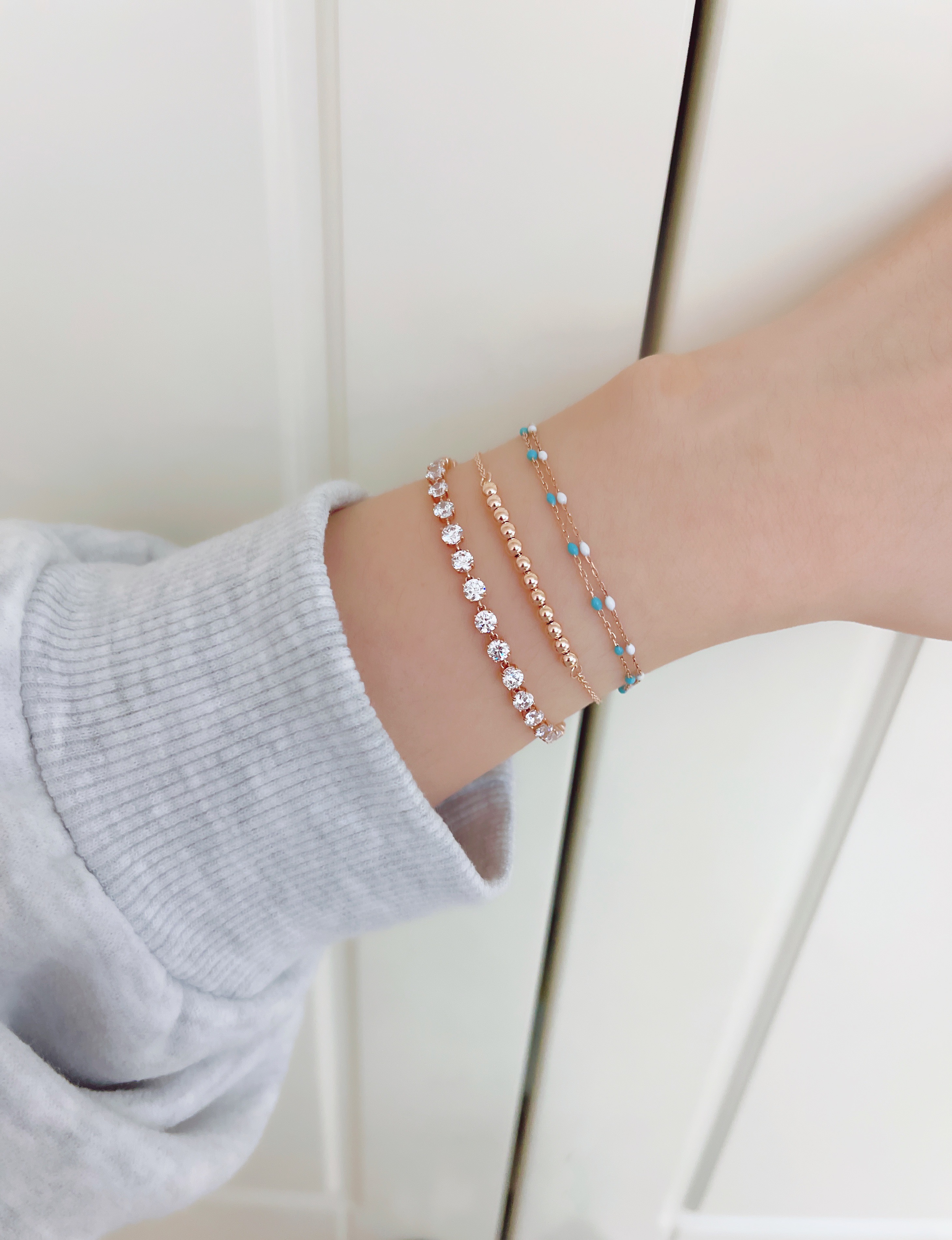 ▫️ 사이즈 팁 : 손목둘레에서 1~1.5cm 크게 착용 추천드립니다. 모델은 손목둘레 14cm에 15.5cm 착용했습니다.
