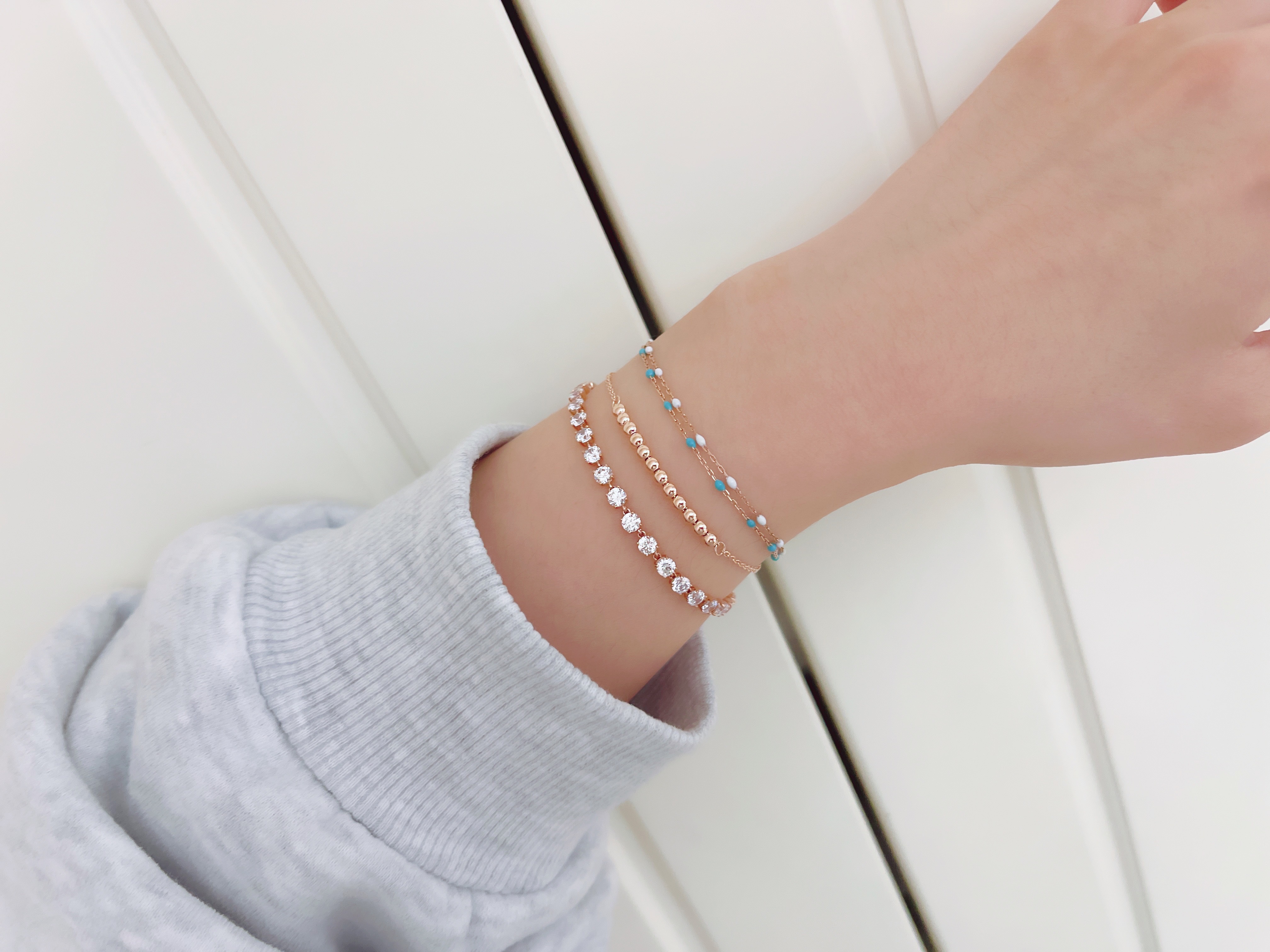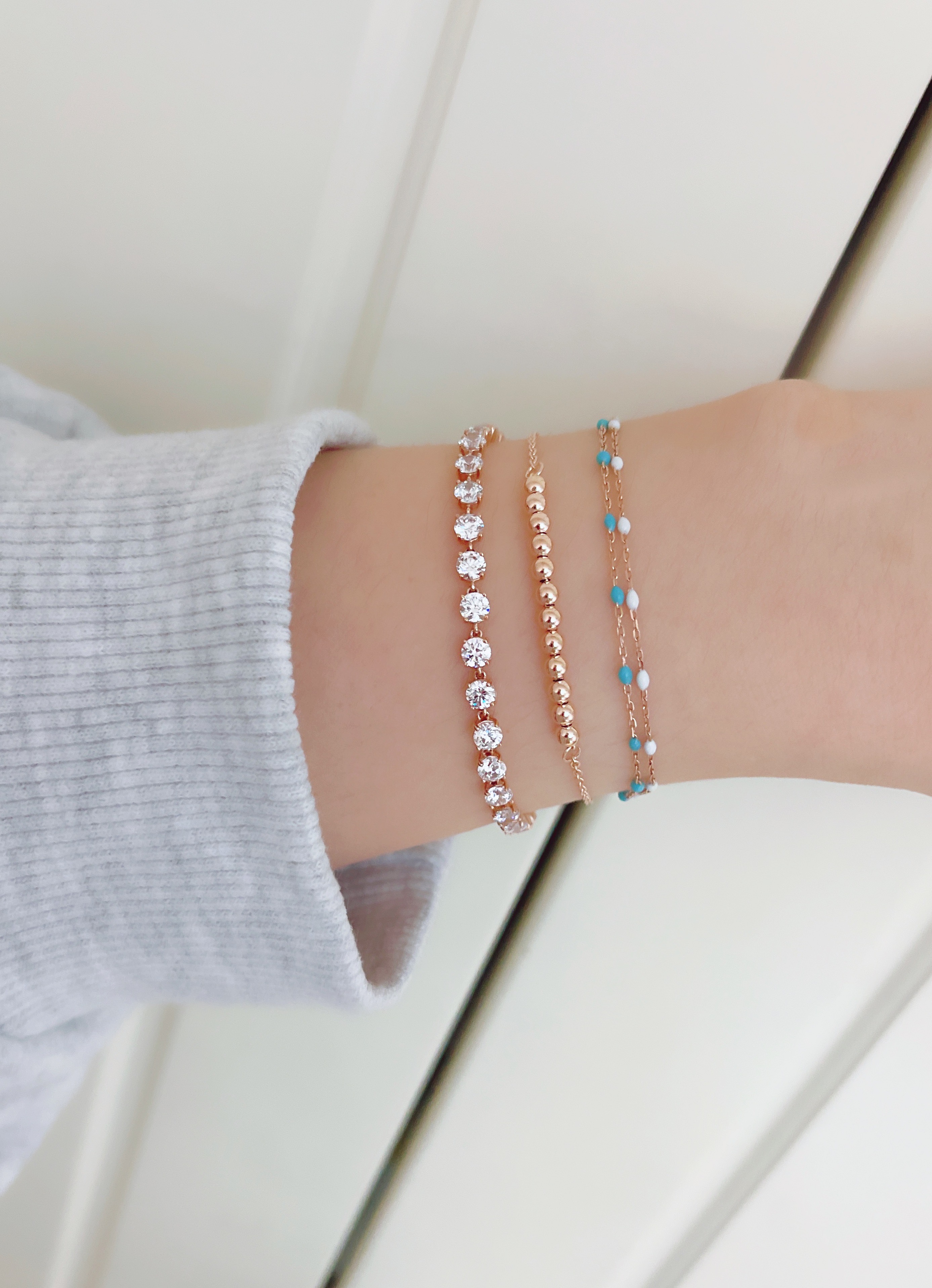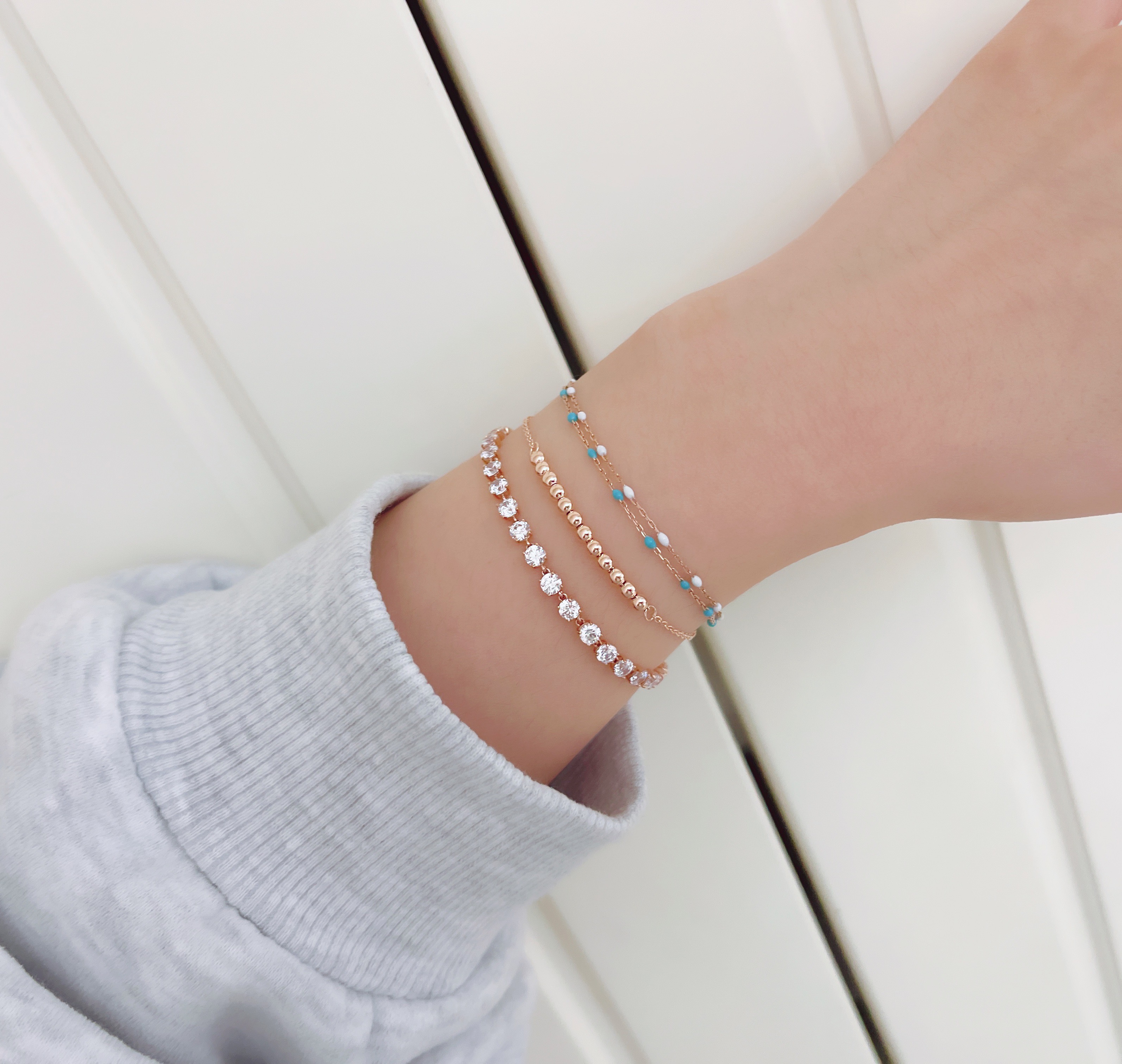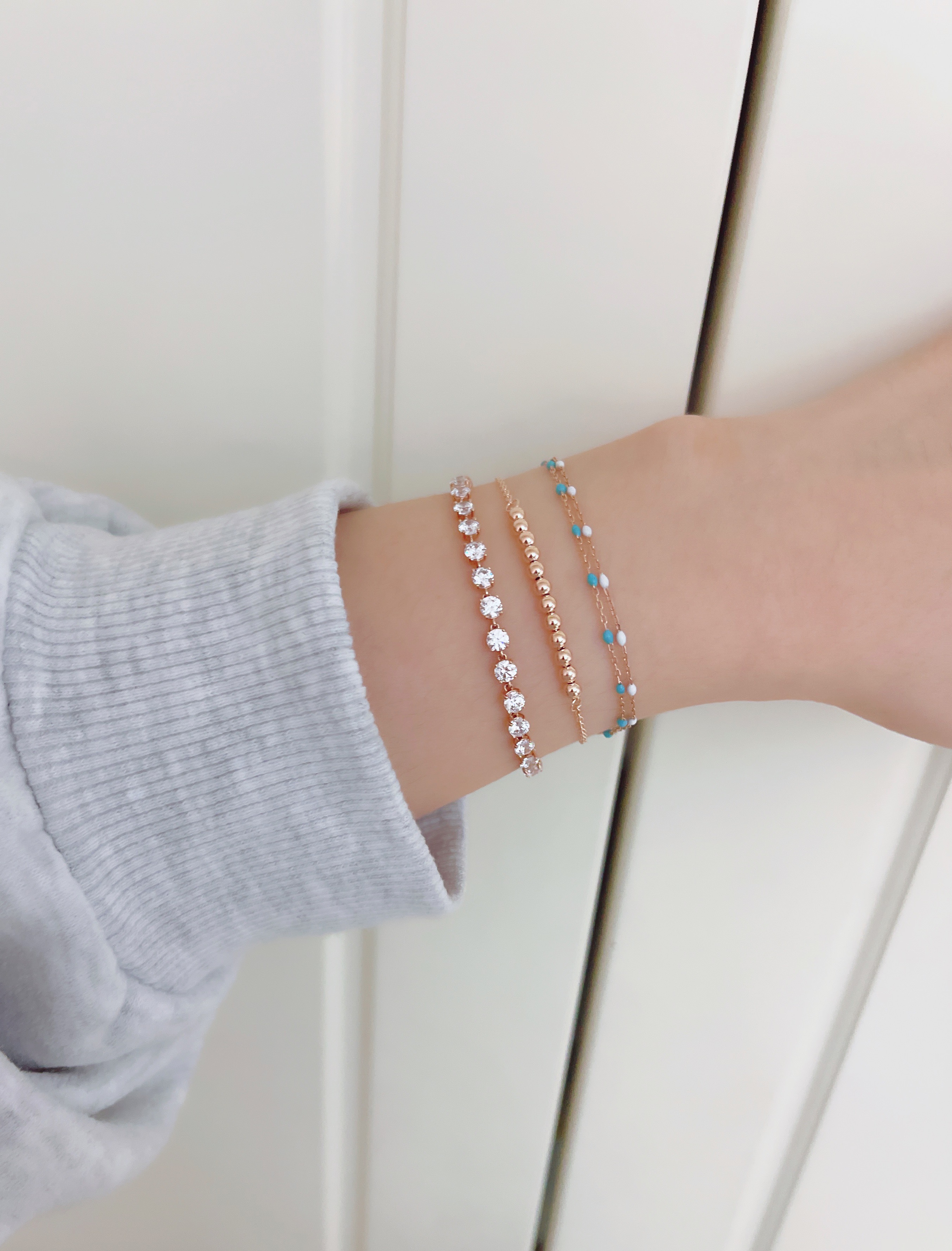 ▫️ 사이즈 팁 : 손목둘레에서 1~1.5cm 크게 착용 추천드립니다. 모델은 손목둘레 14cm에 15.5cm 착용했습니다.