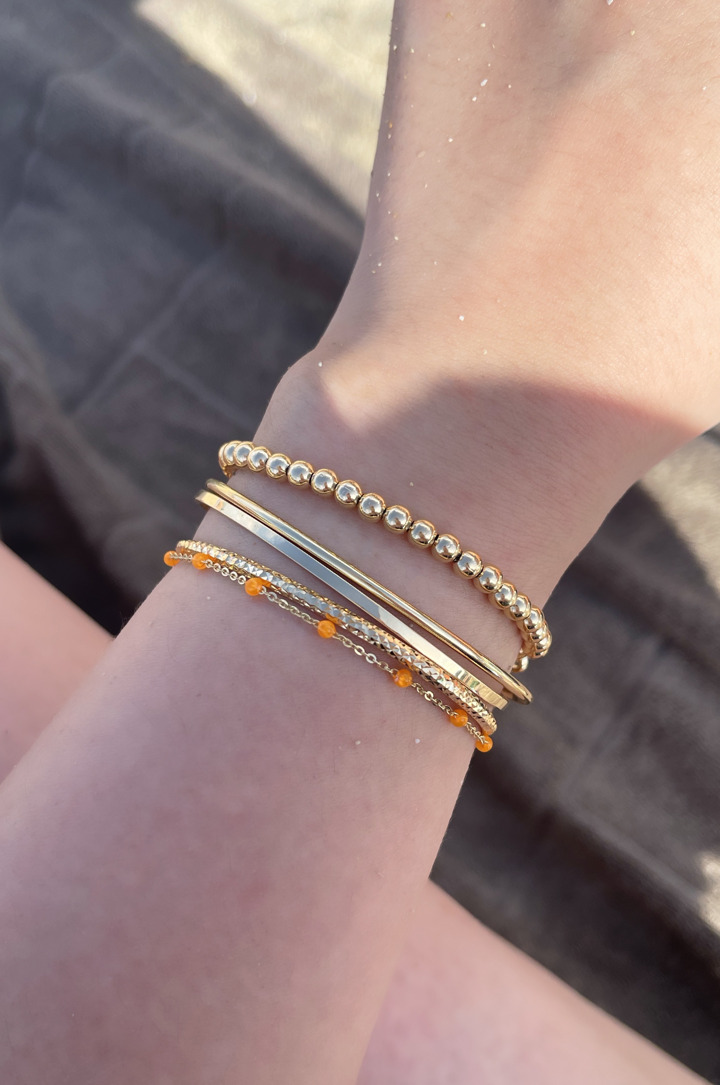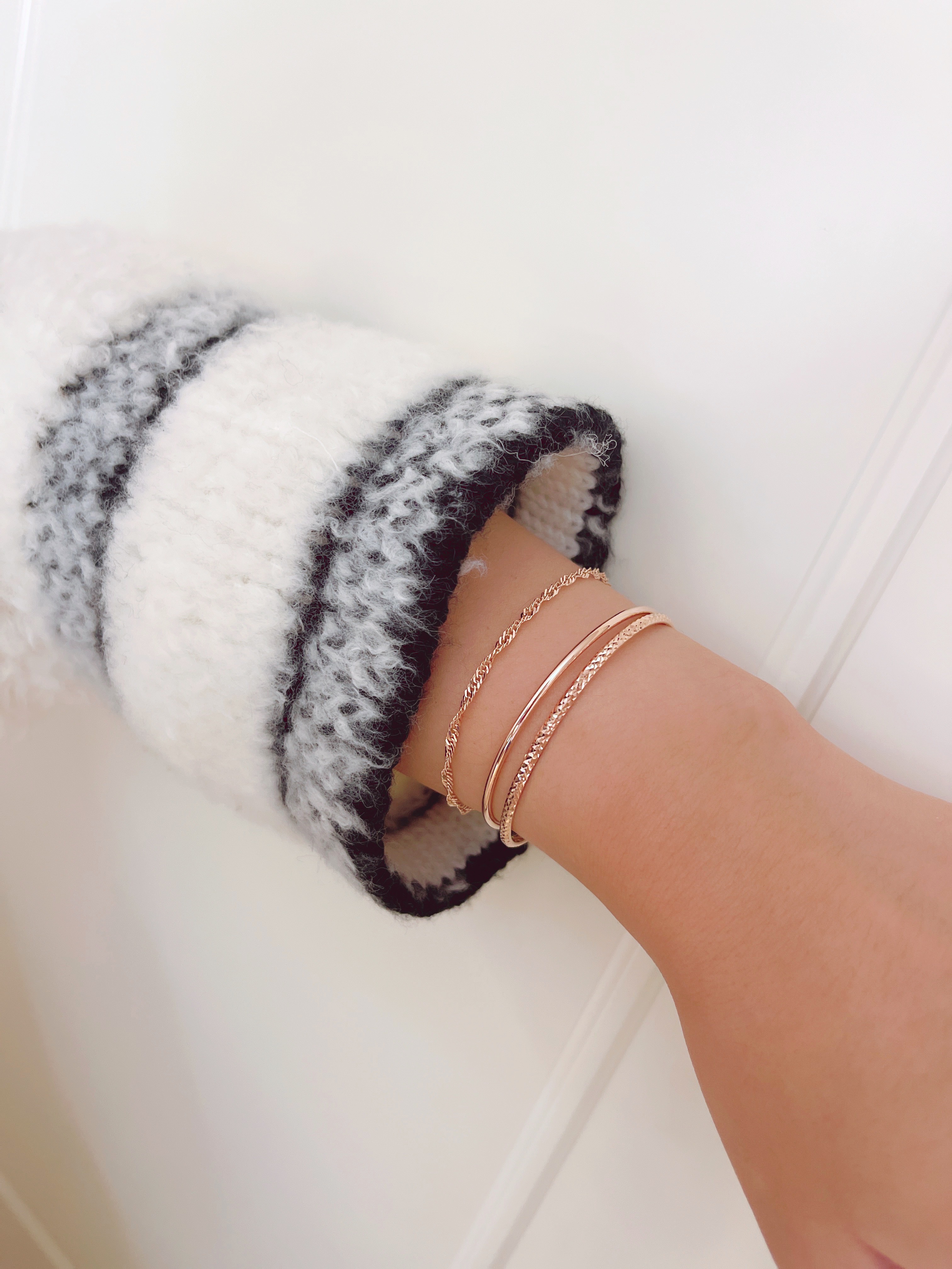 ▫️ 사이즈 팁 : 손목둘레에서 1~2cm 크게 착용 권장드려요. 모델은 손목둘레 14.5cm에 15.5cm, 16cm 착용했습니다.