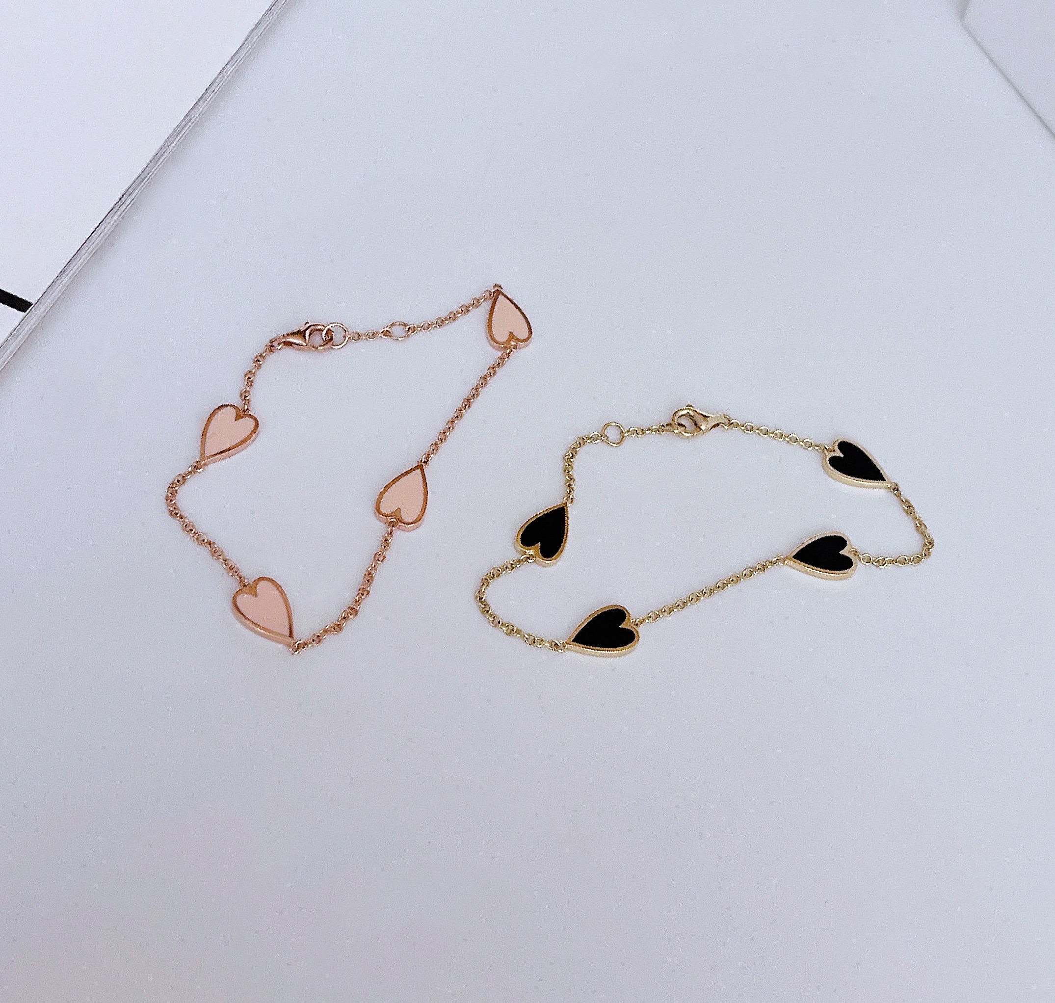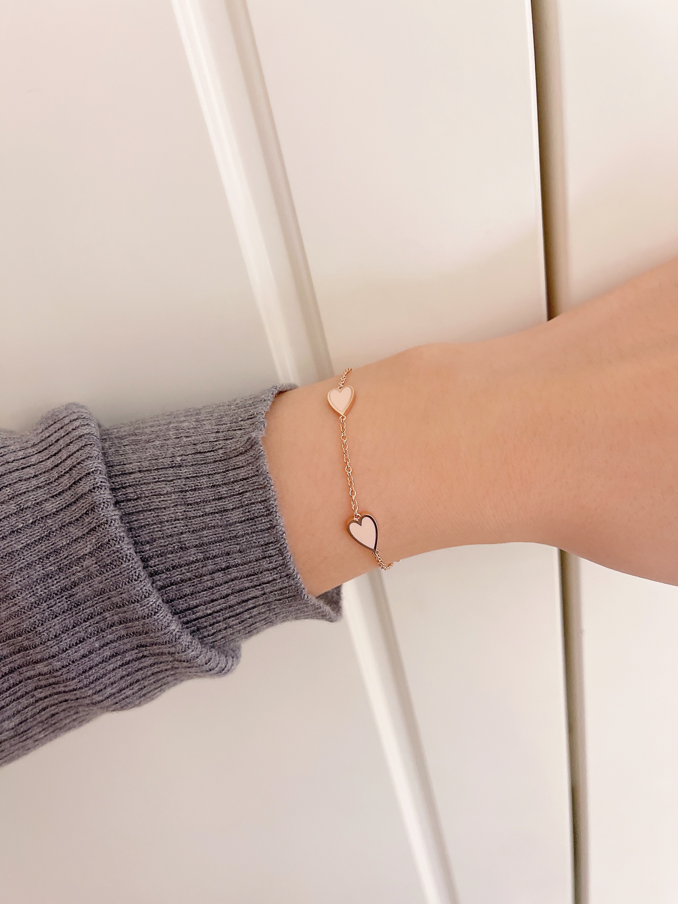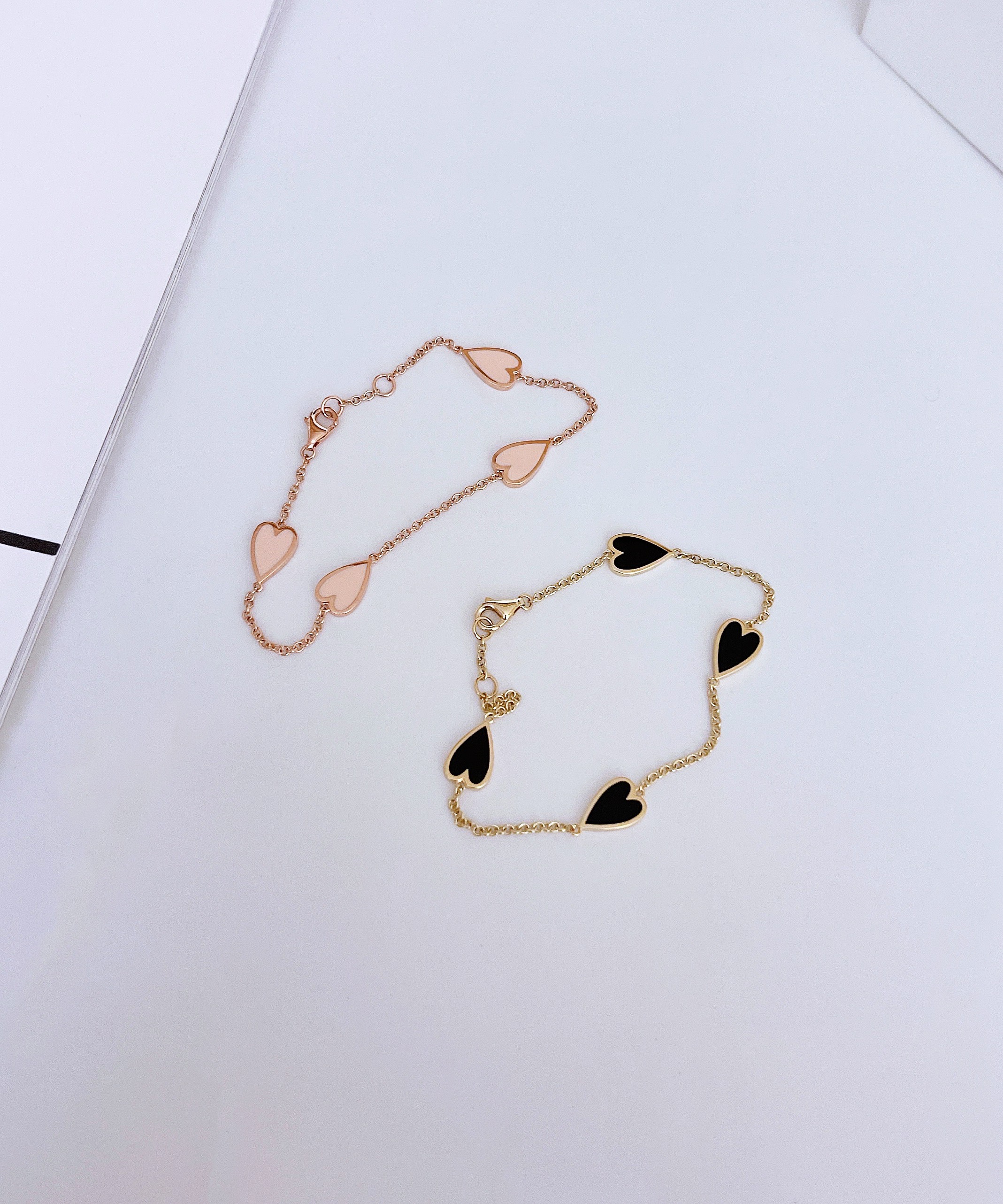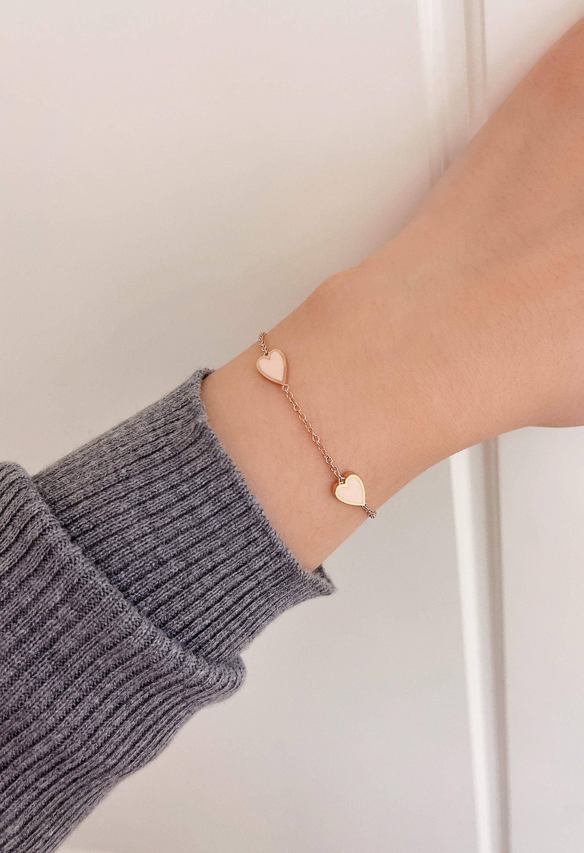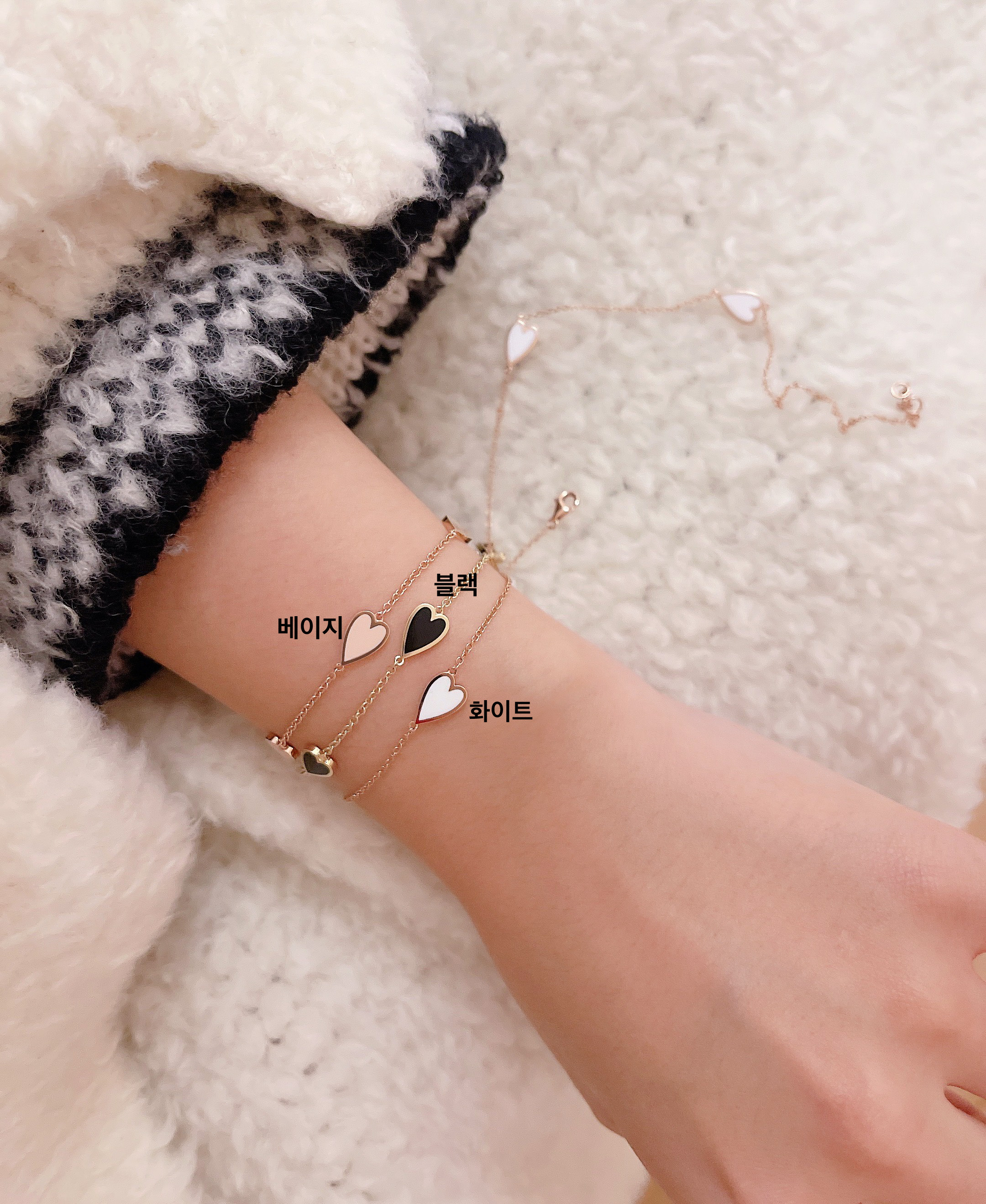 멜팅 하트 팔찌의 하트 펜던트의 앞면은 컬러를 표현하는 에폭시로 제작되고 뒷면은 금으로 매끈하게 마무리되기 때문에