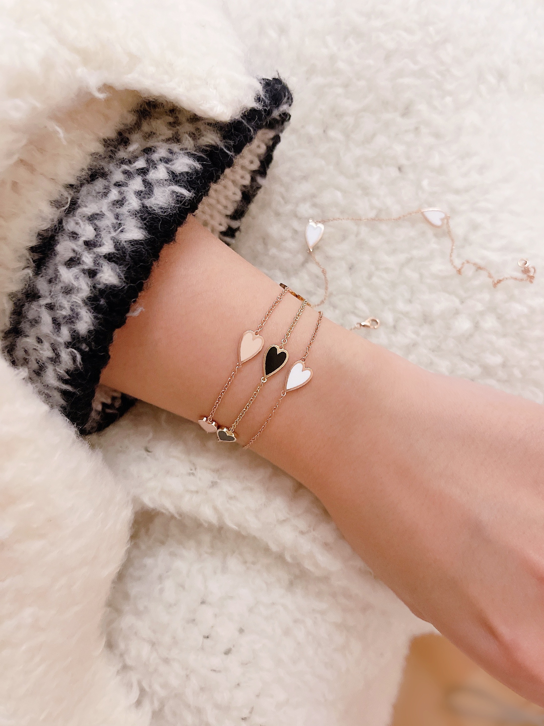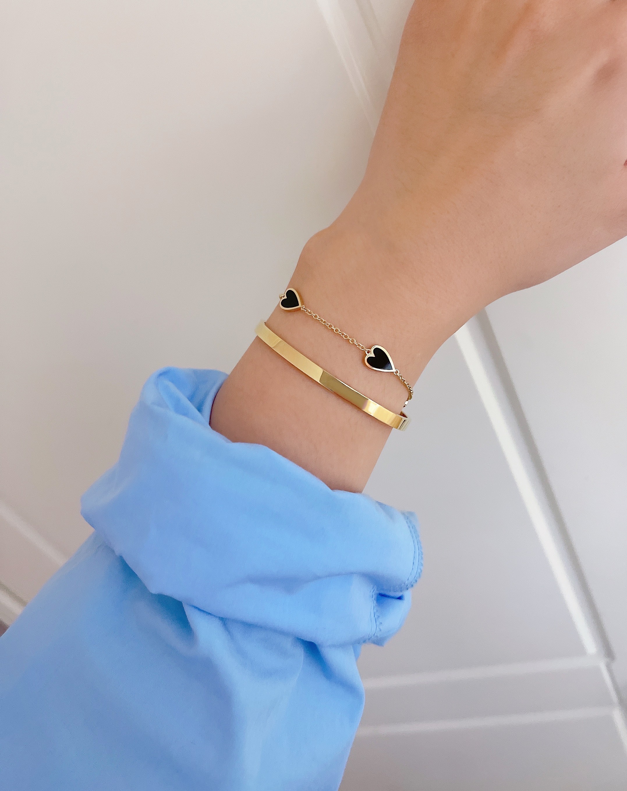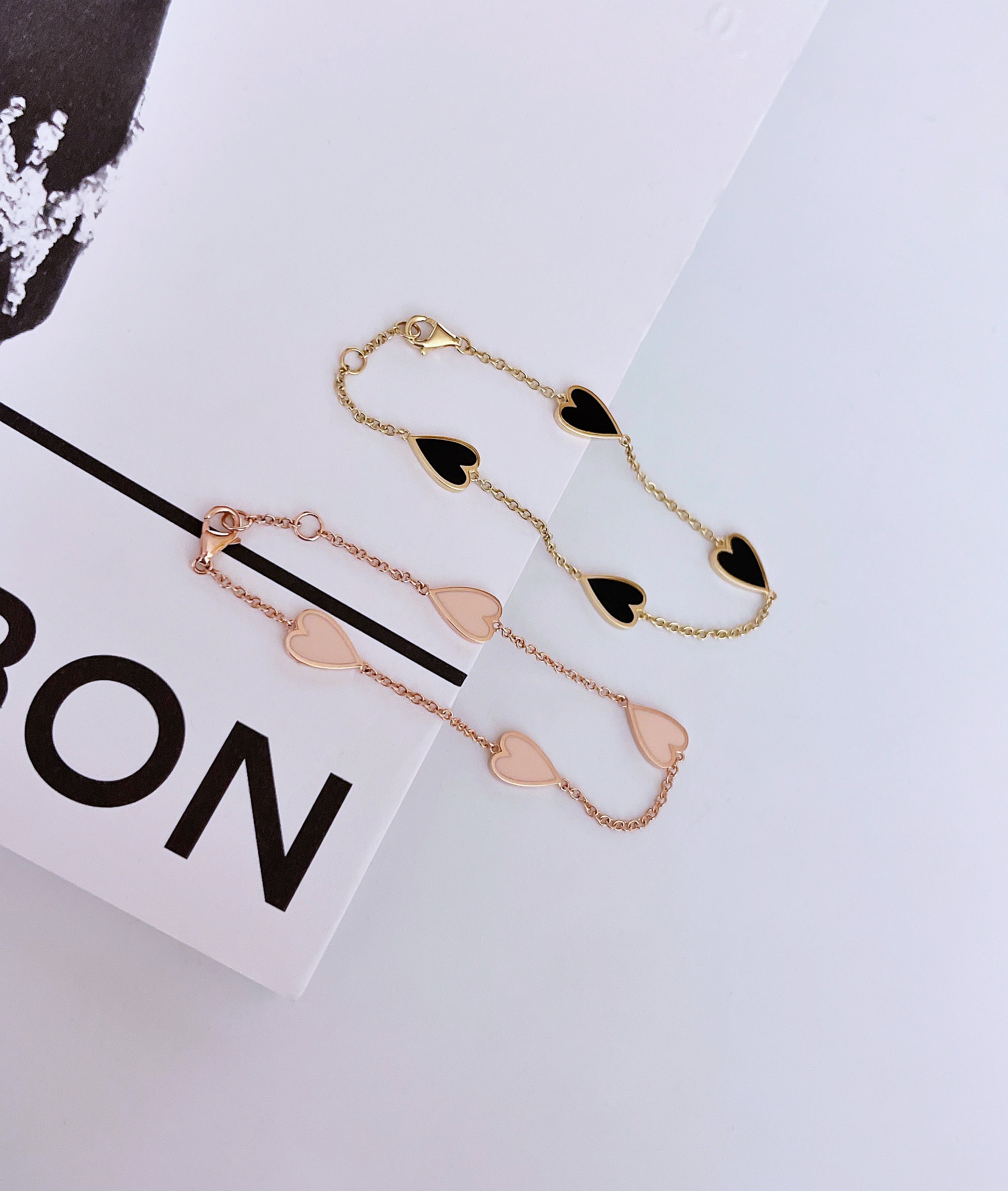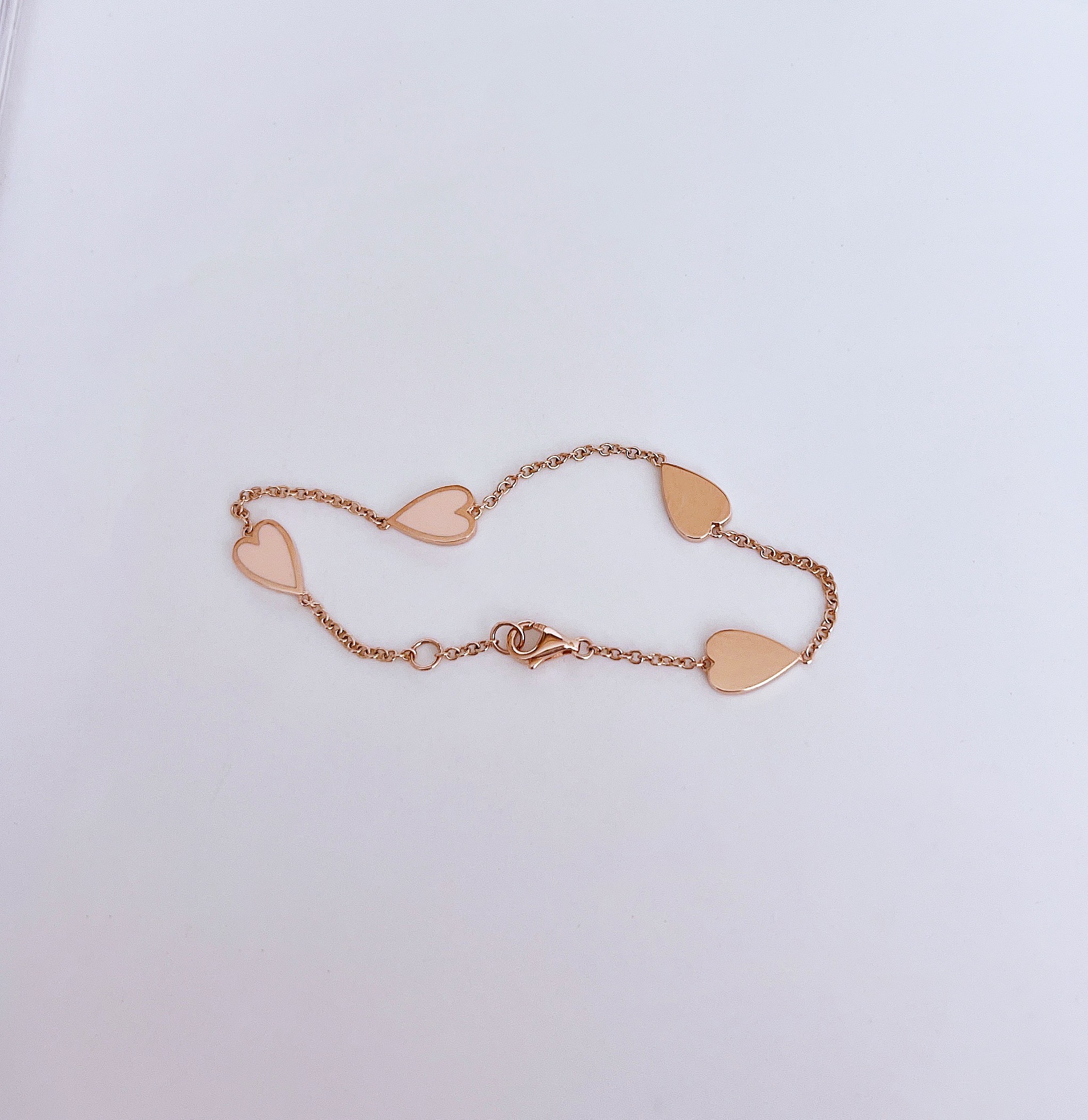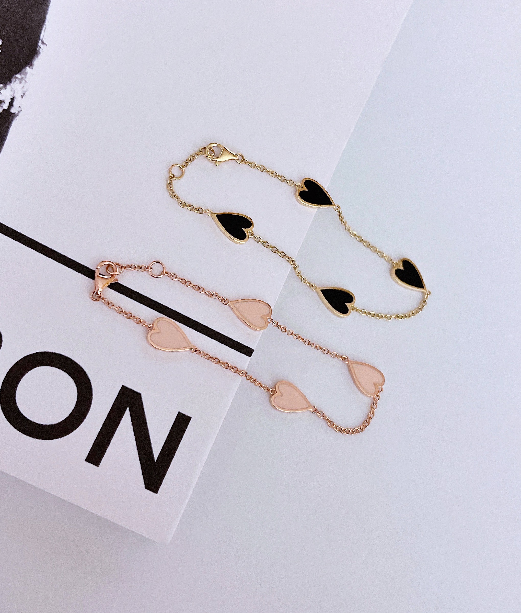 멜팅 하트 팔찌의 하트 펜던트의 앞면은 컬러를 표현하는 에폭시로 제작되고 뒷면은 금으로 매끈하게 마무리되기 때문에