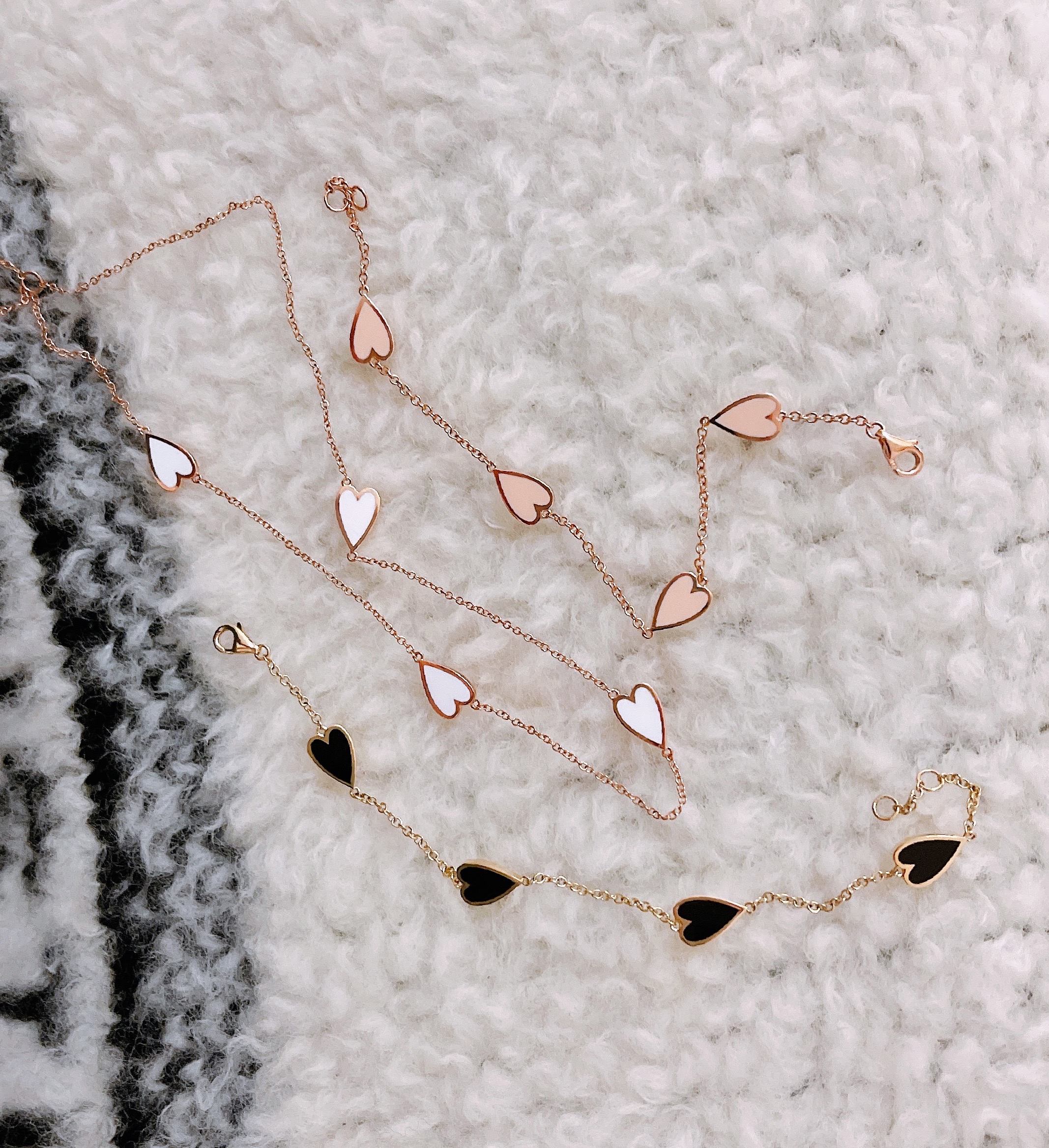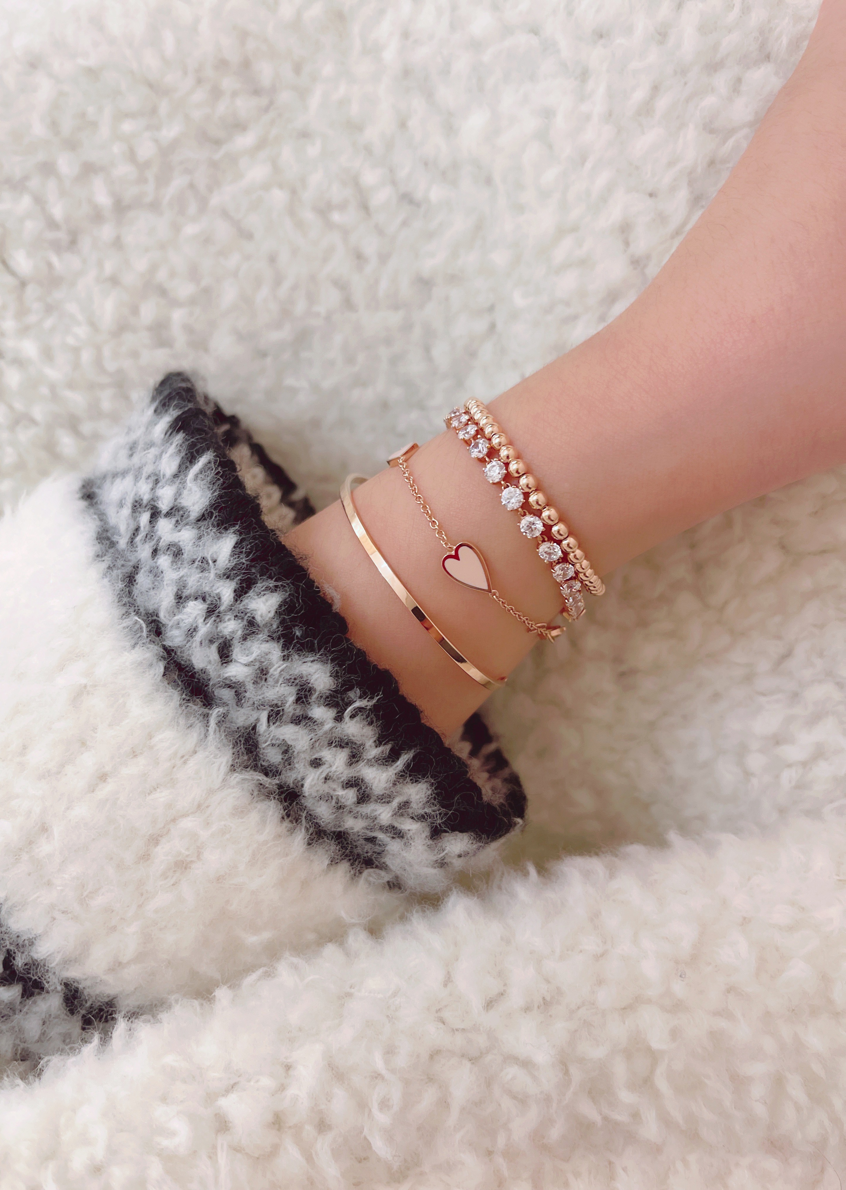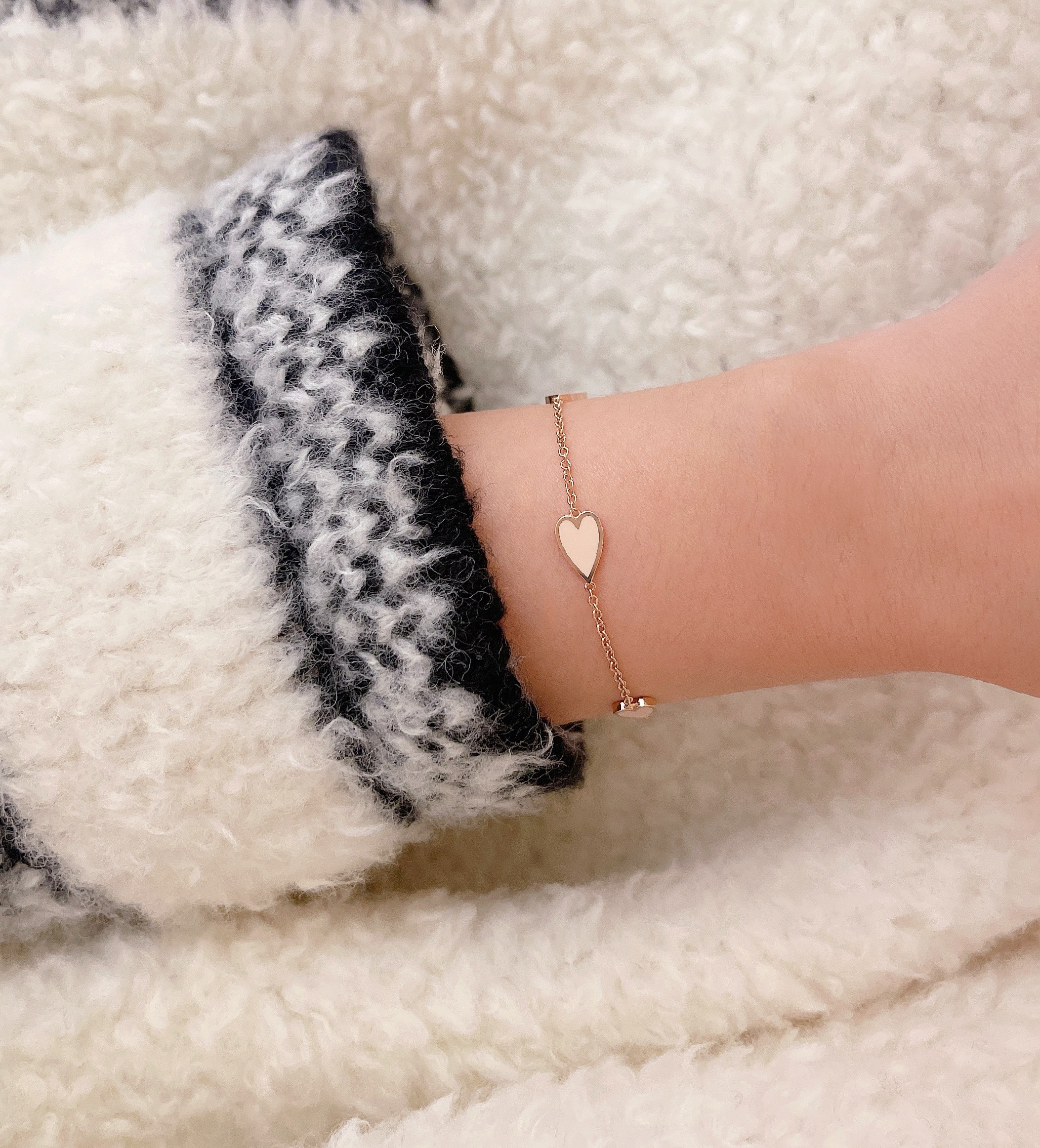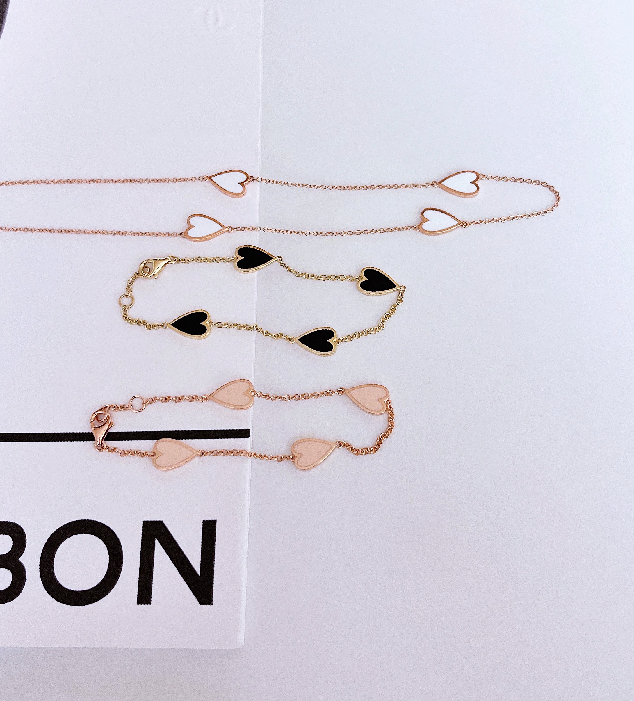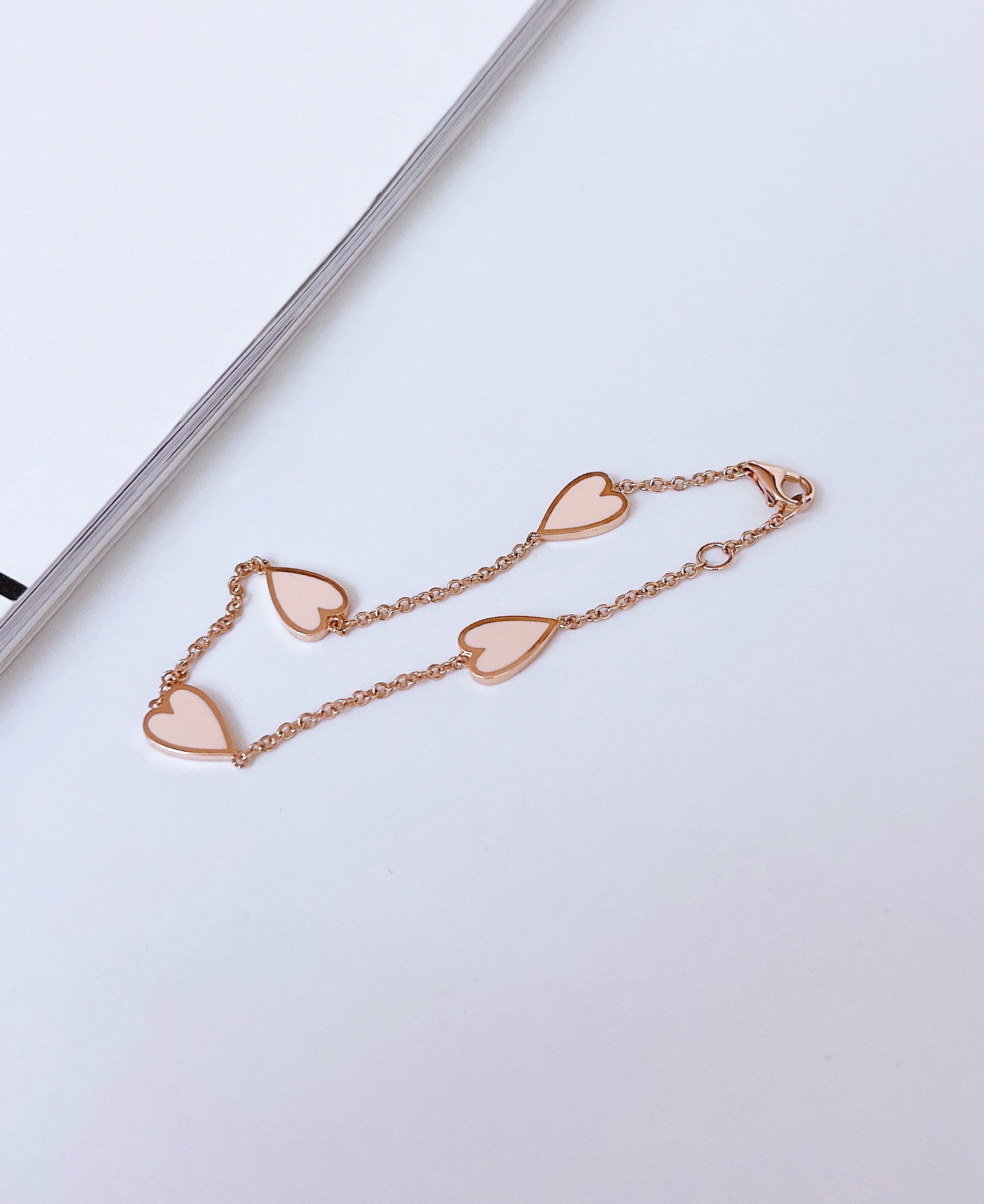 멜팅 하트 팔찌의 하트 펜던트의 앞면은 컬러를 표현하는 에폭시로 제작되고 뒷면은 금으로 매끈하게 마무리되기 때문에