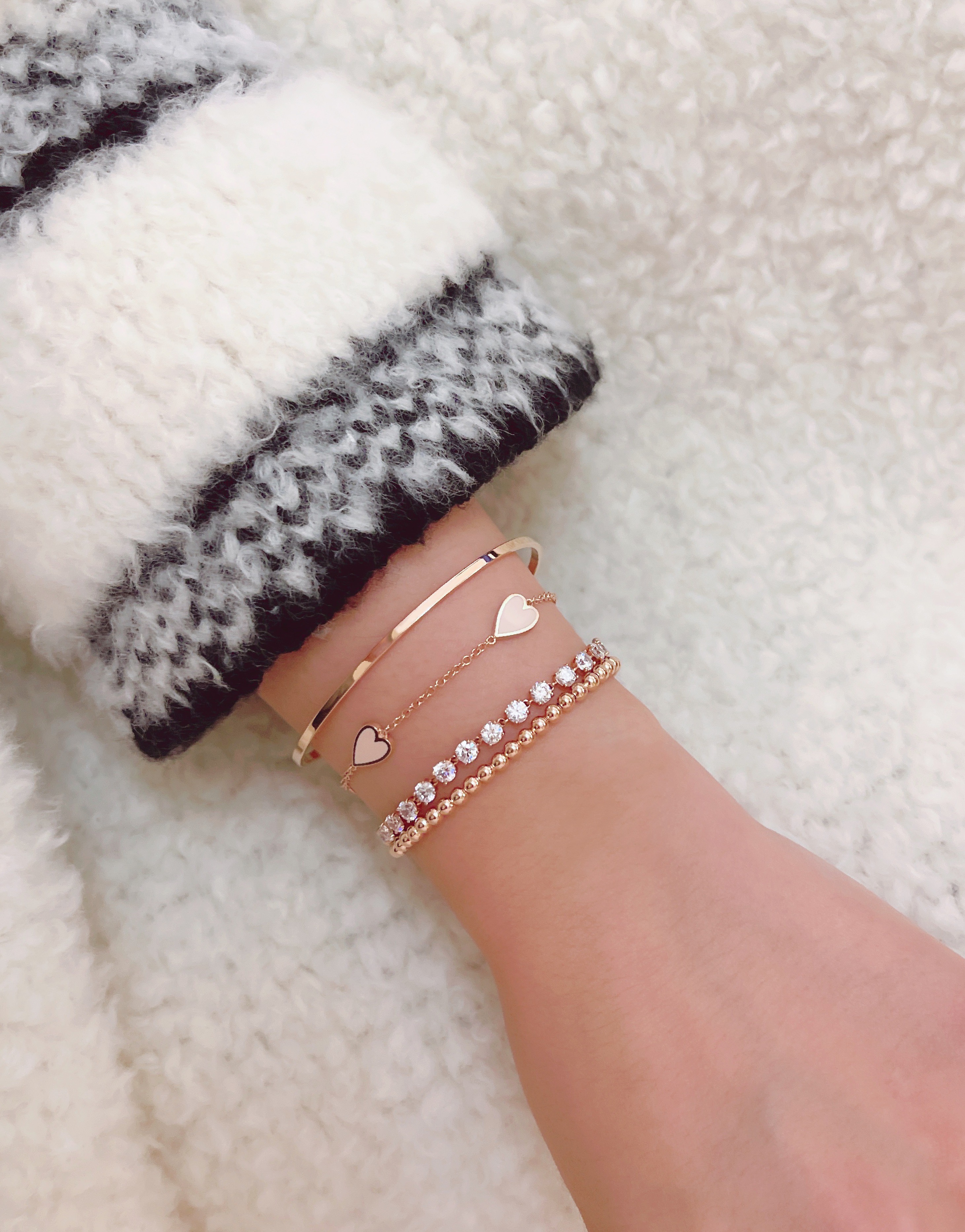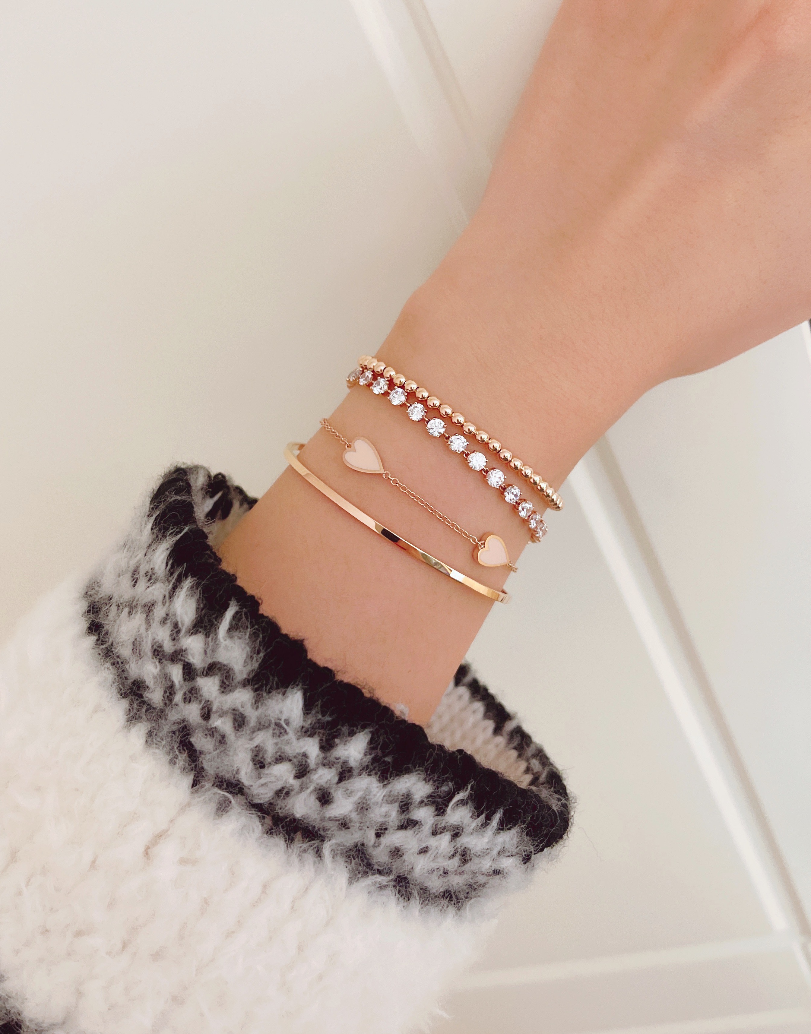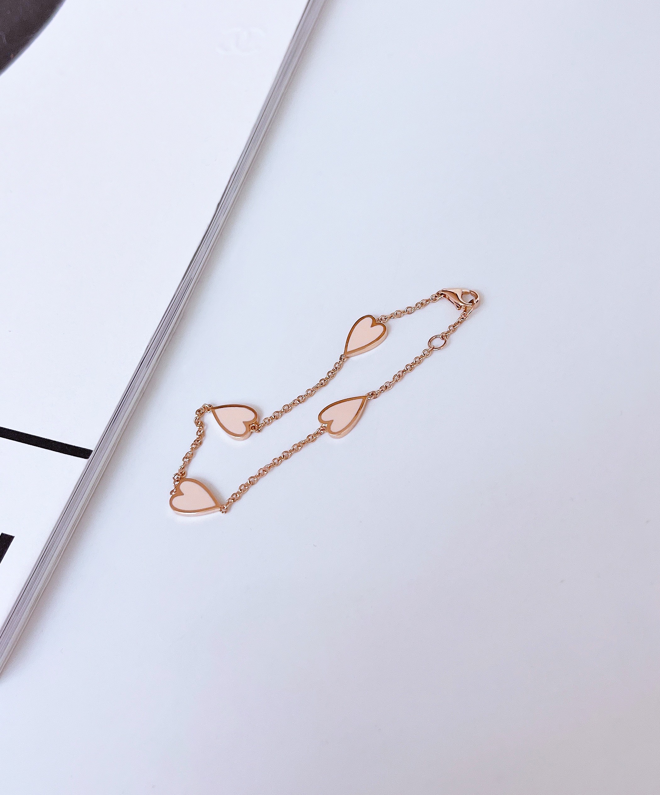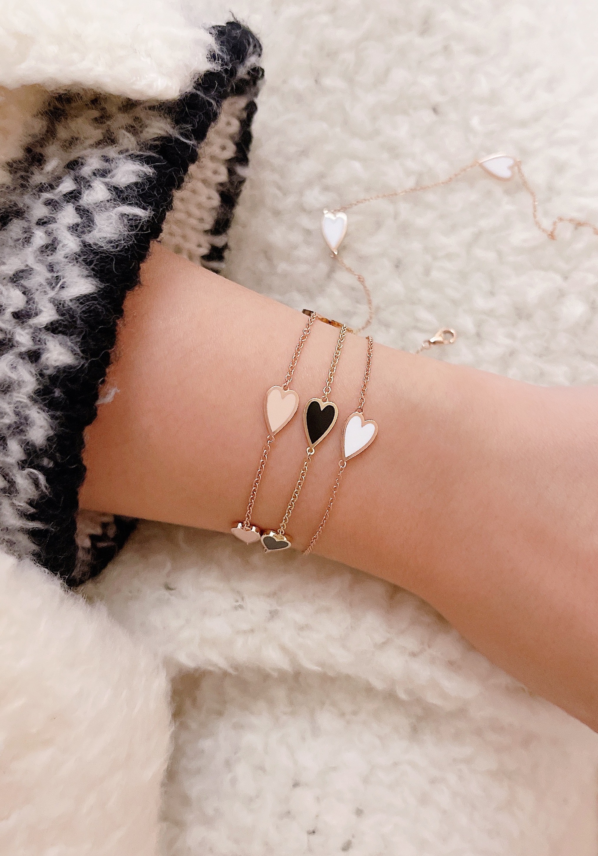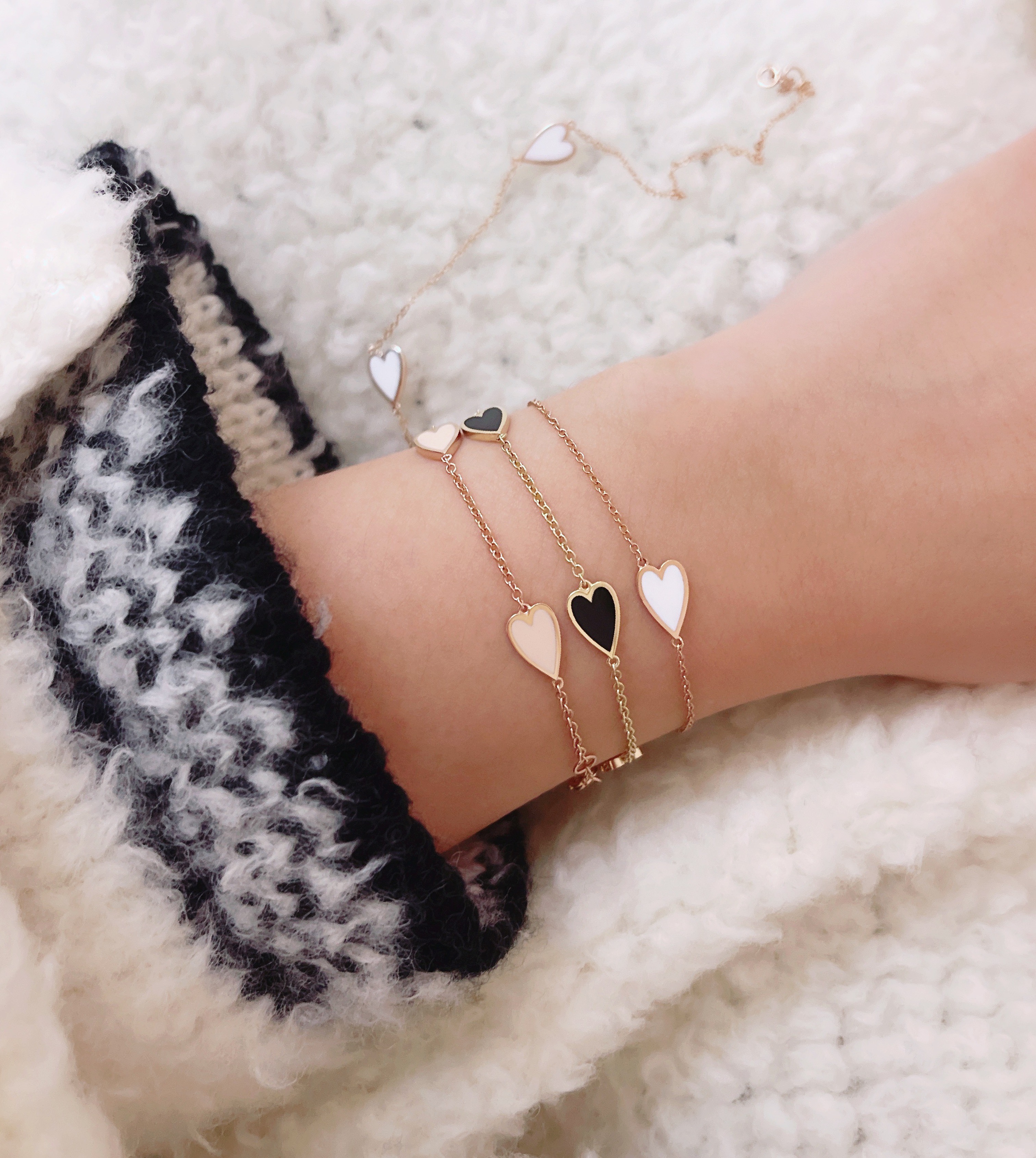 멜팅 하트 팔찌의 하트 펜던트의 앞면은 컬러를 표현하는 에폭시로 제작되고 뒷면은 금으로 매끈하게 마무리되기 때문에