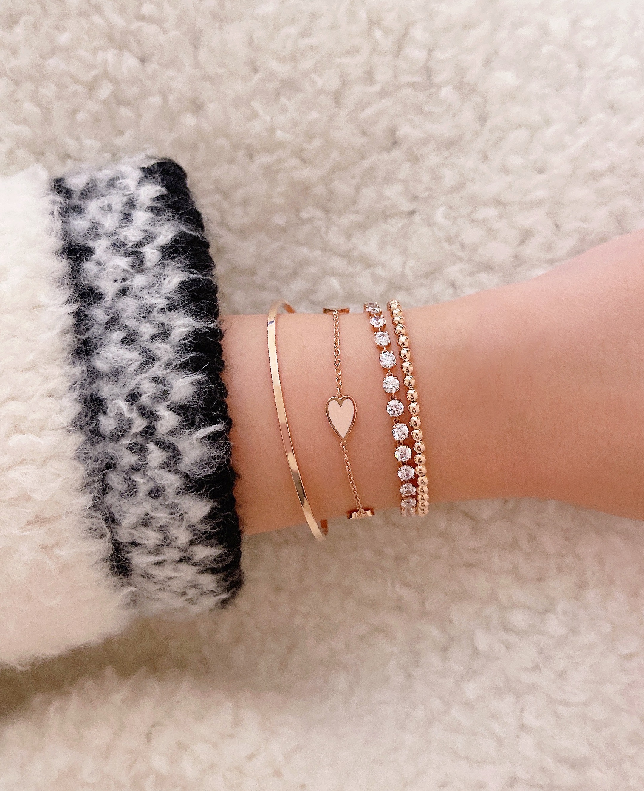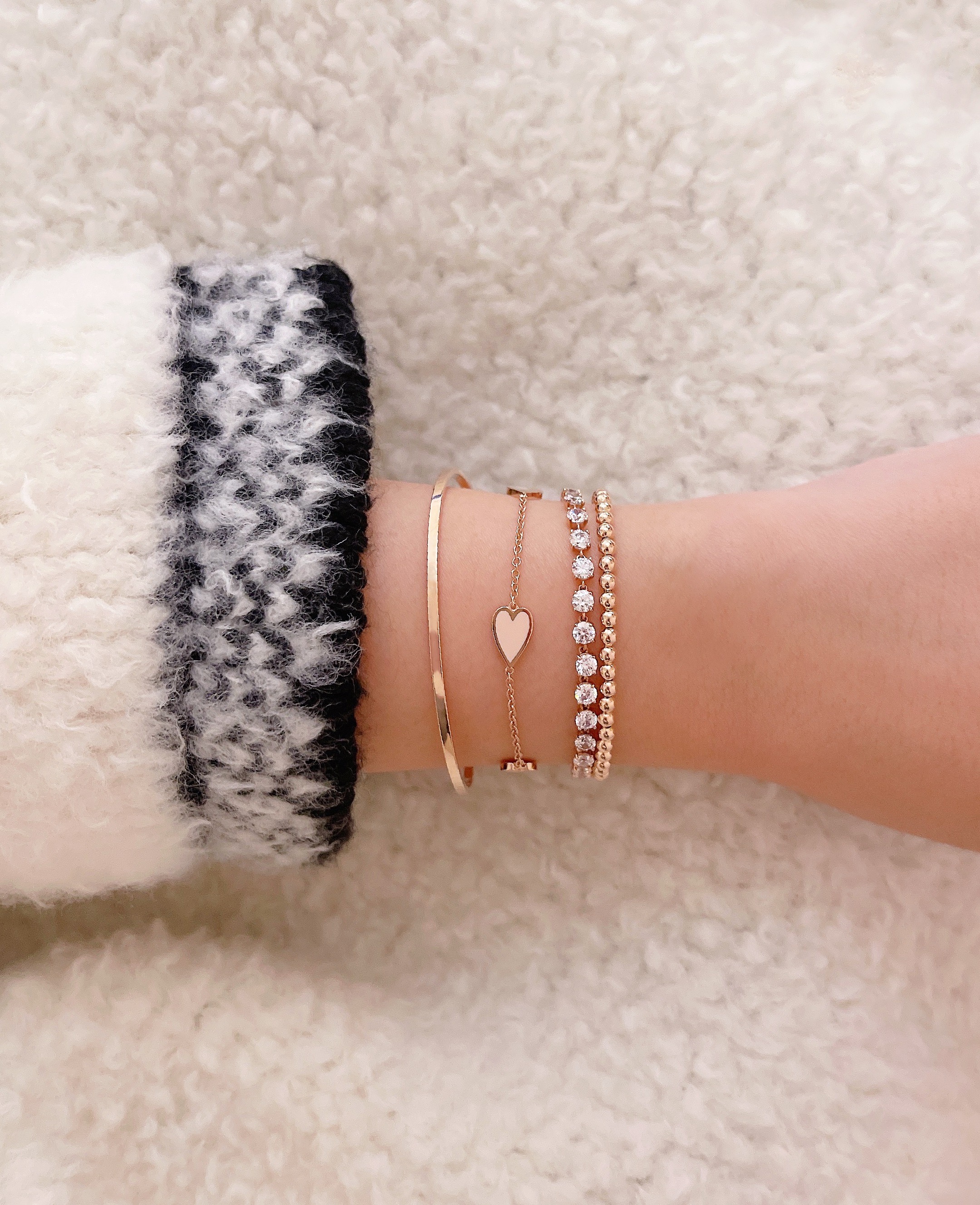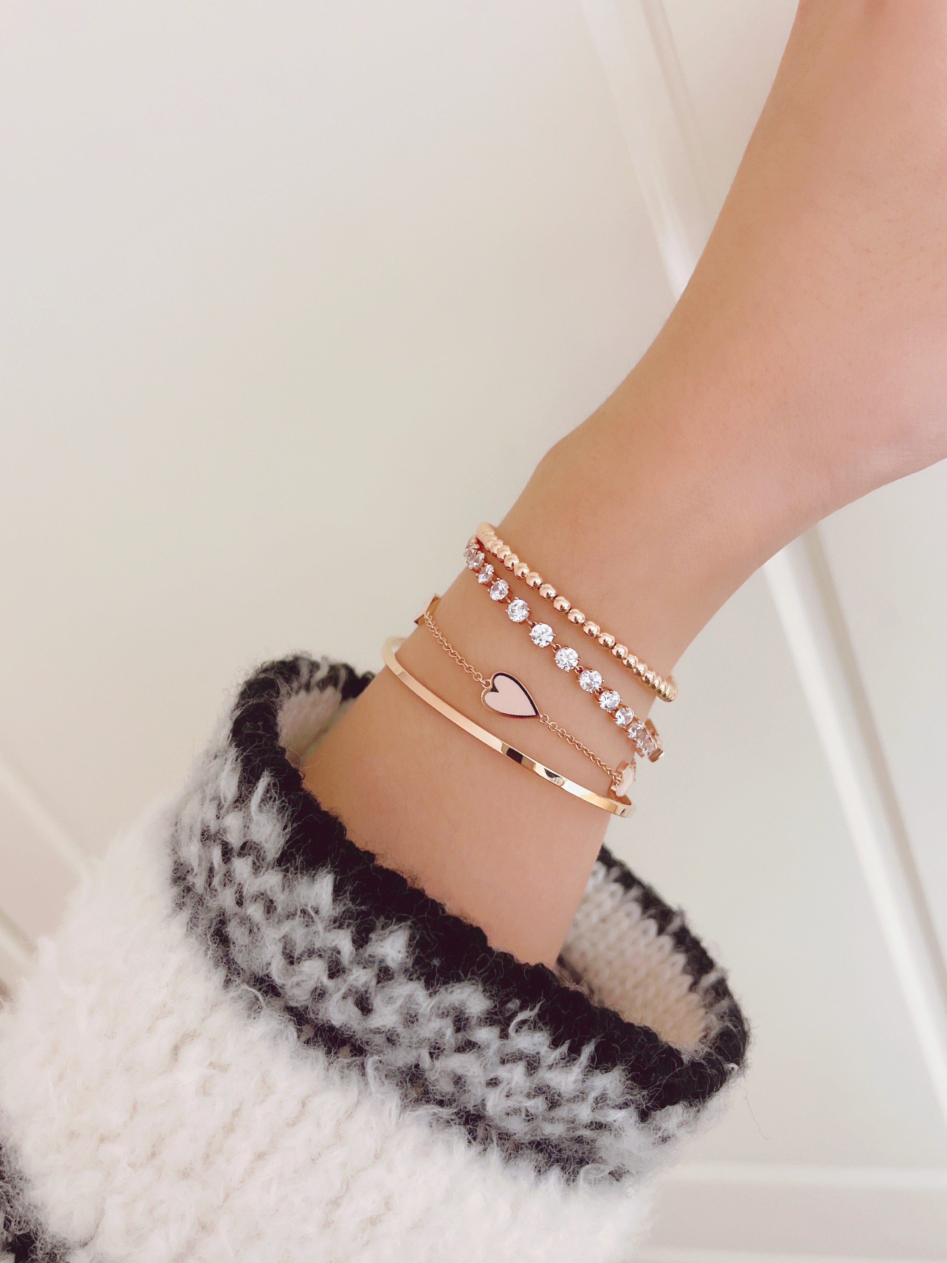 ▫️ 사이즈 팁 : 모델은 손목둘레 14cm에 15cm 착용했습니다. 취향에 따라 손목둘레에서 1~2cm 크게 착용 권장드려요.