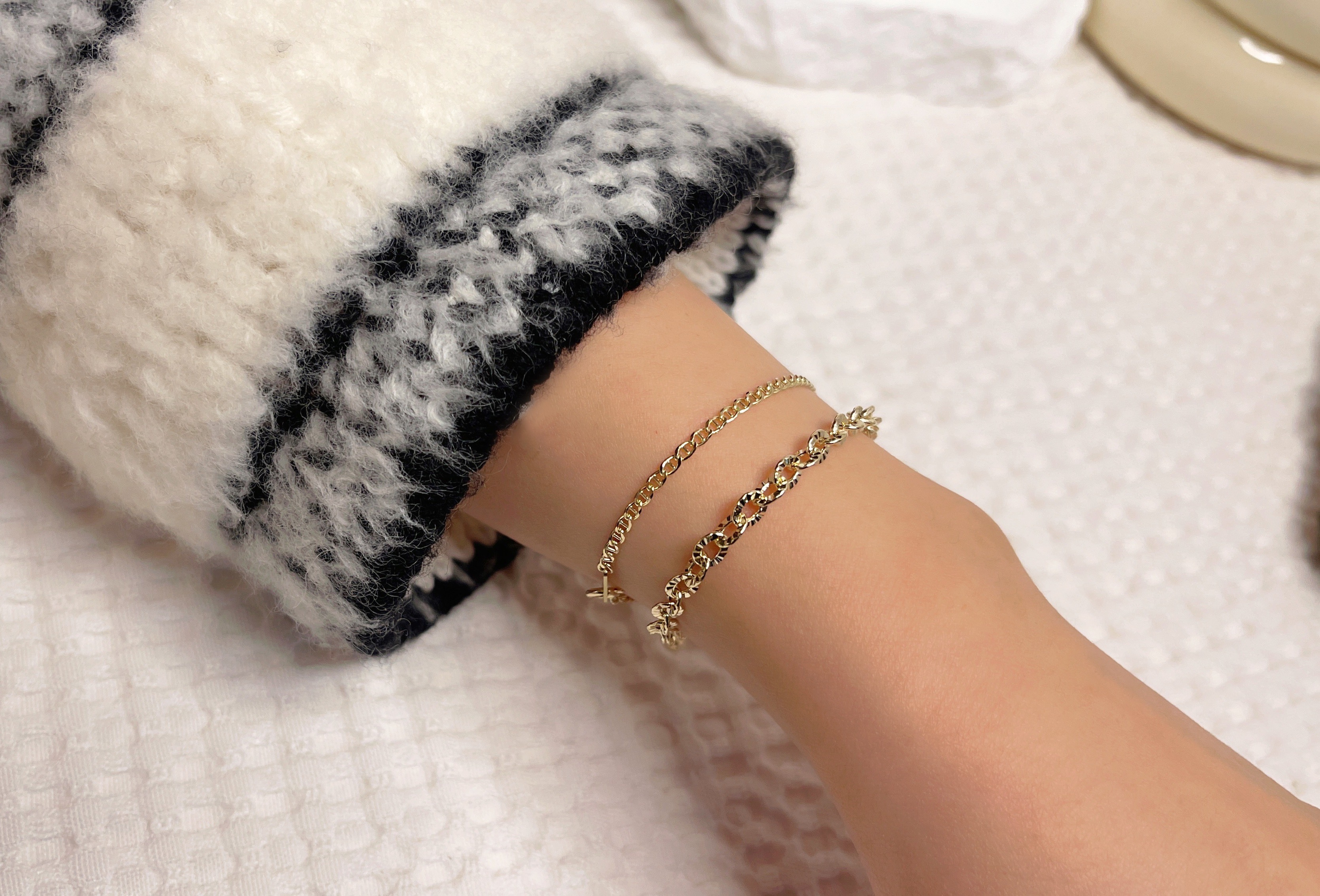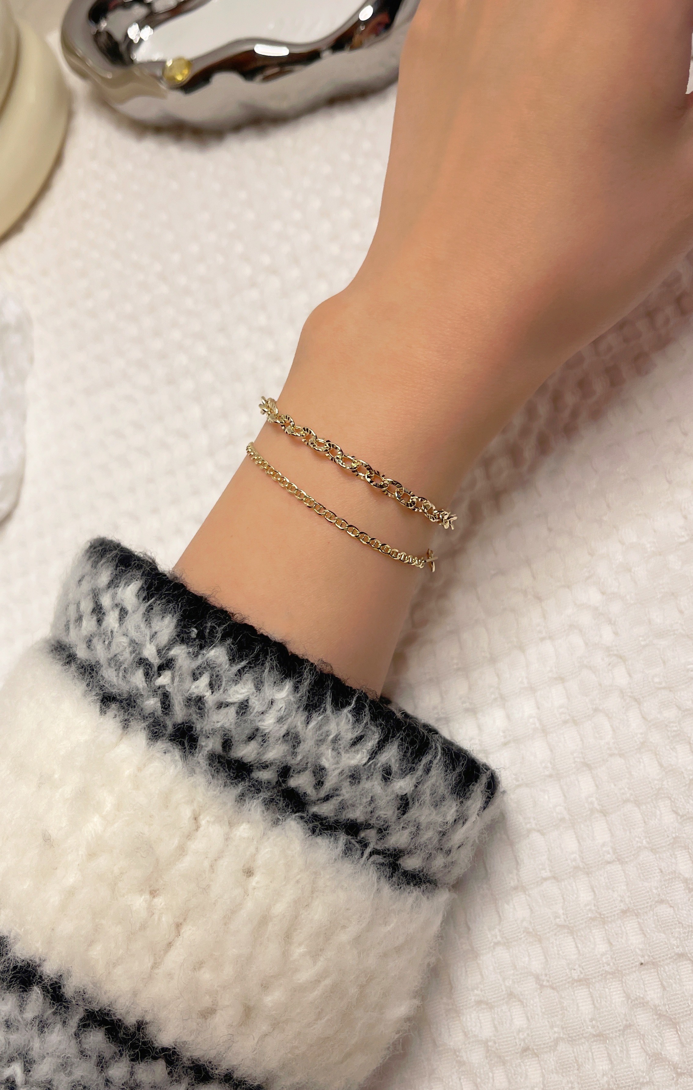▫️ 사이즈 팁 : 손목둘레에서 1~1.5cm 크게 착용 권장드립니다. 모델은 손목둘레 14cm에 15cm 착용했습니다.