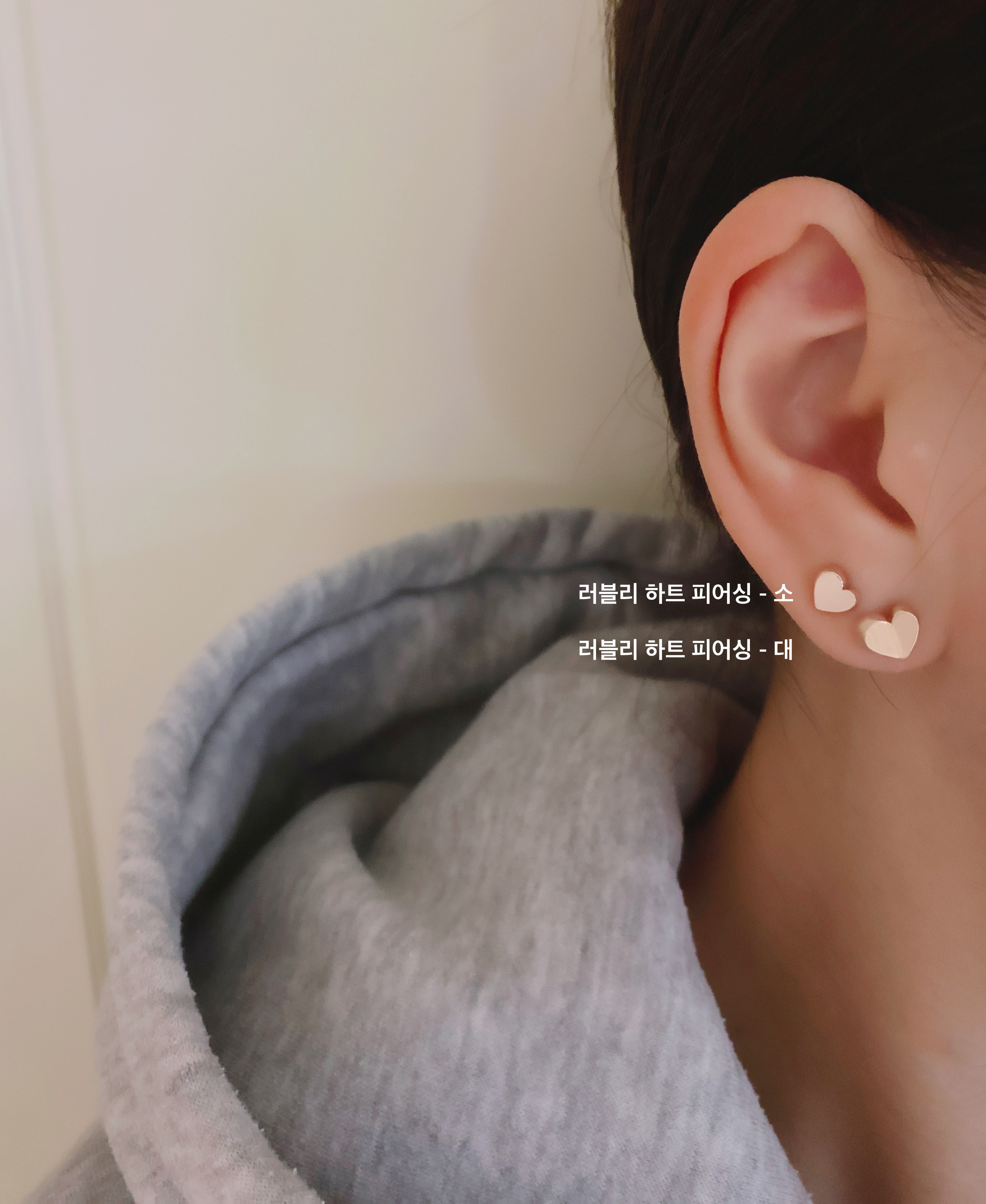 모델은 귀걸이용로 뚫은 구멍에 착용 후 촬영했습니다.
