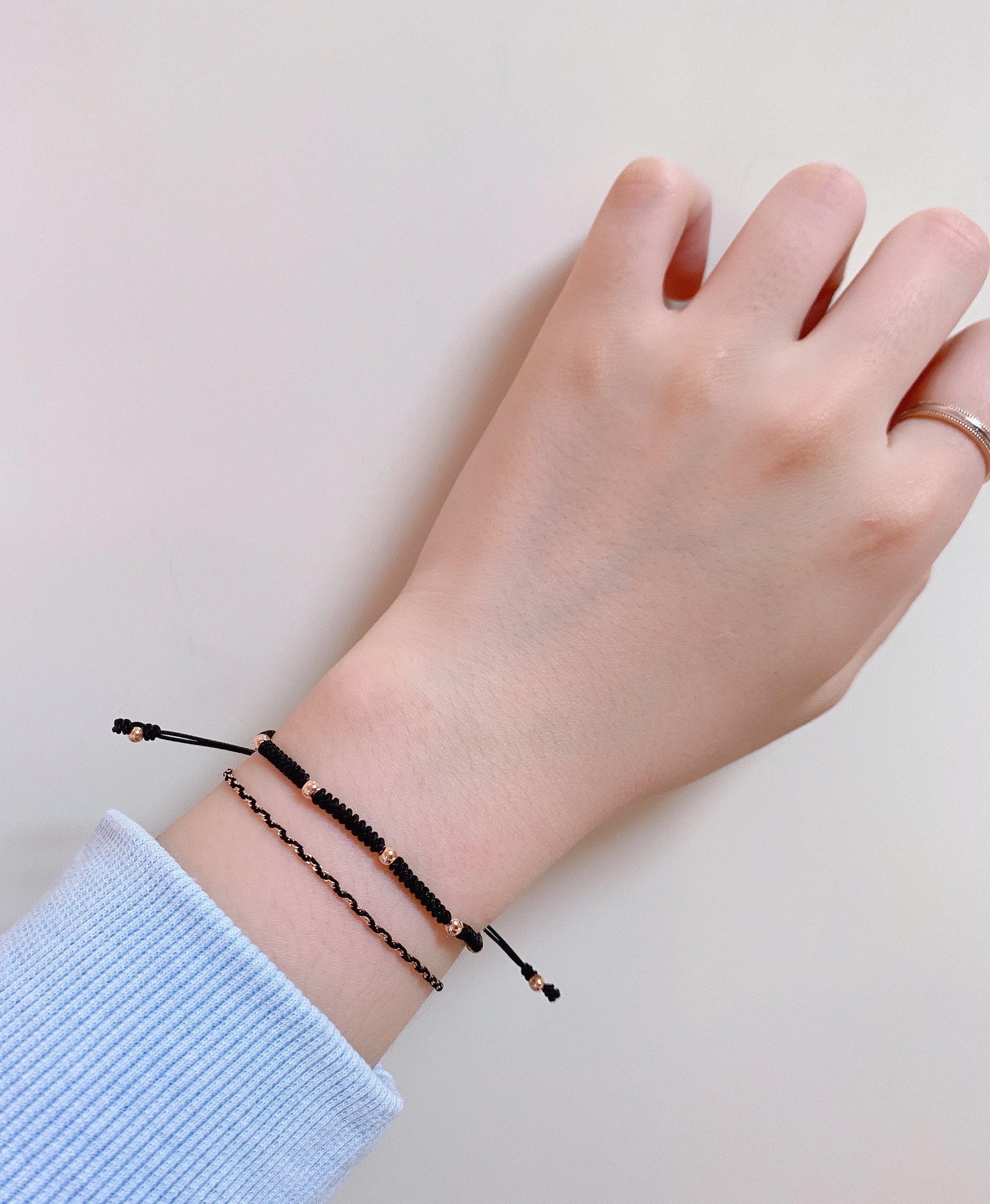 (촬영컷의 모델은 손목둘레 14.5cm에 블랙줄+로즈골드 15cm 사이즈로 착용했습니다.)