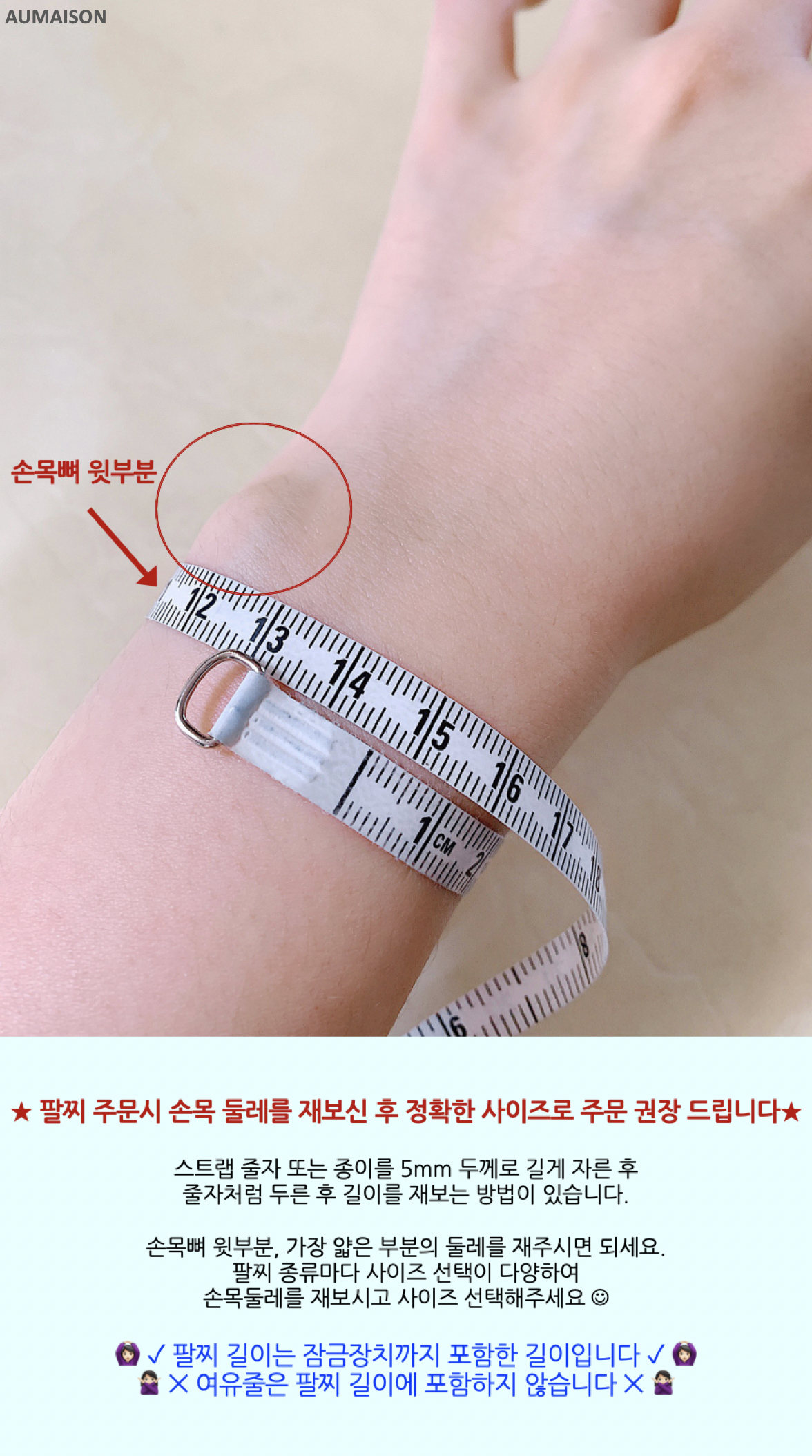 ˚ 사이즈팁 : 시계착용하는 부분에 착용원하시면 1~1.5cm크게 주문하시면 되세요.