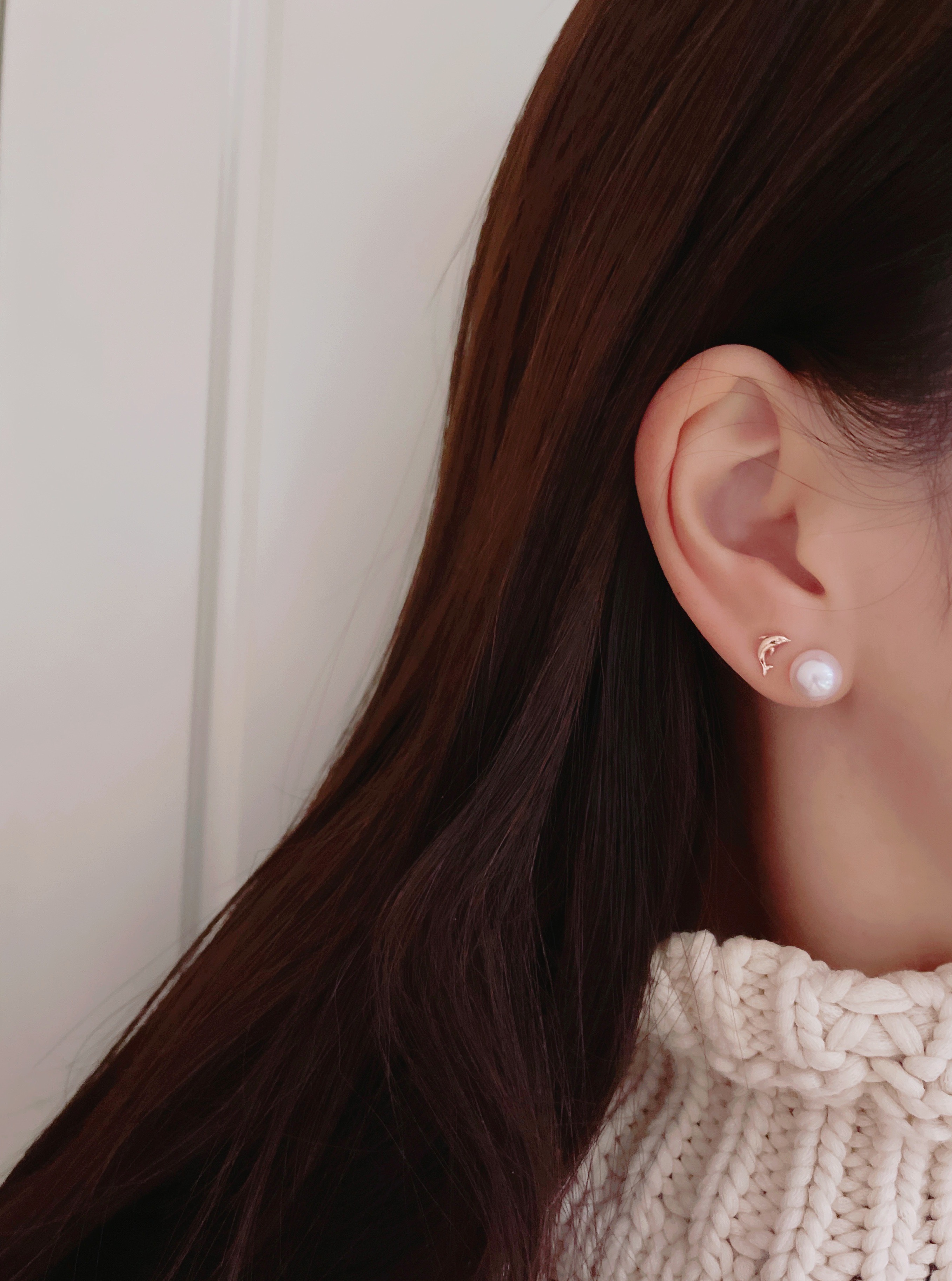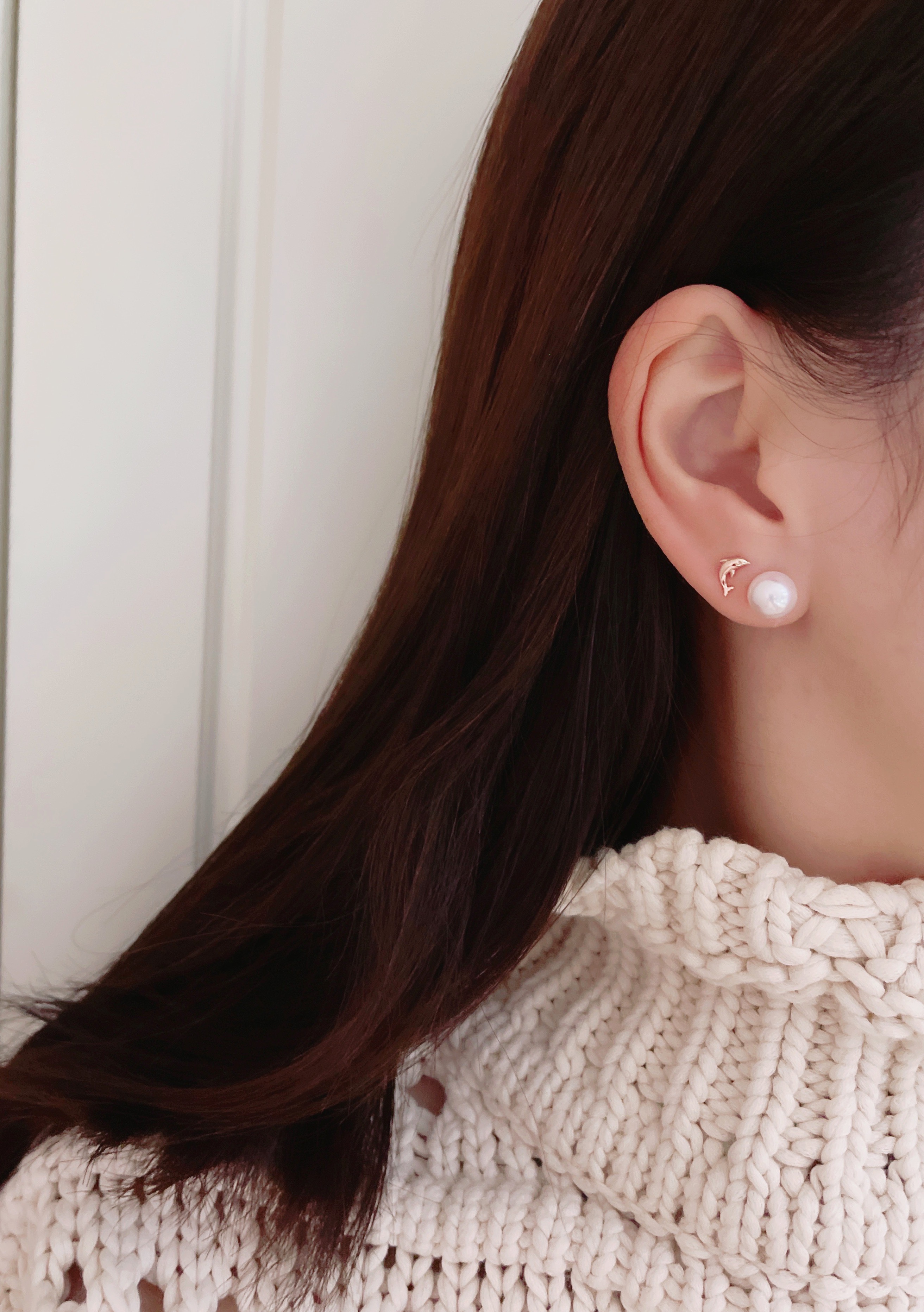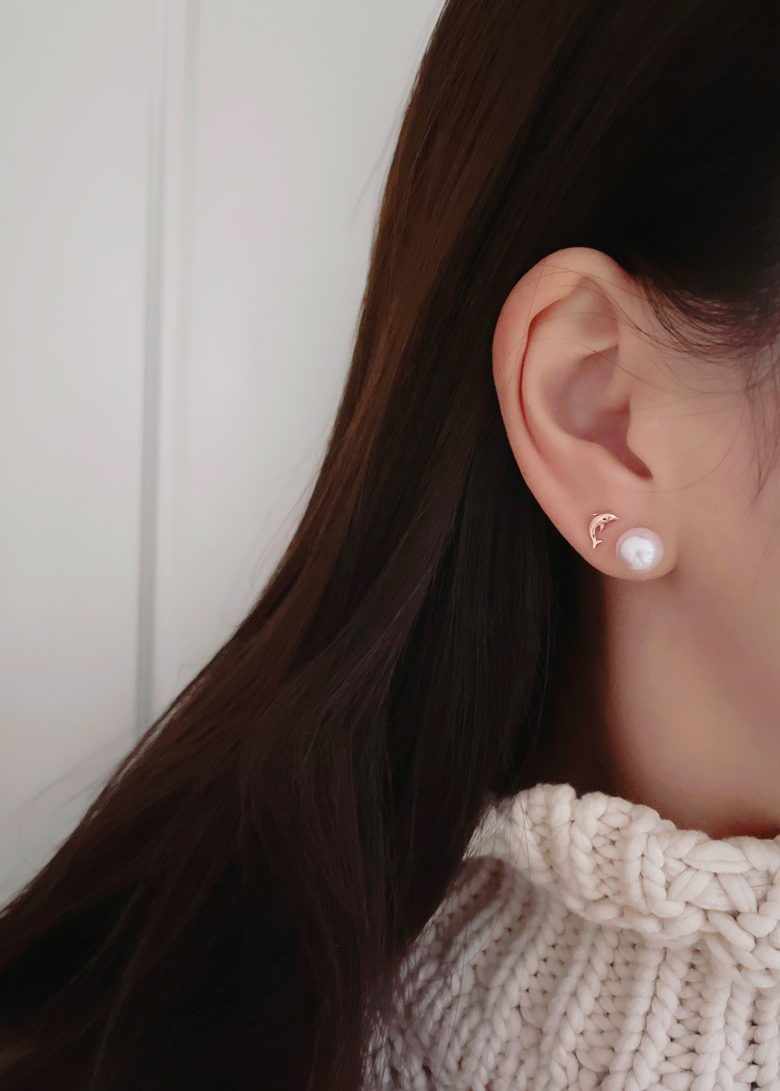모델은 귀걸이용로 뚫은 구멍에 착용 후 촬영했습니다.