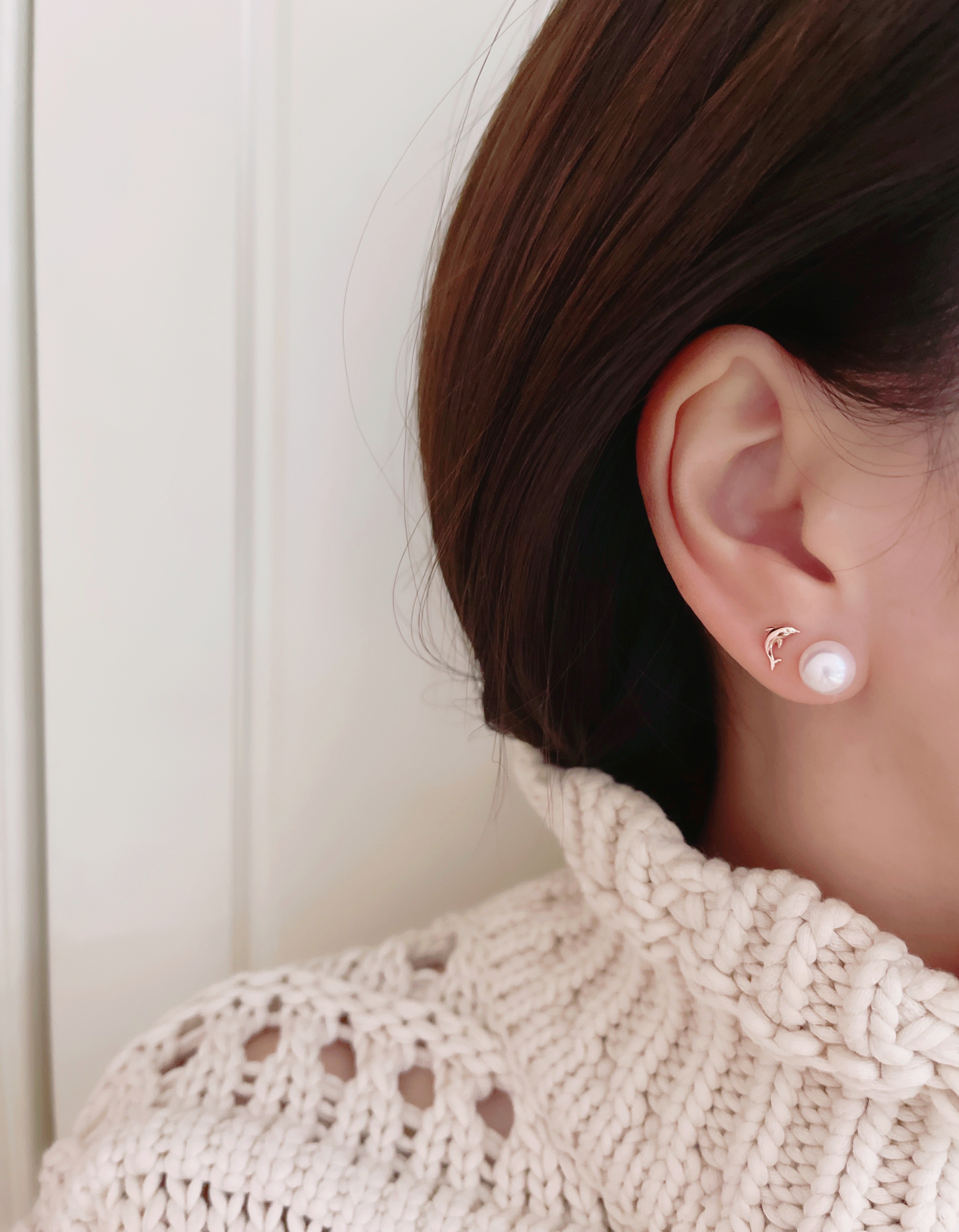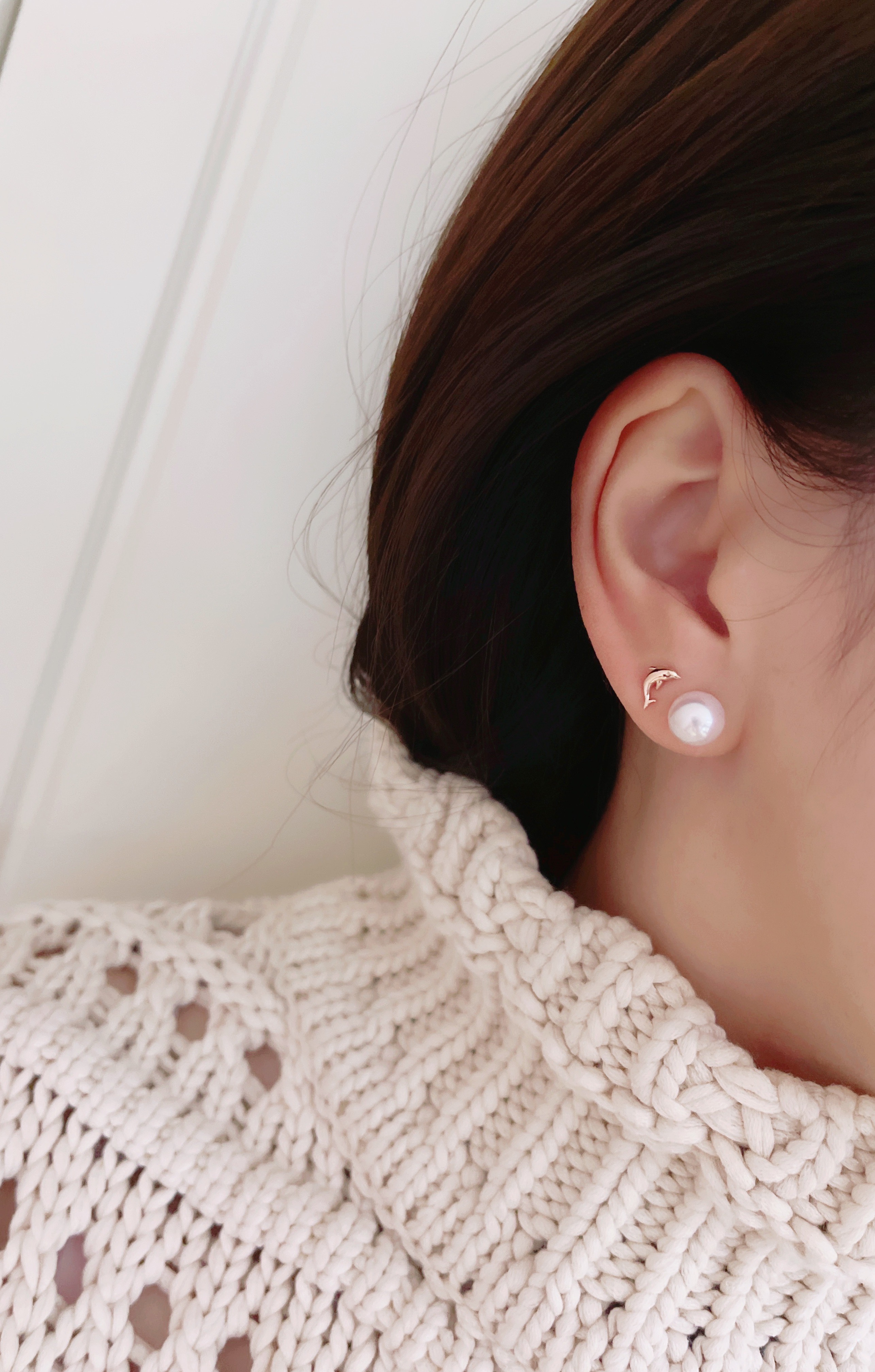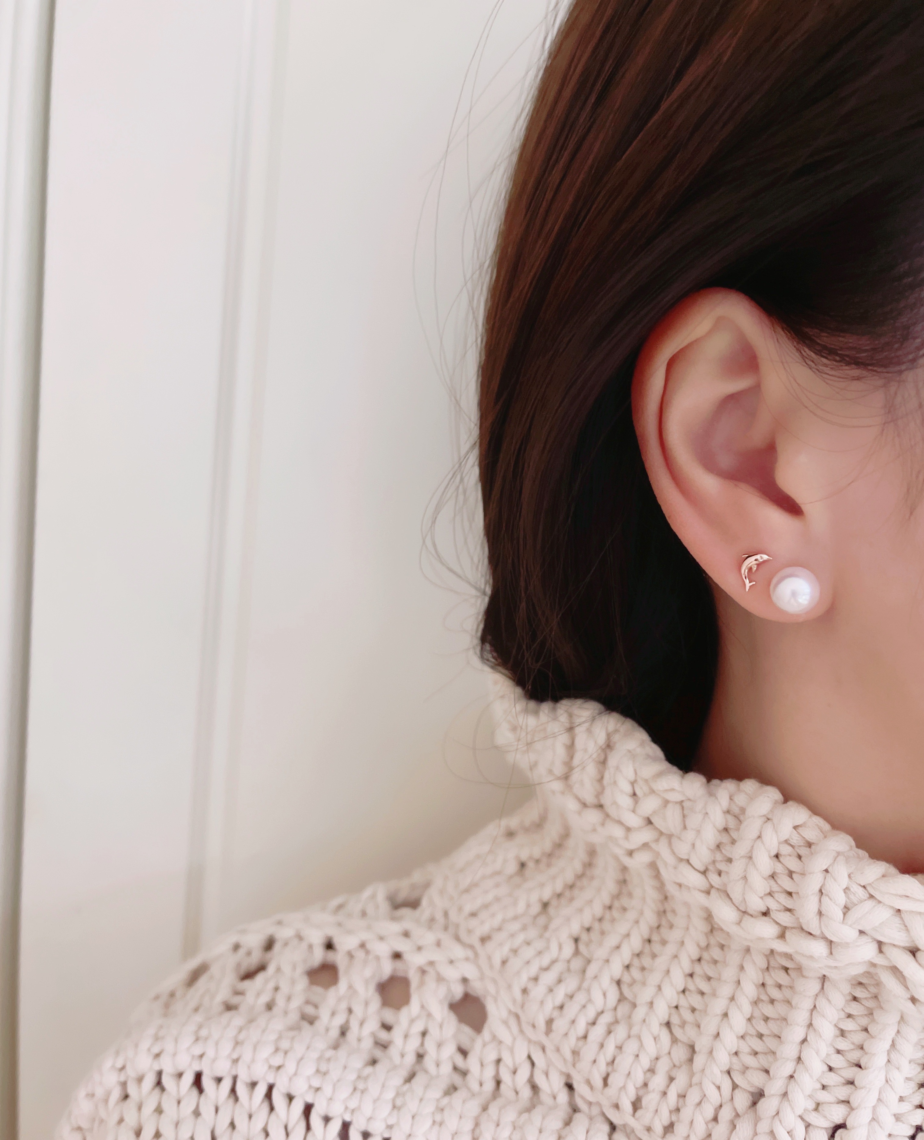 모델은 귀걸이용로 뚫은 구멍에 착용 후 촬영했습니다.