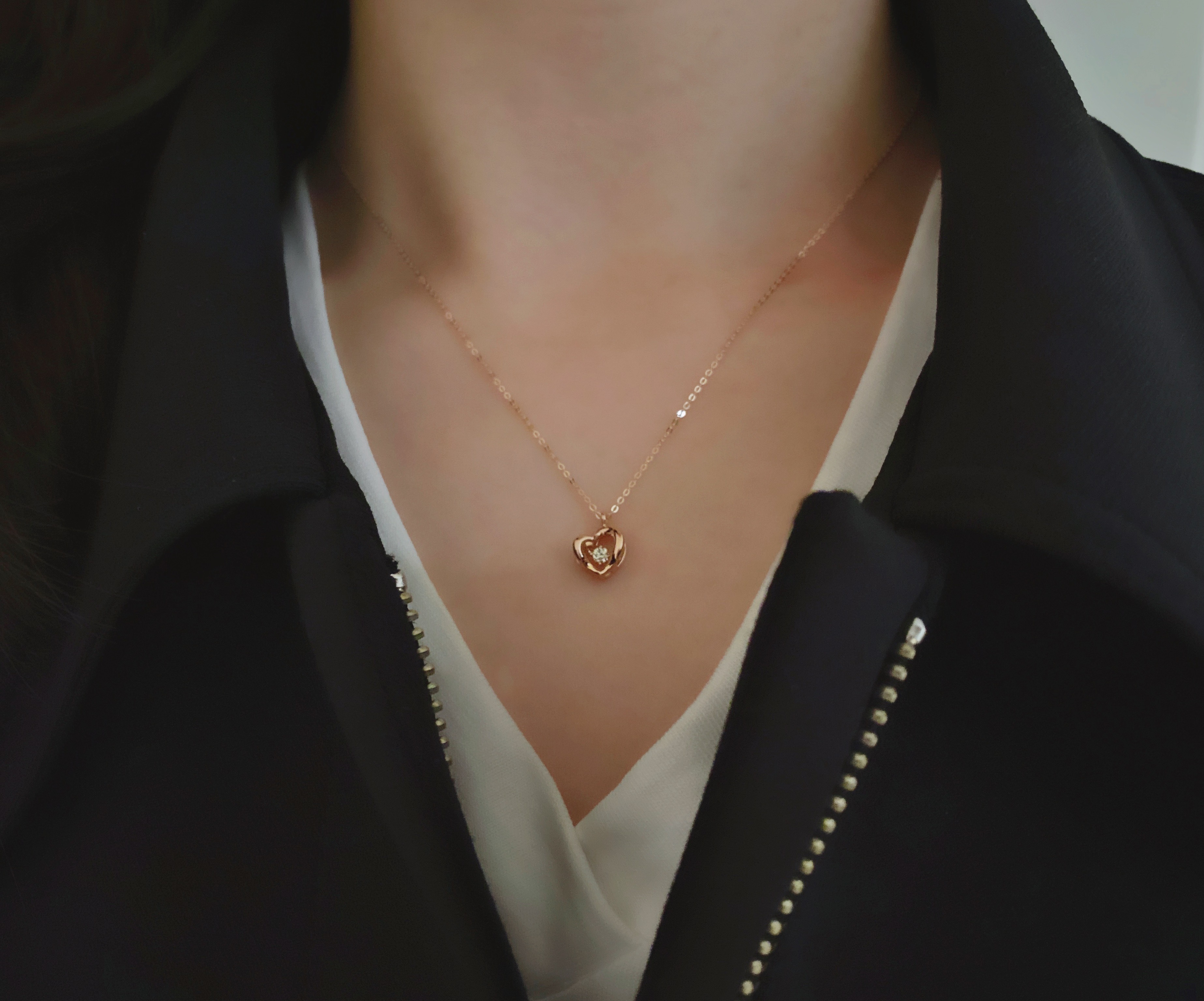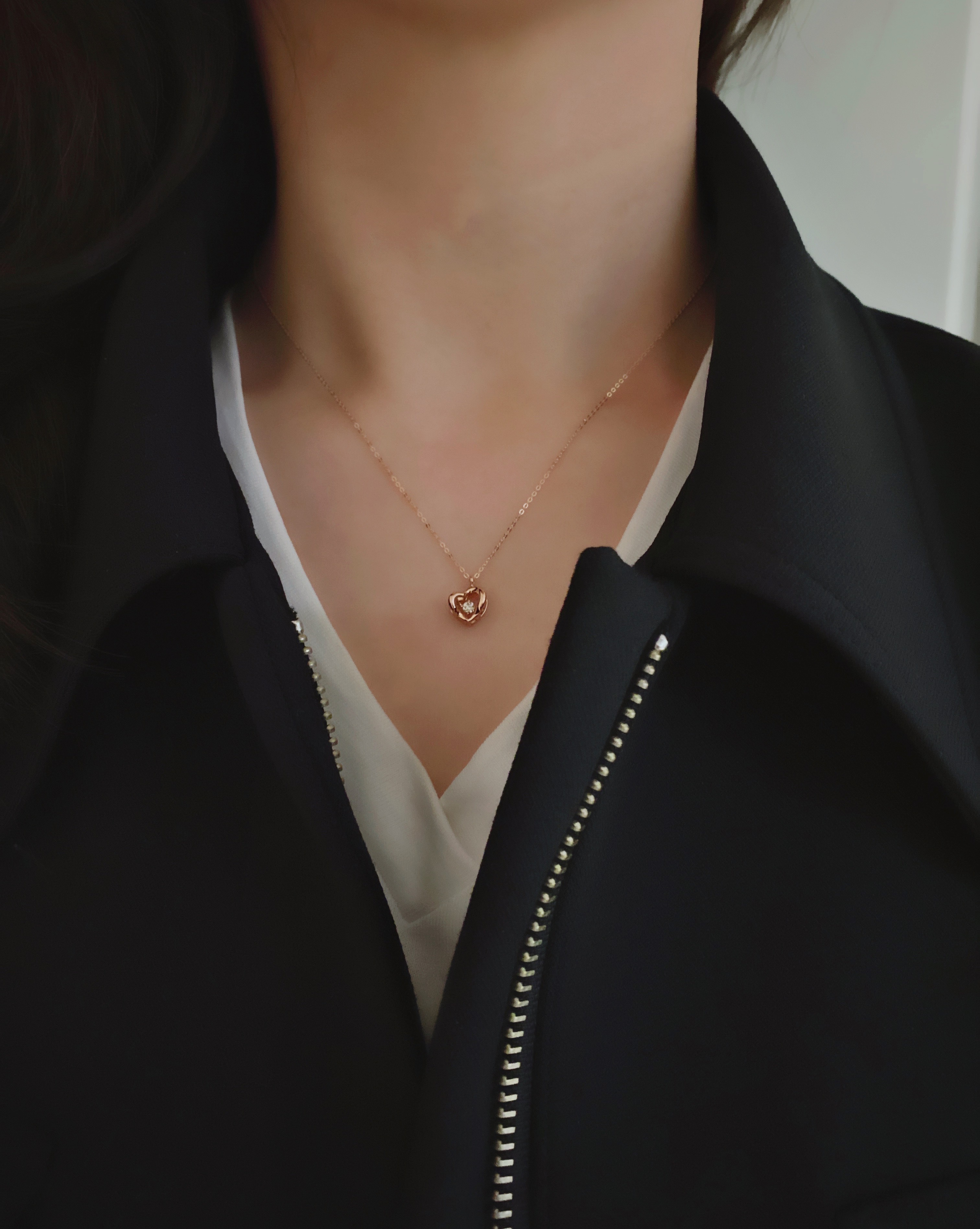 댄싱 꼬냑다이아 목걸이 - 하트