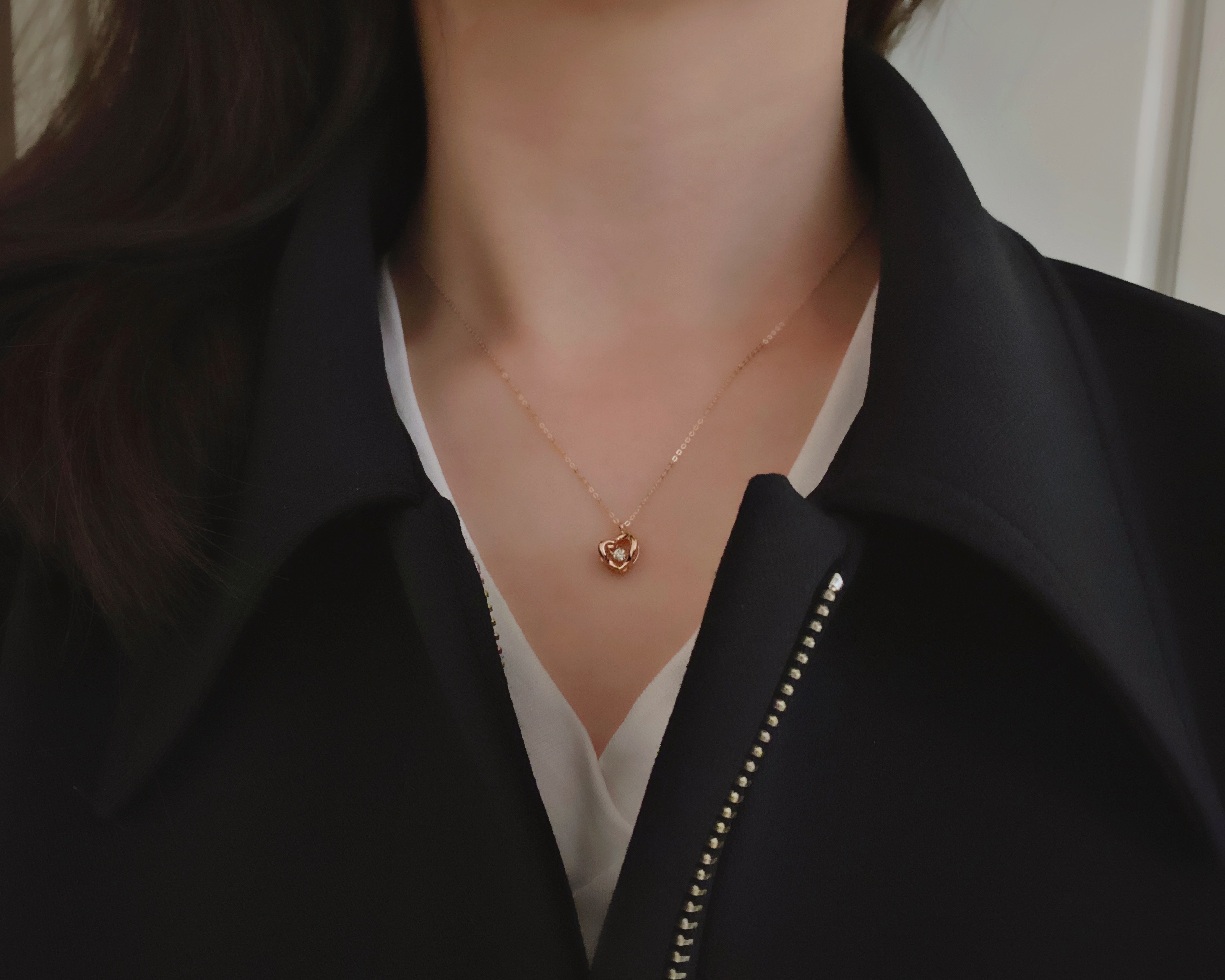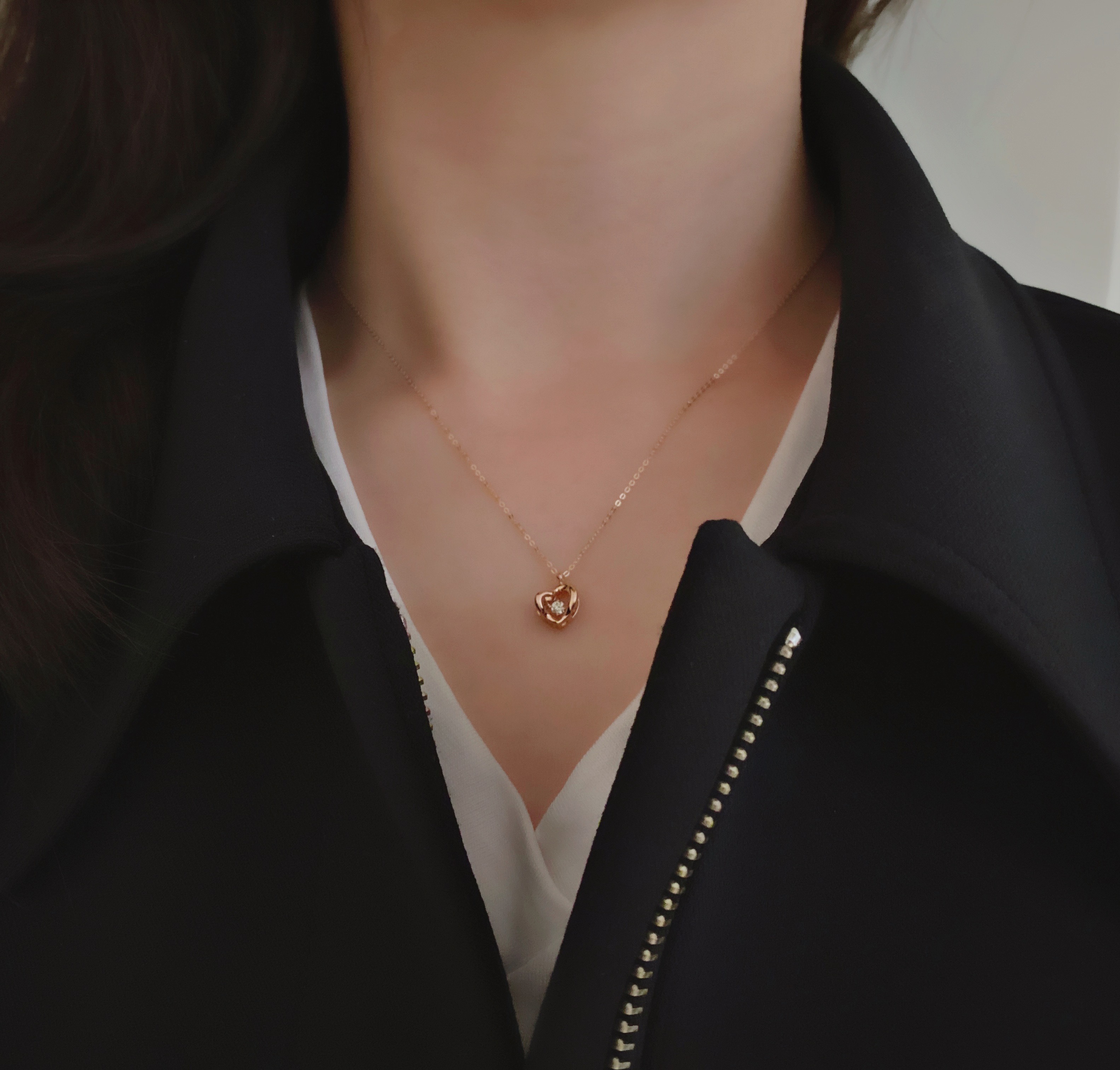 펜던트에 특수 세팅된 꼬냑 다이아몬드가 춤을 추듯 상하로 움직여 반짝임이 더욱 돋보이는 제품입니다.