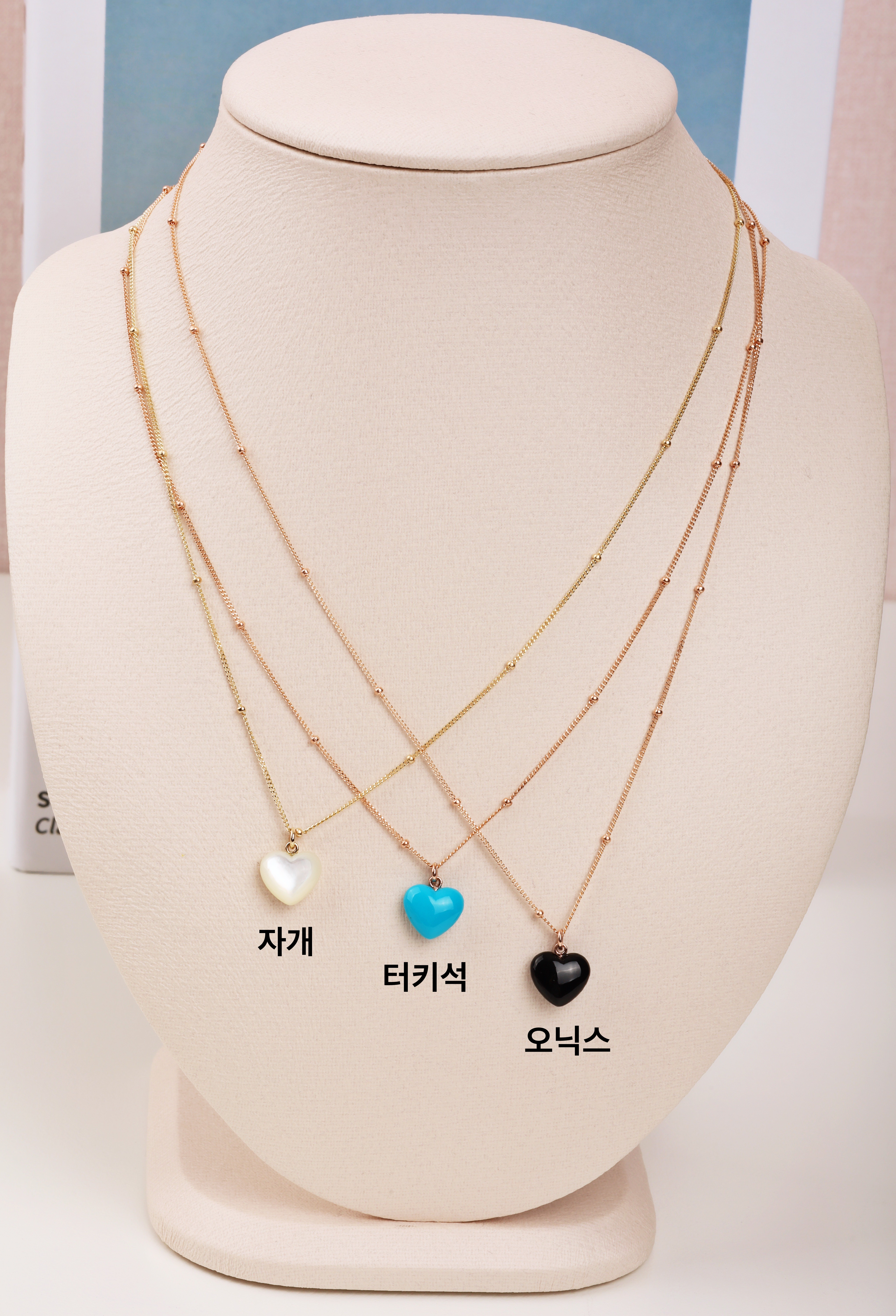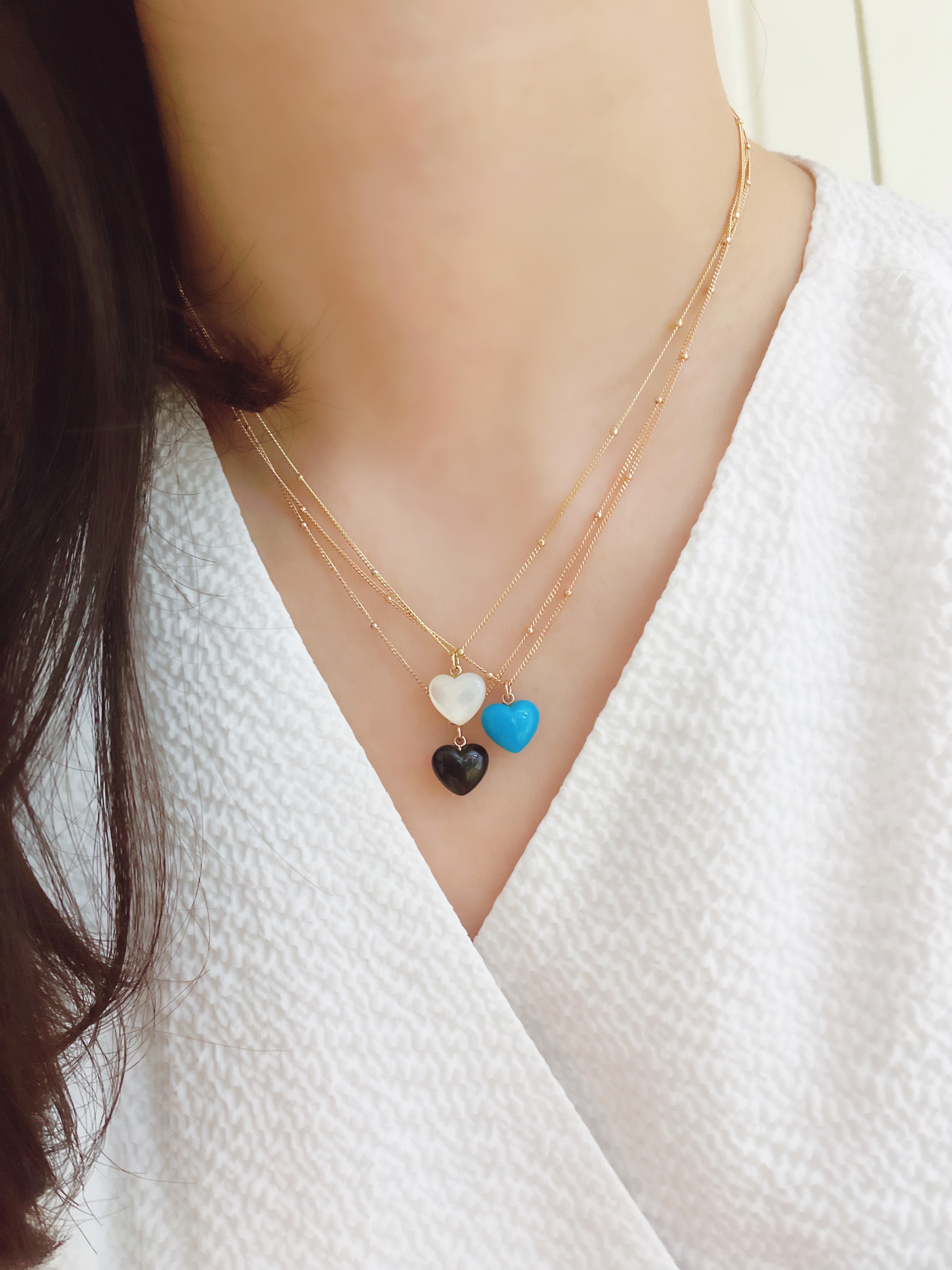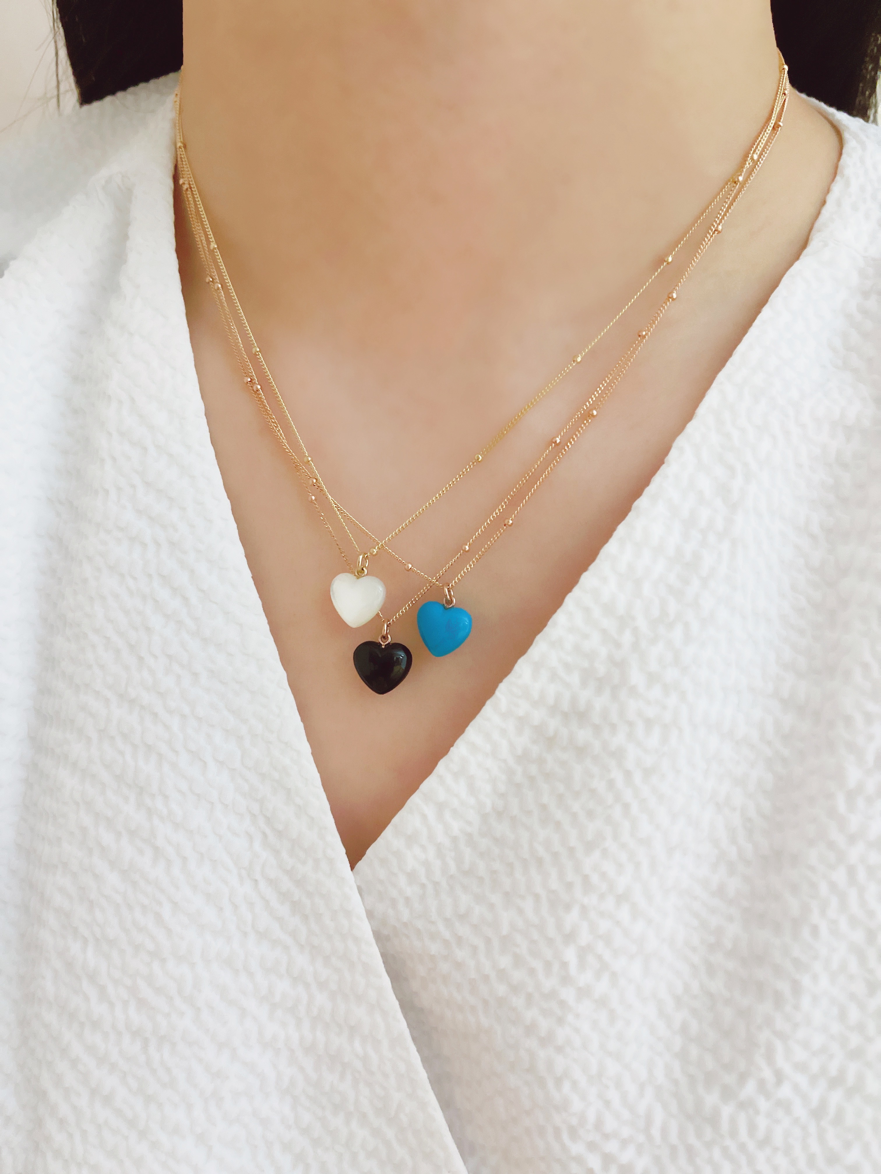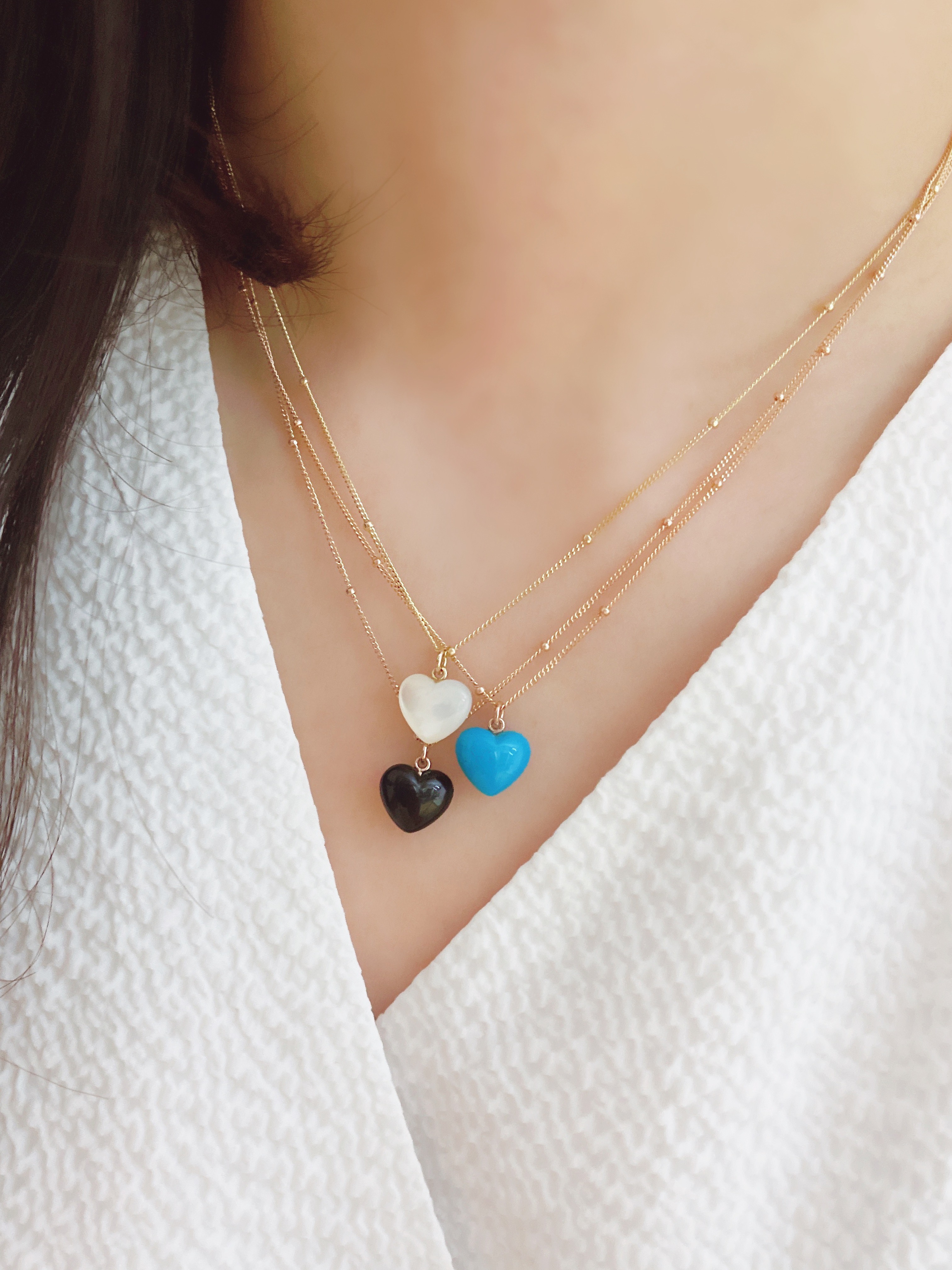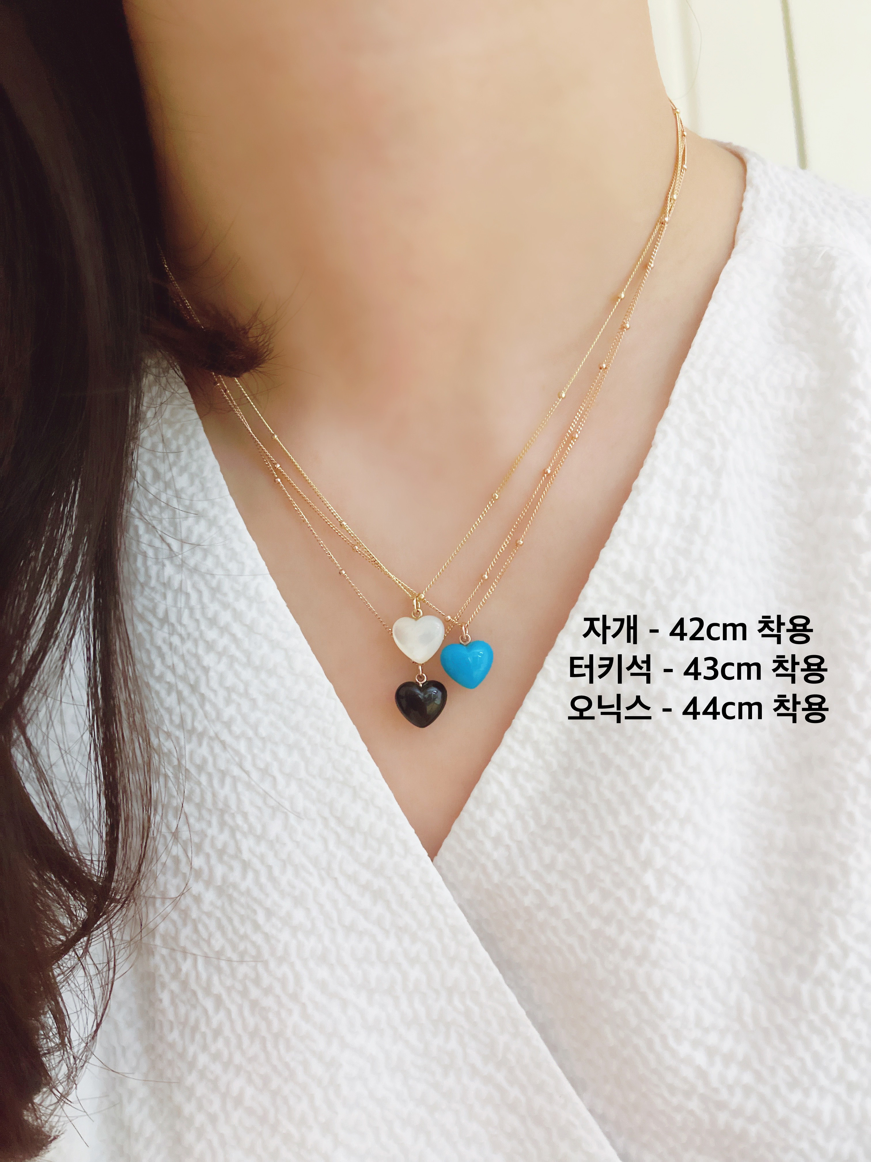 하트 오브 젬 목걸이는 3가지 스톤 옵션 (자개, 오닉스, 터키석) 중 선택 가능합니다 :-)