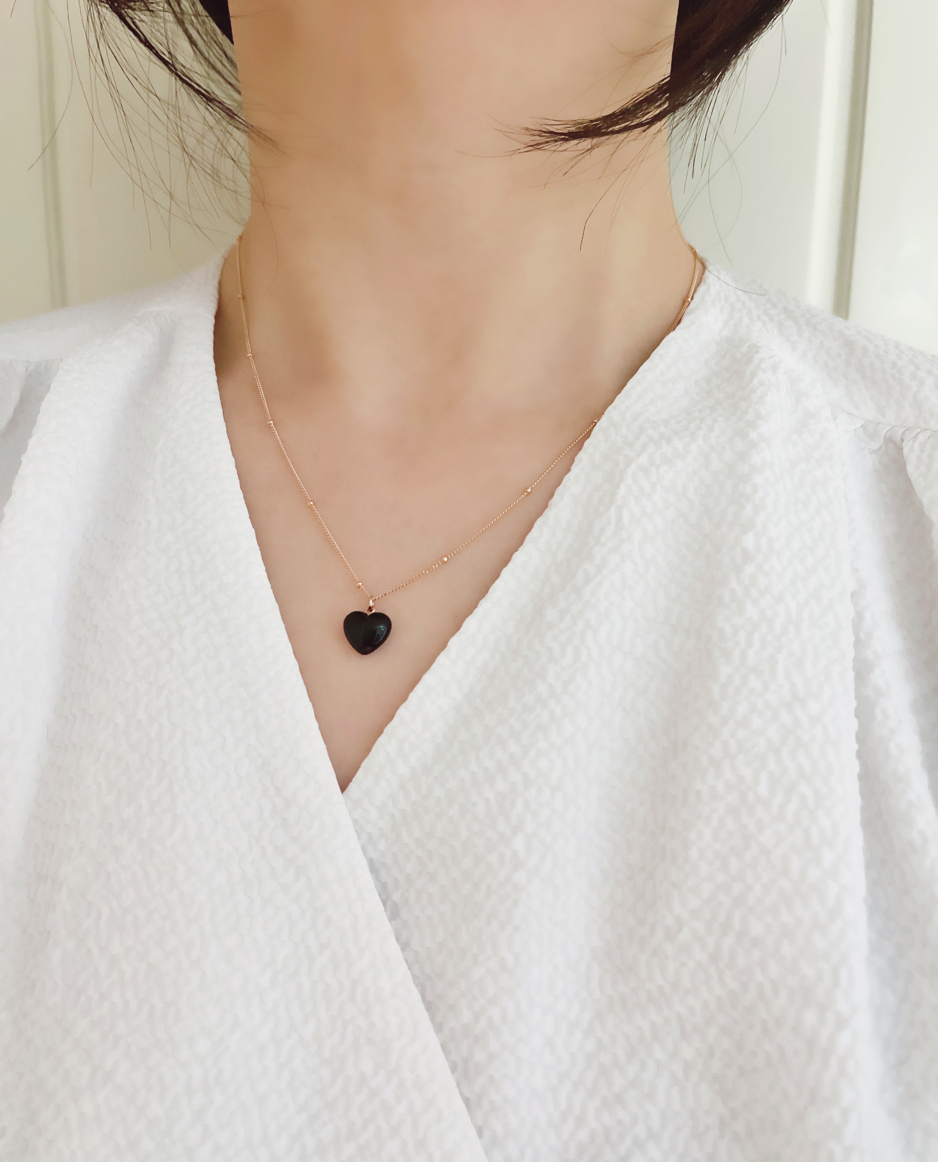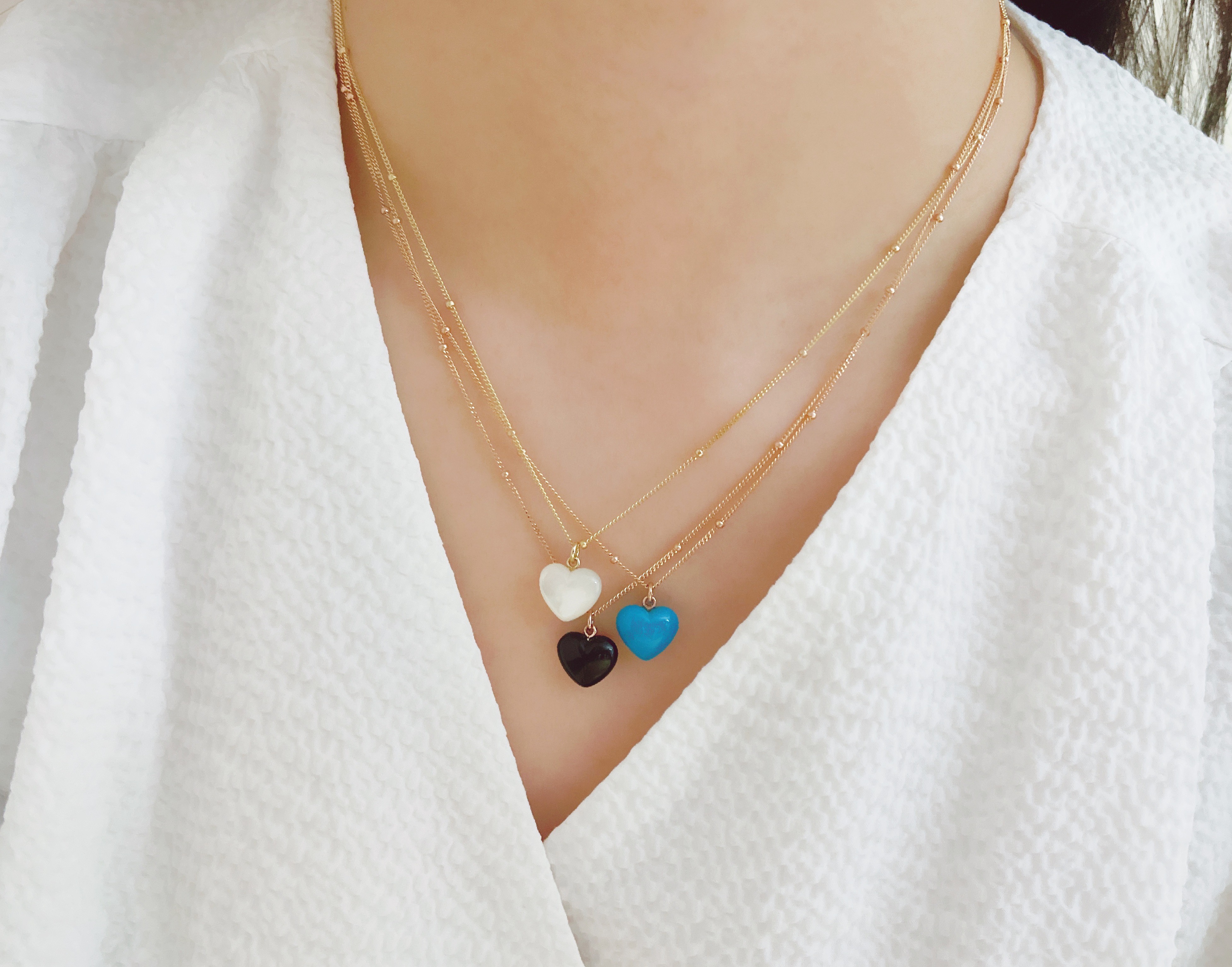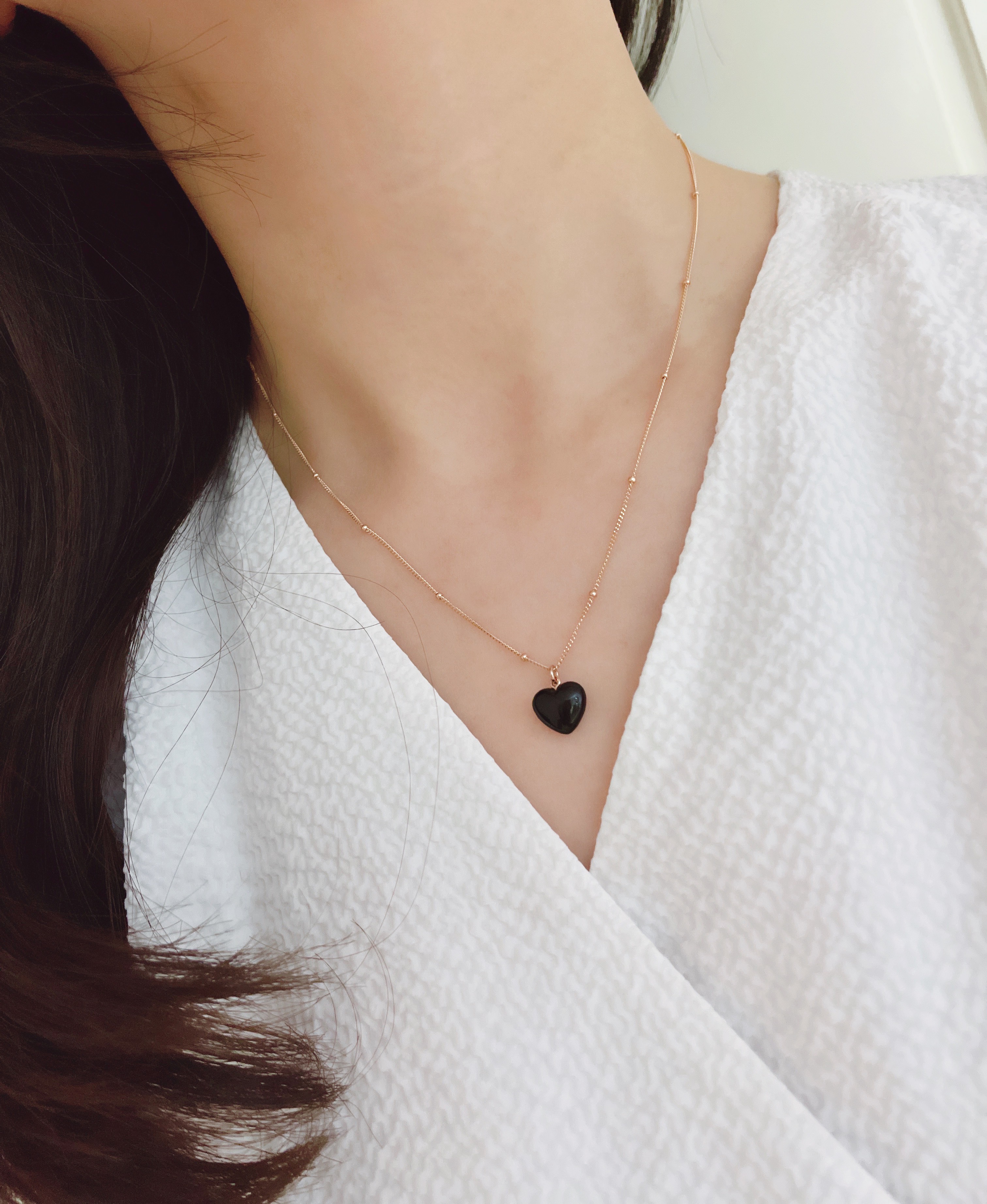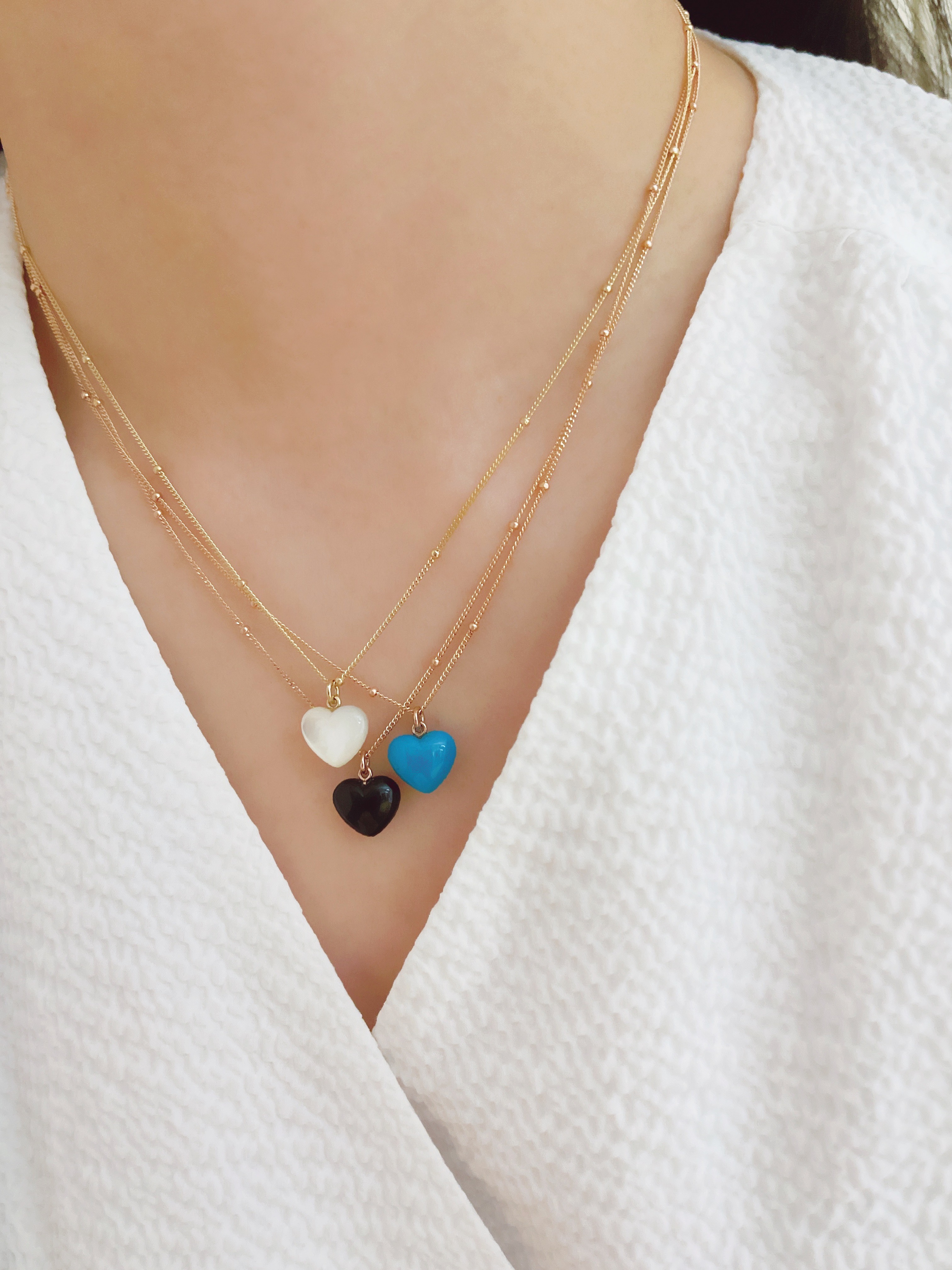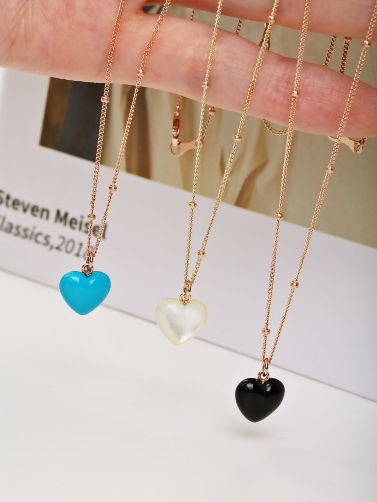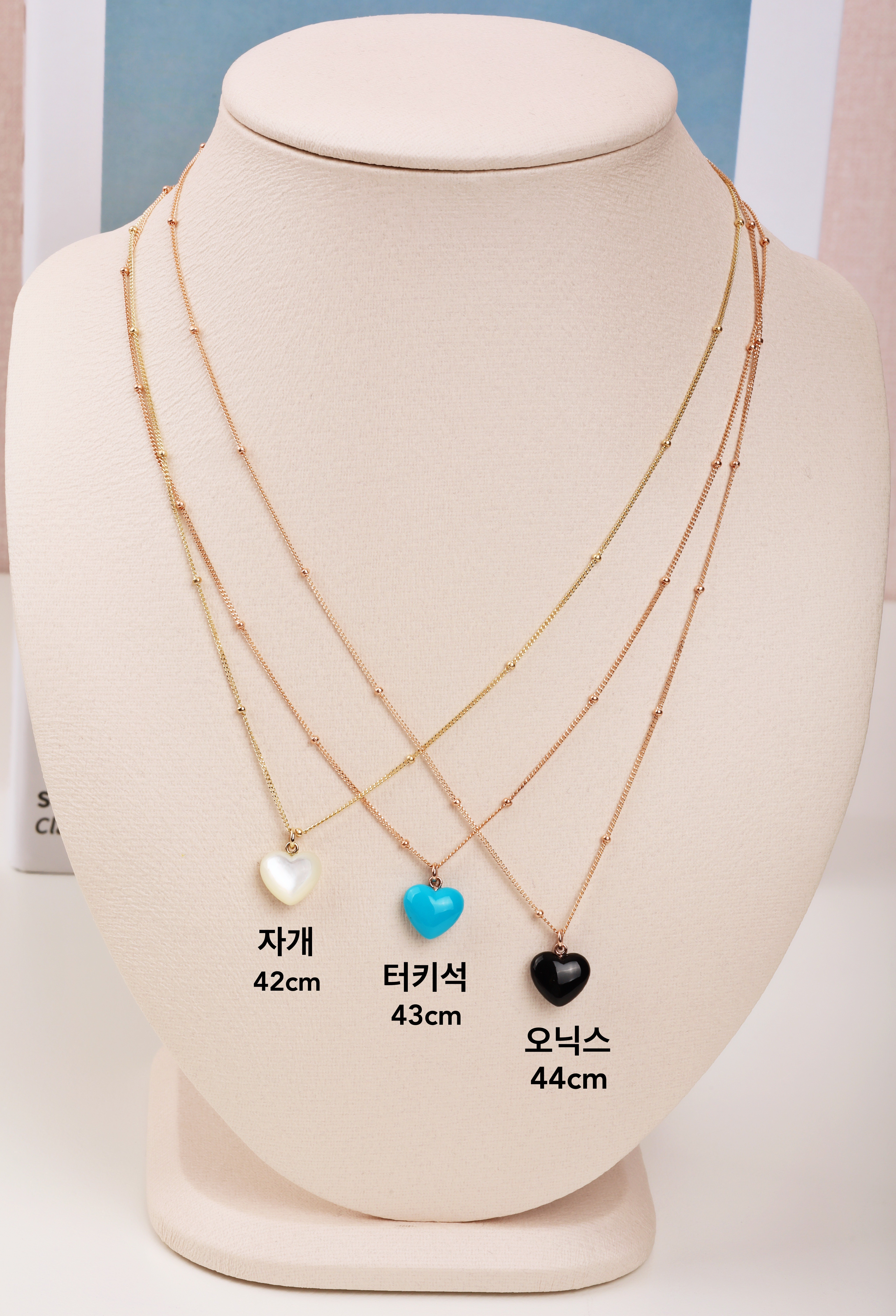 하트 오브 젬 목걸이는 3가지 스톤 옵션 (자개, 오닉스, 터키석) 중 선택 가능합니다 :-)