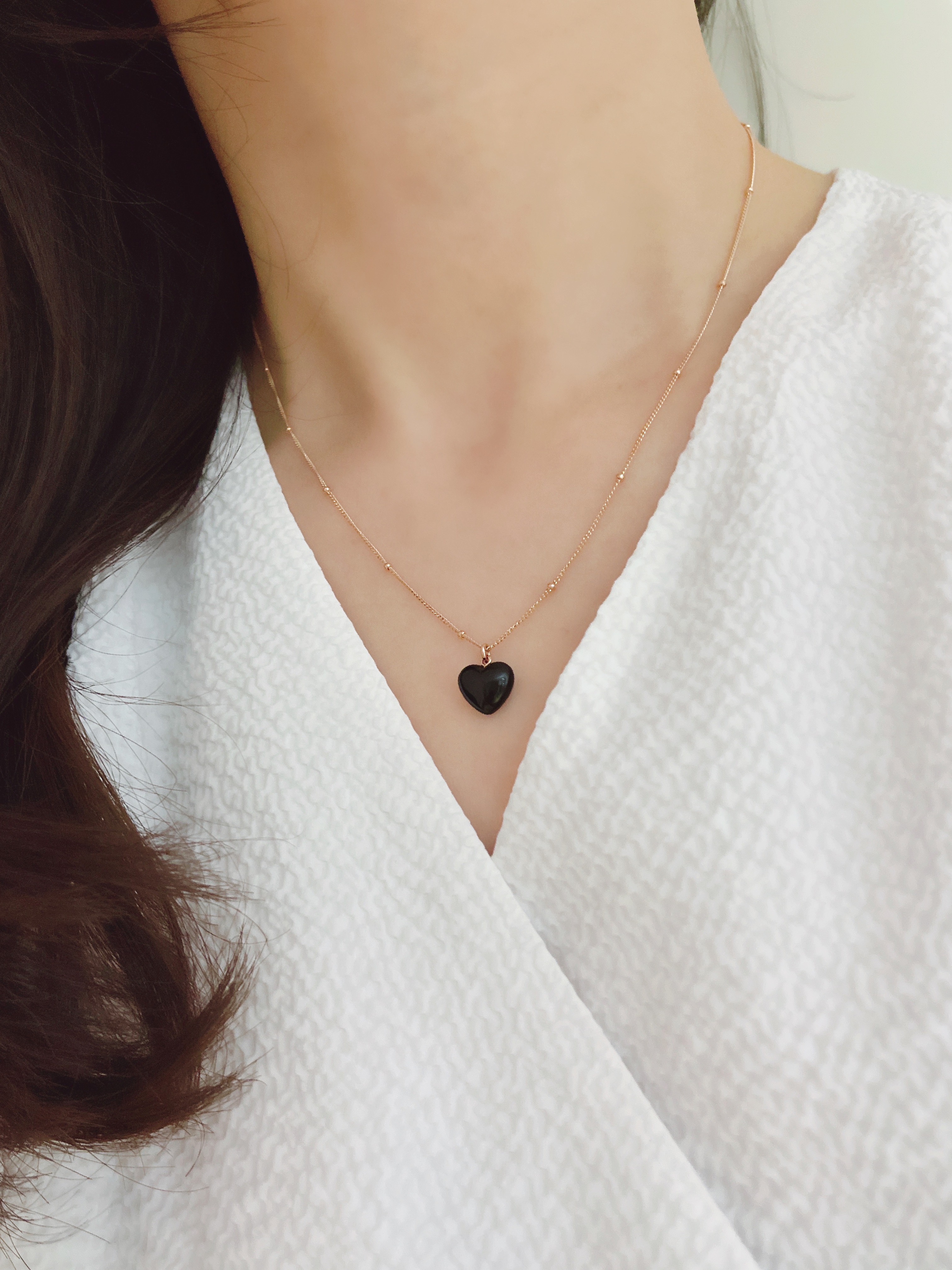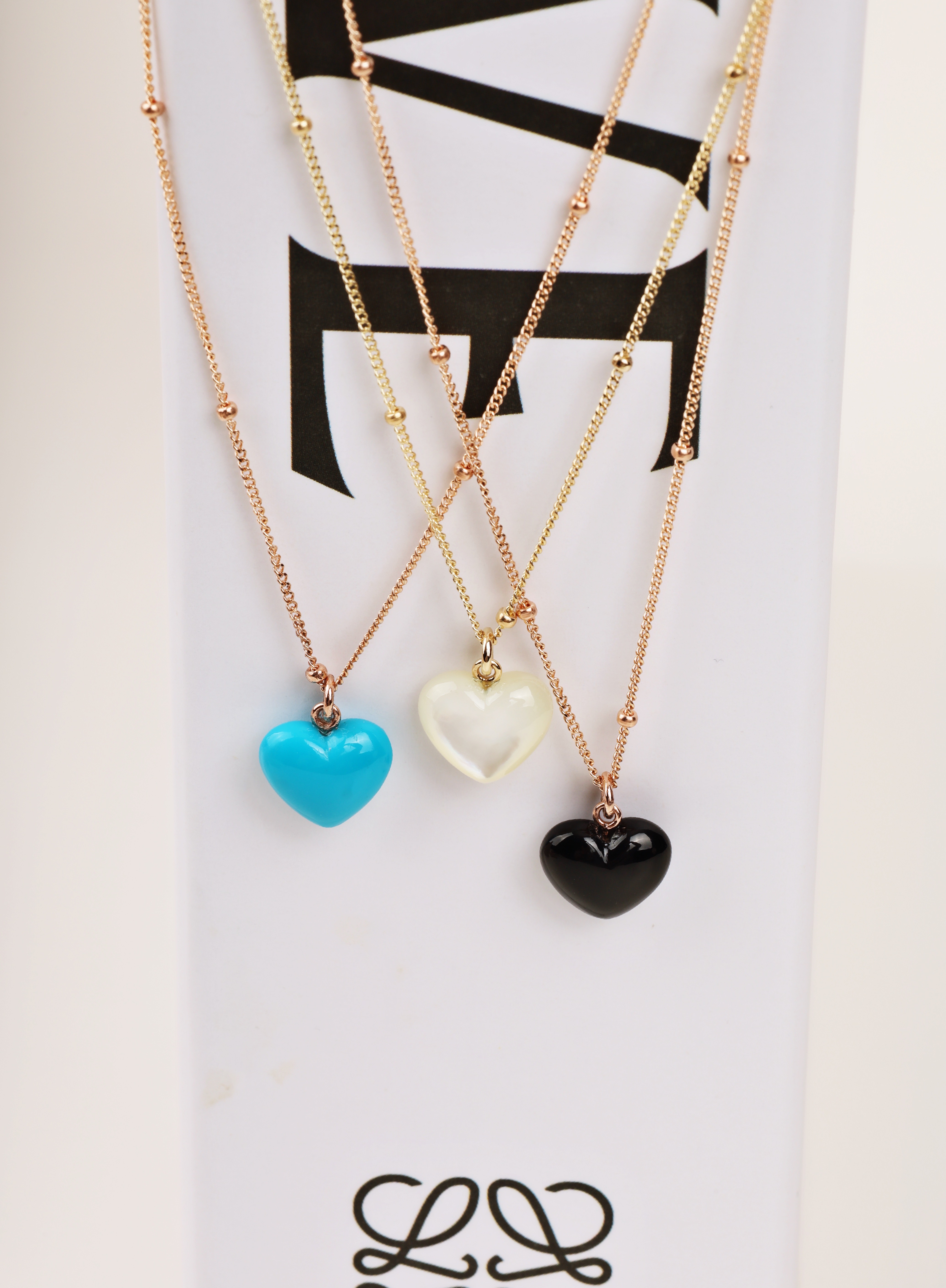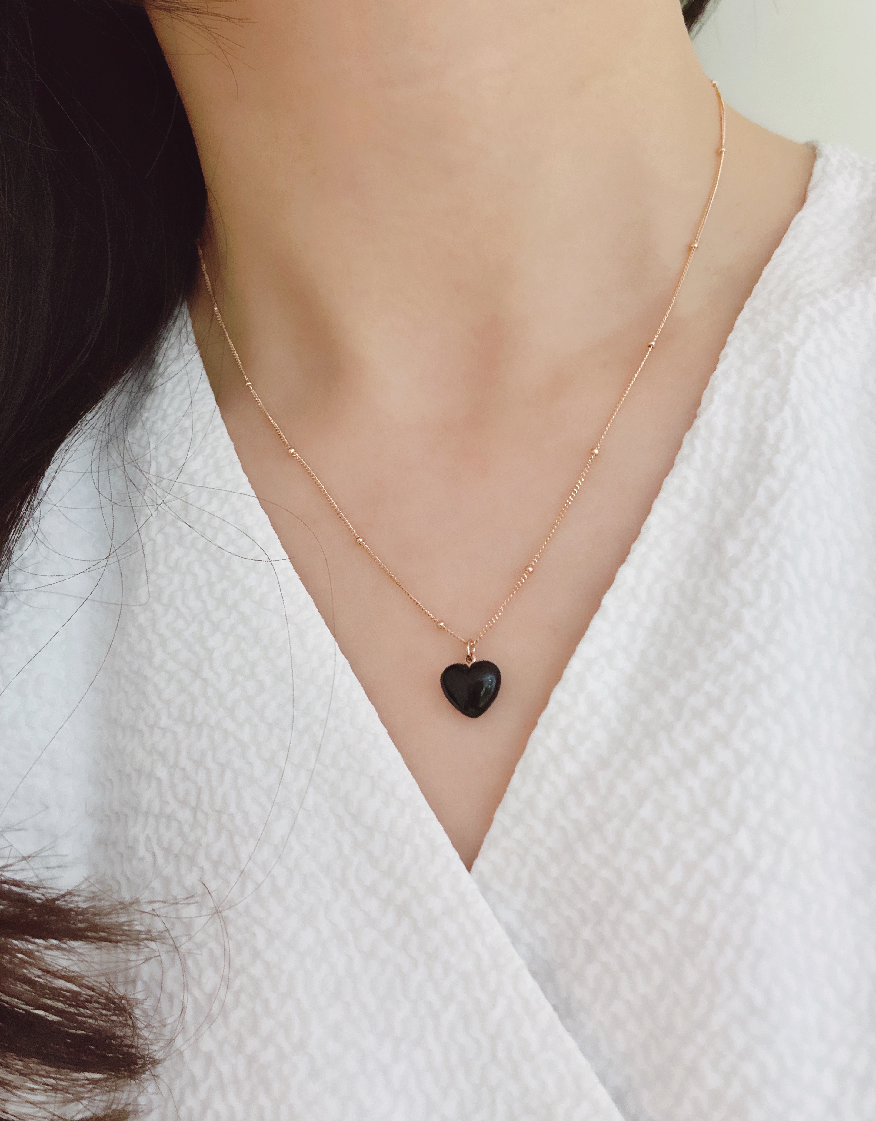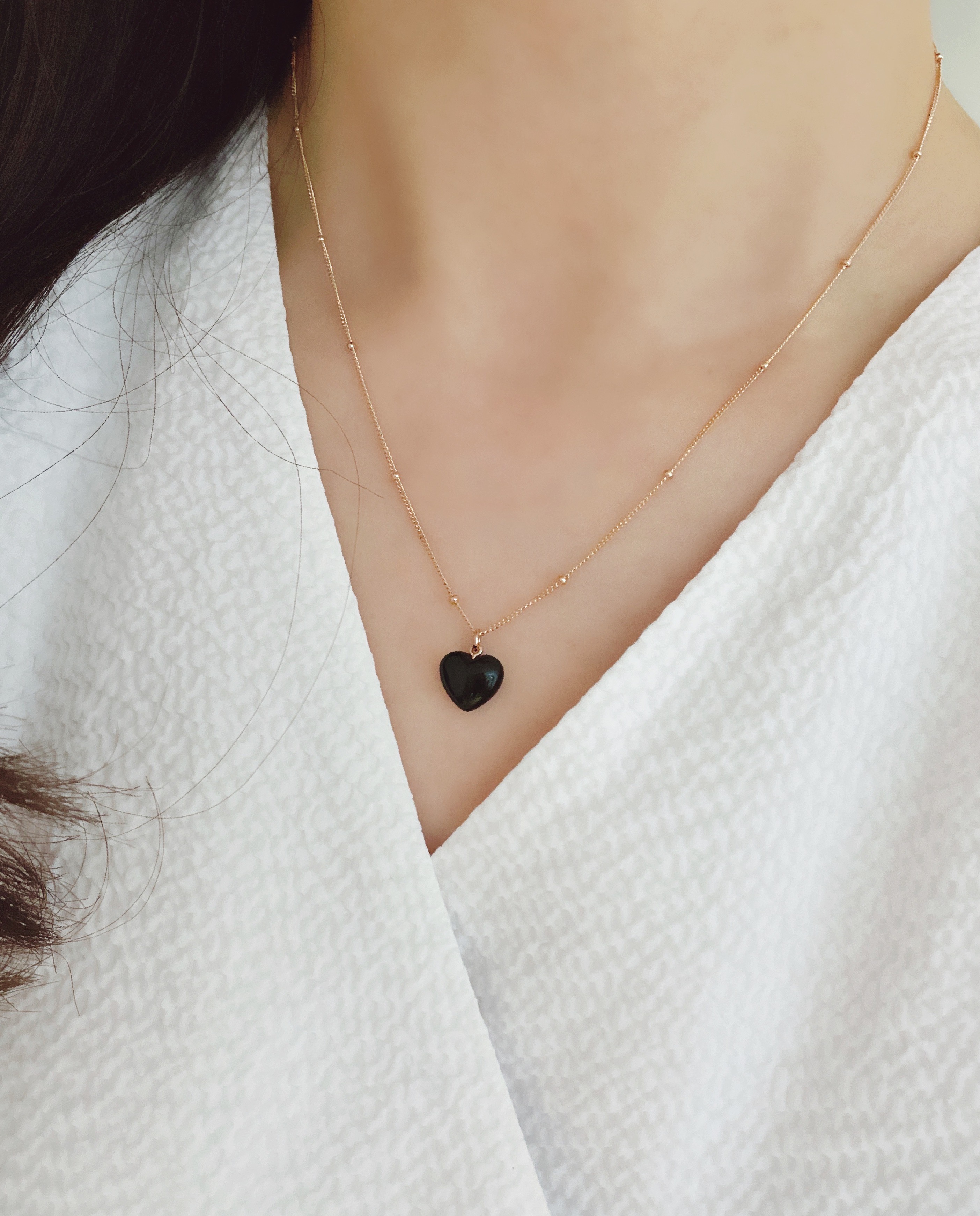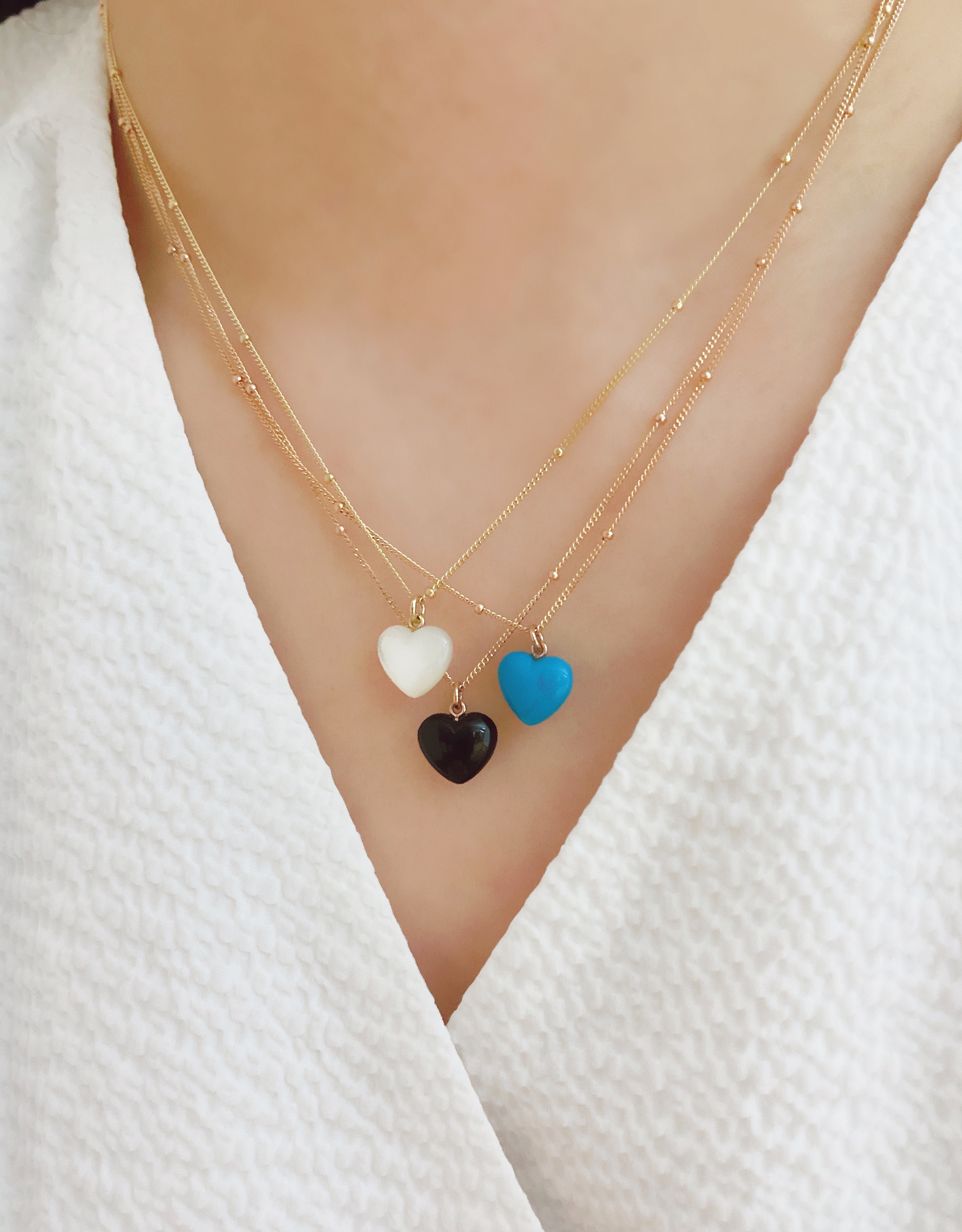 하트 오브 젬 목걸이는 3가지 스톤 옵션 (자개, 오닉스, 터키석) 중 선택 가능합니다 :-)