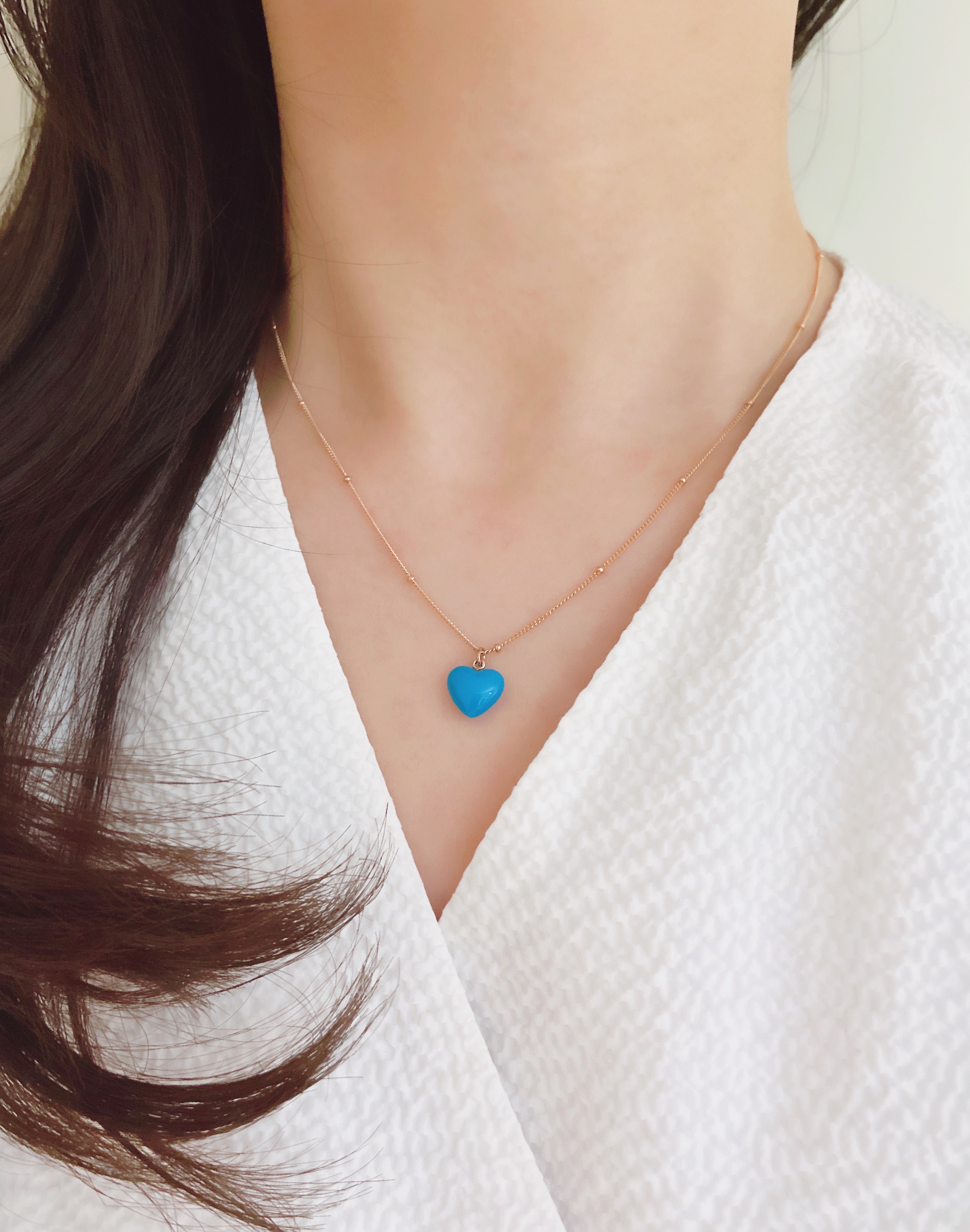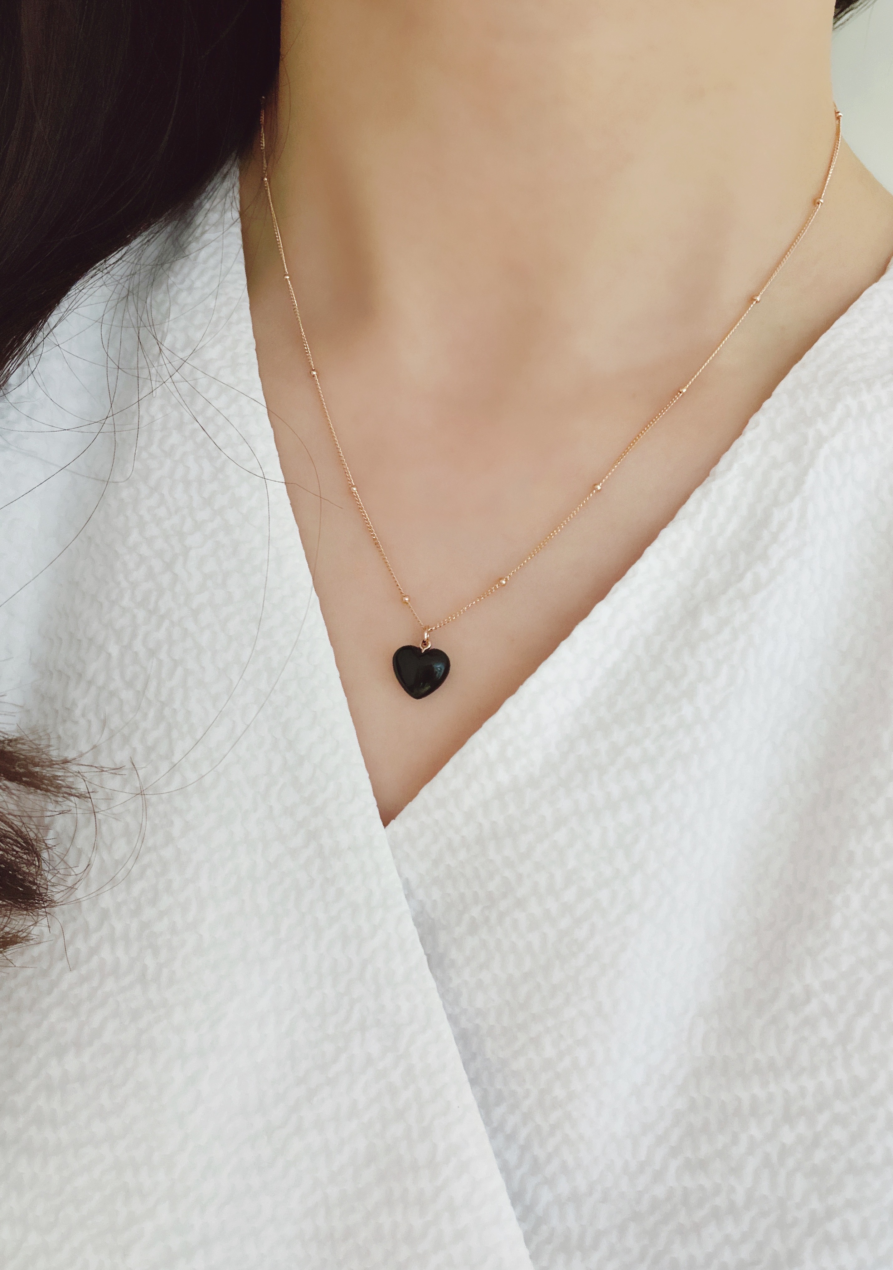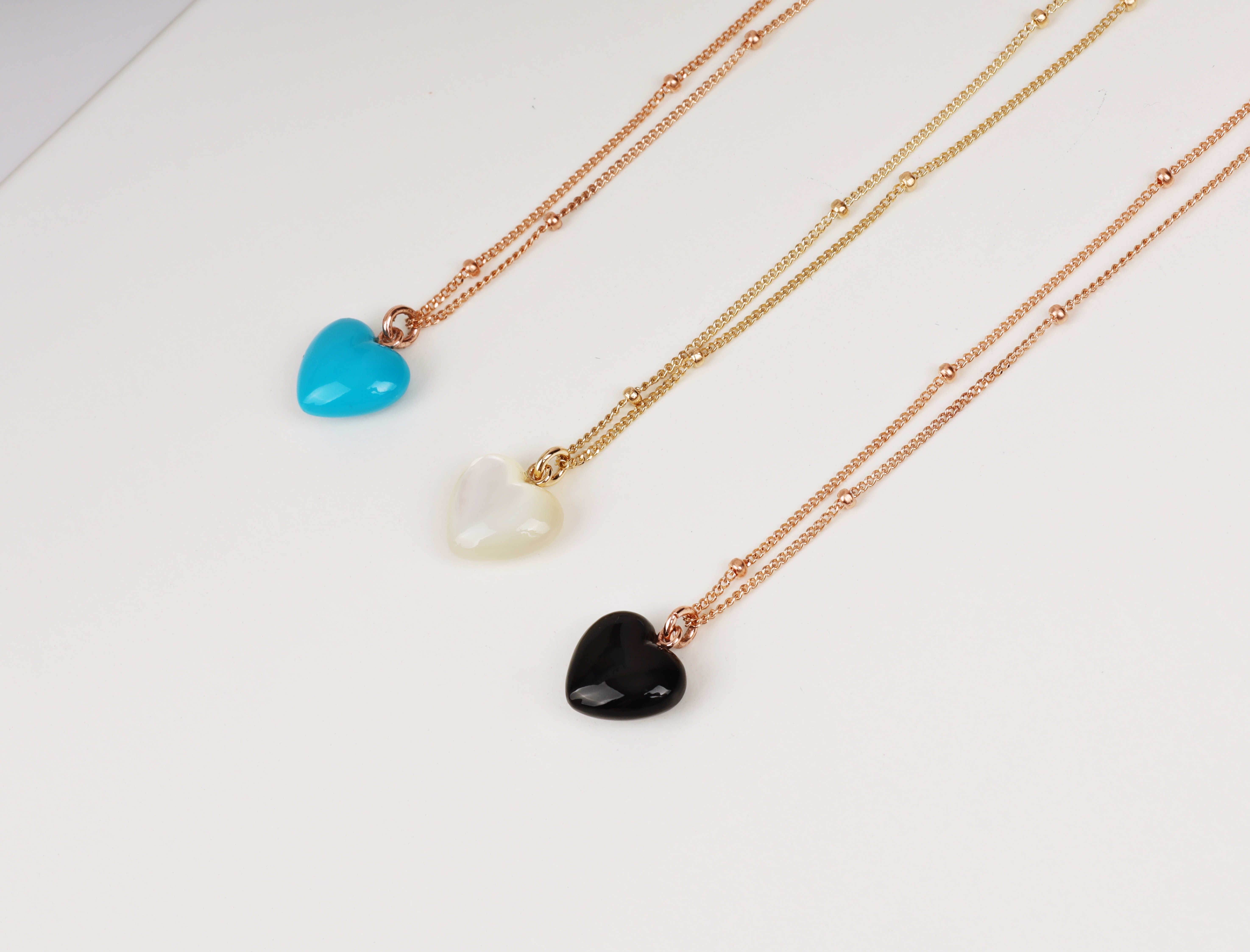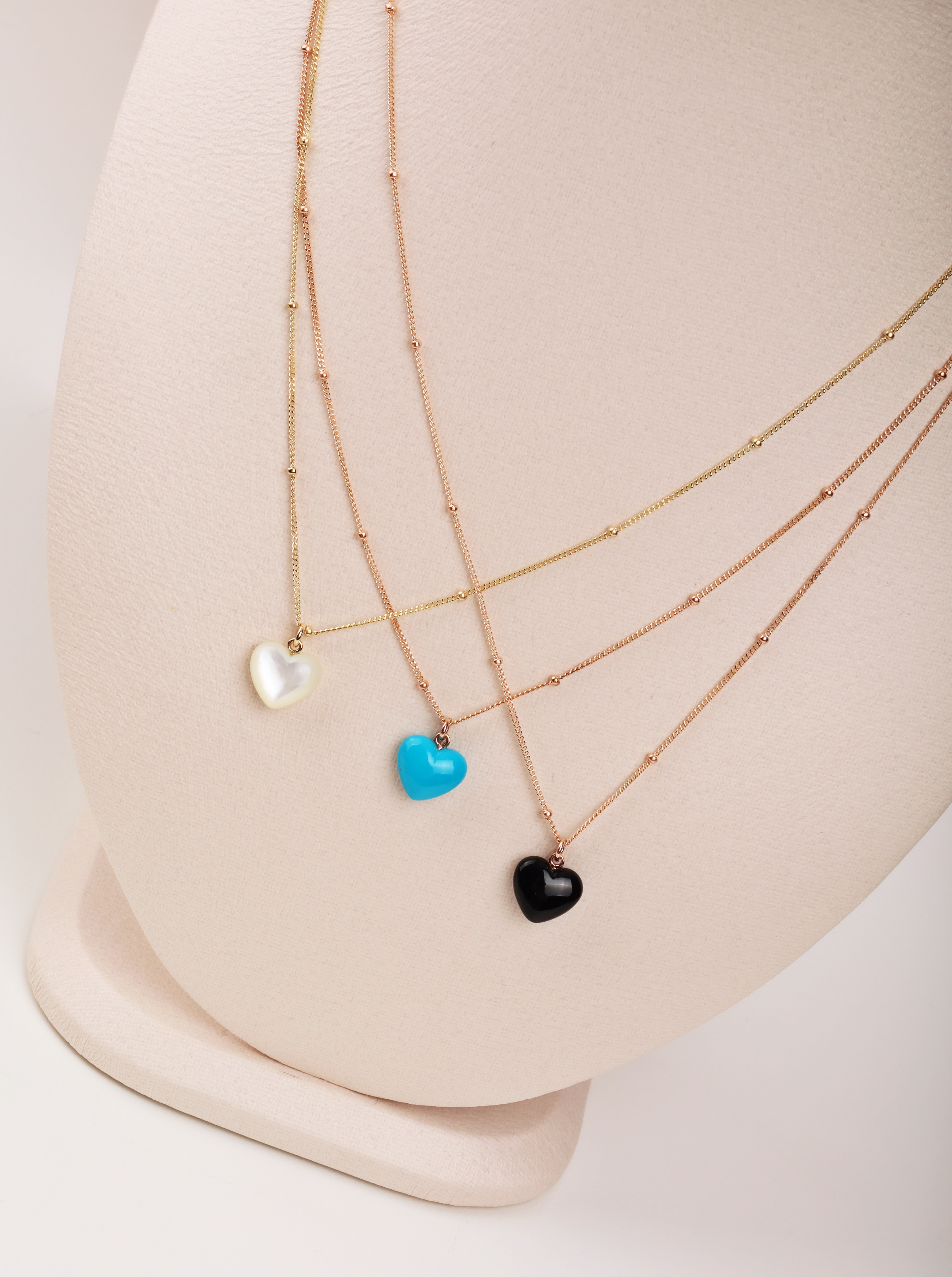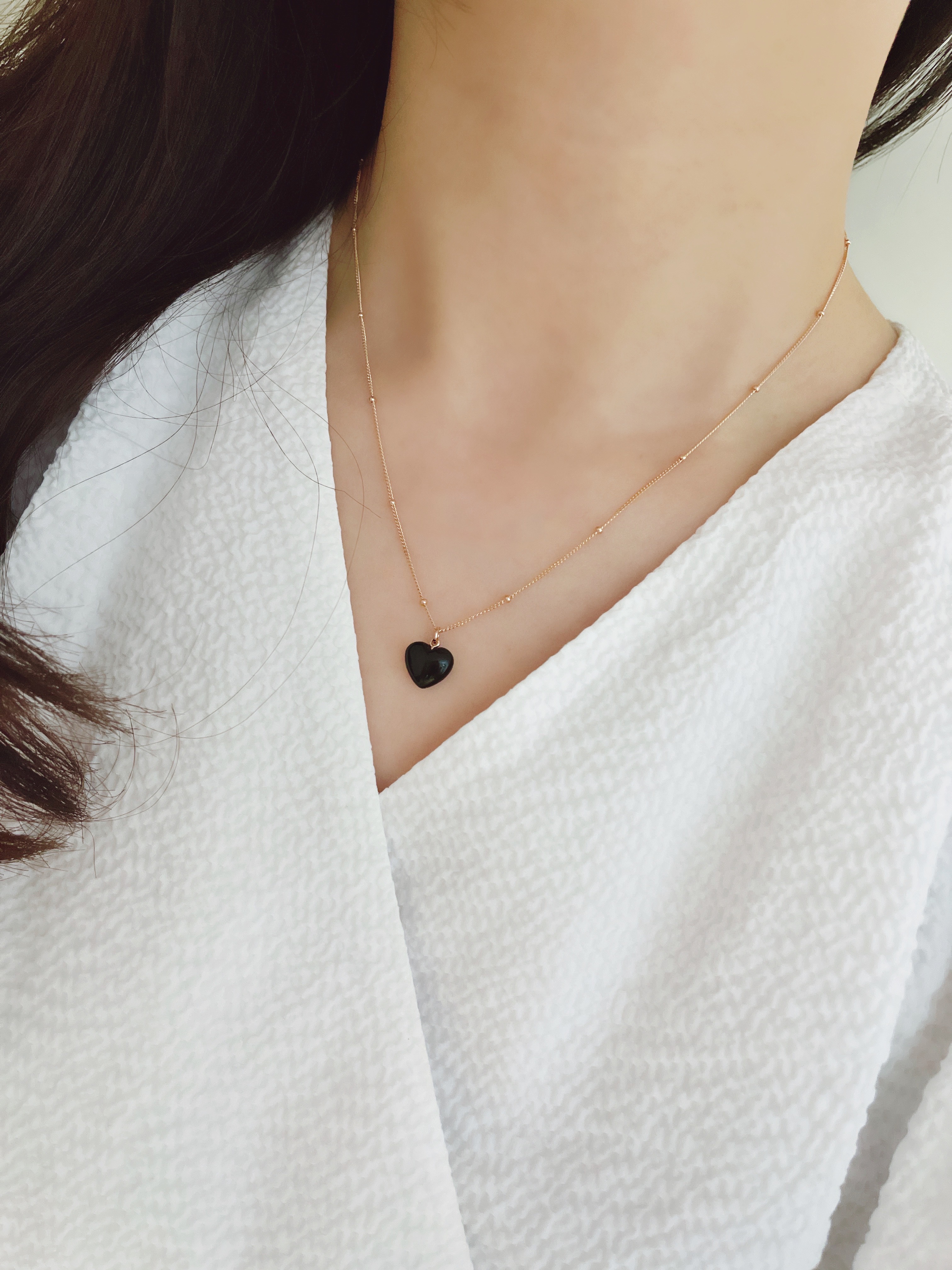 하트 오브 젬 목걸이는 3가지 스톤 옵션 (자개, 오닉스, 터키석) 중 선택 가능합니다 :-)