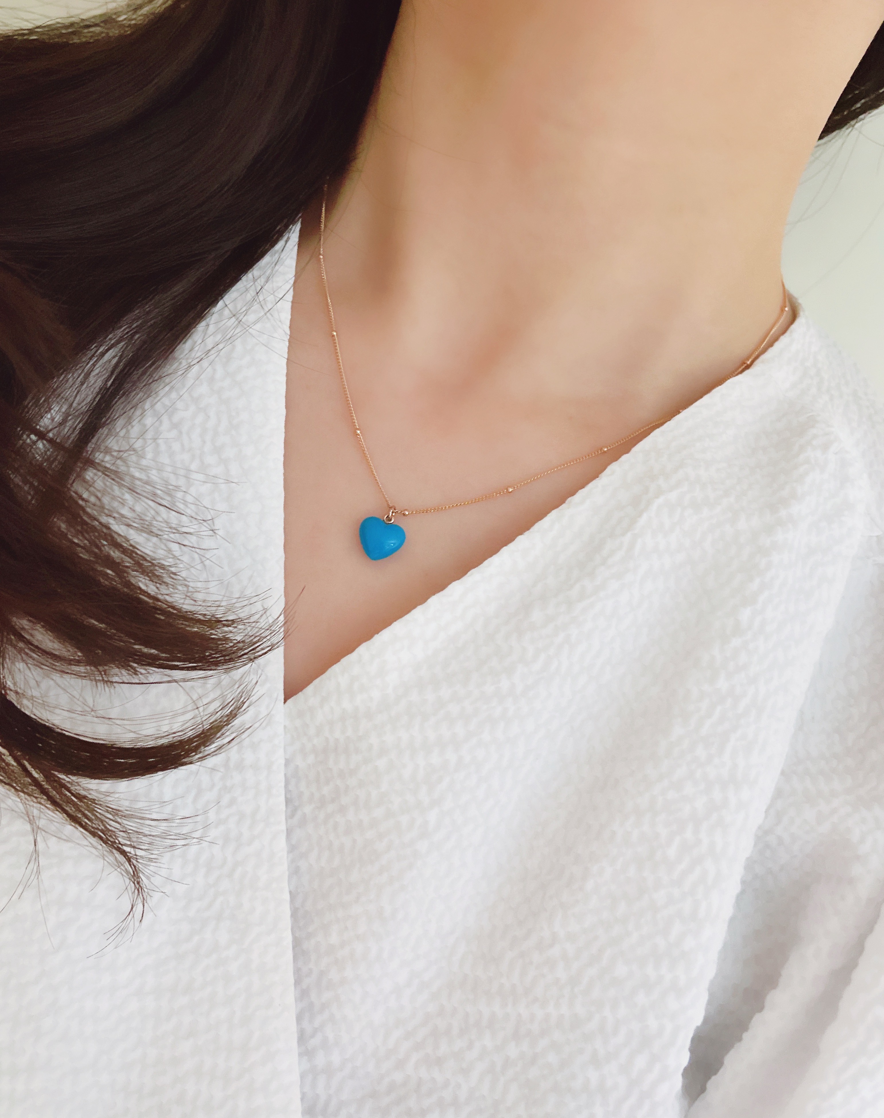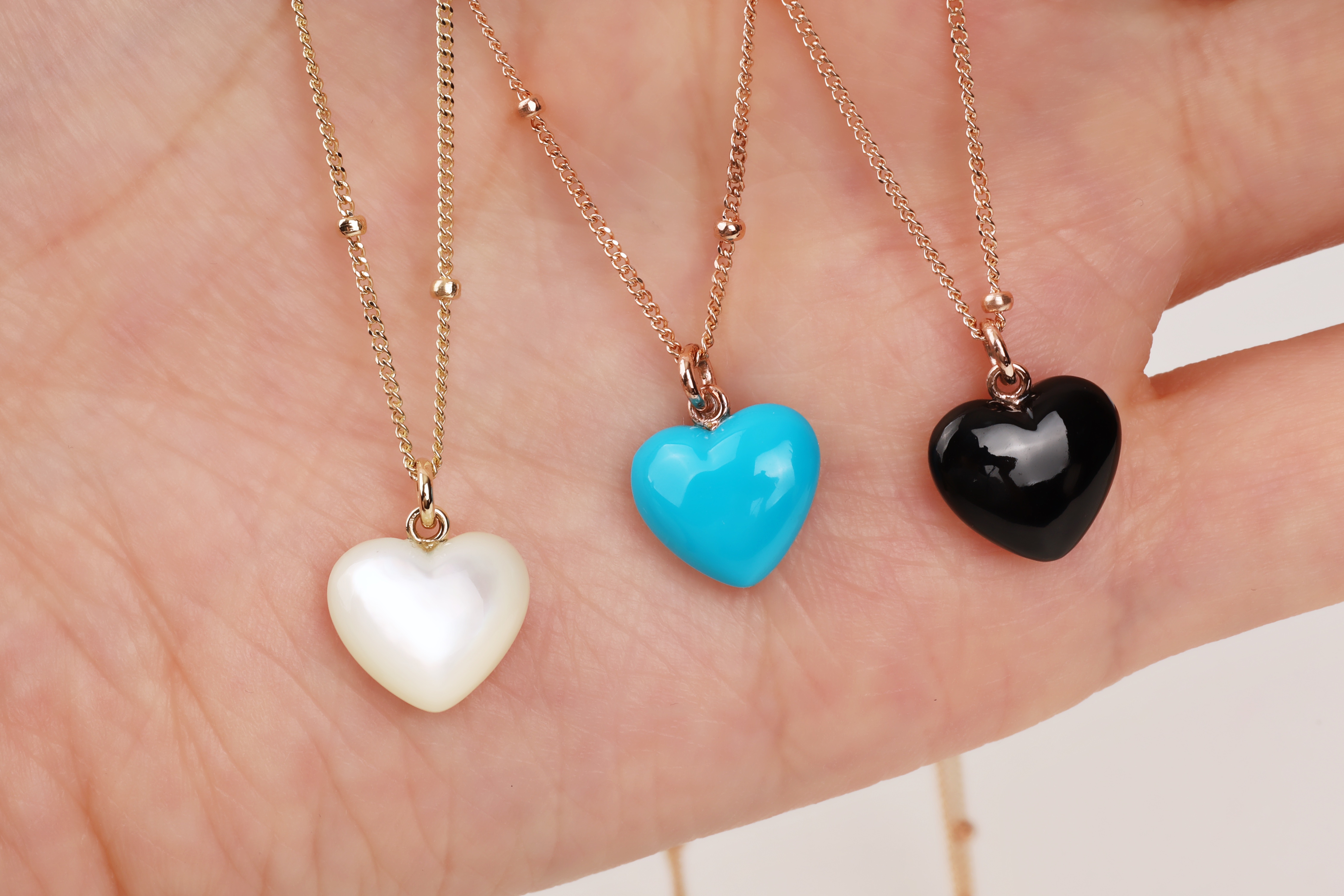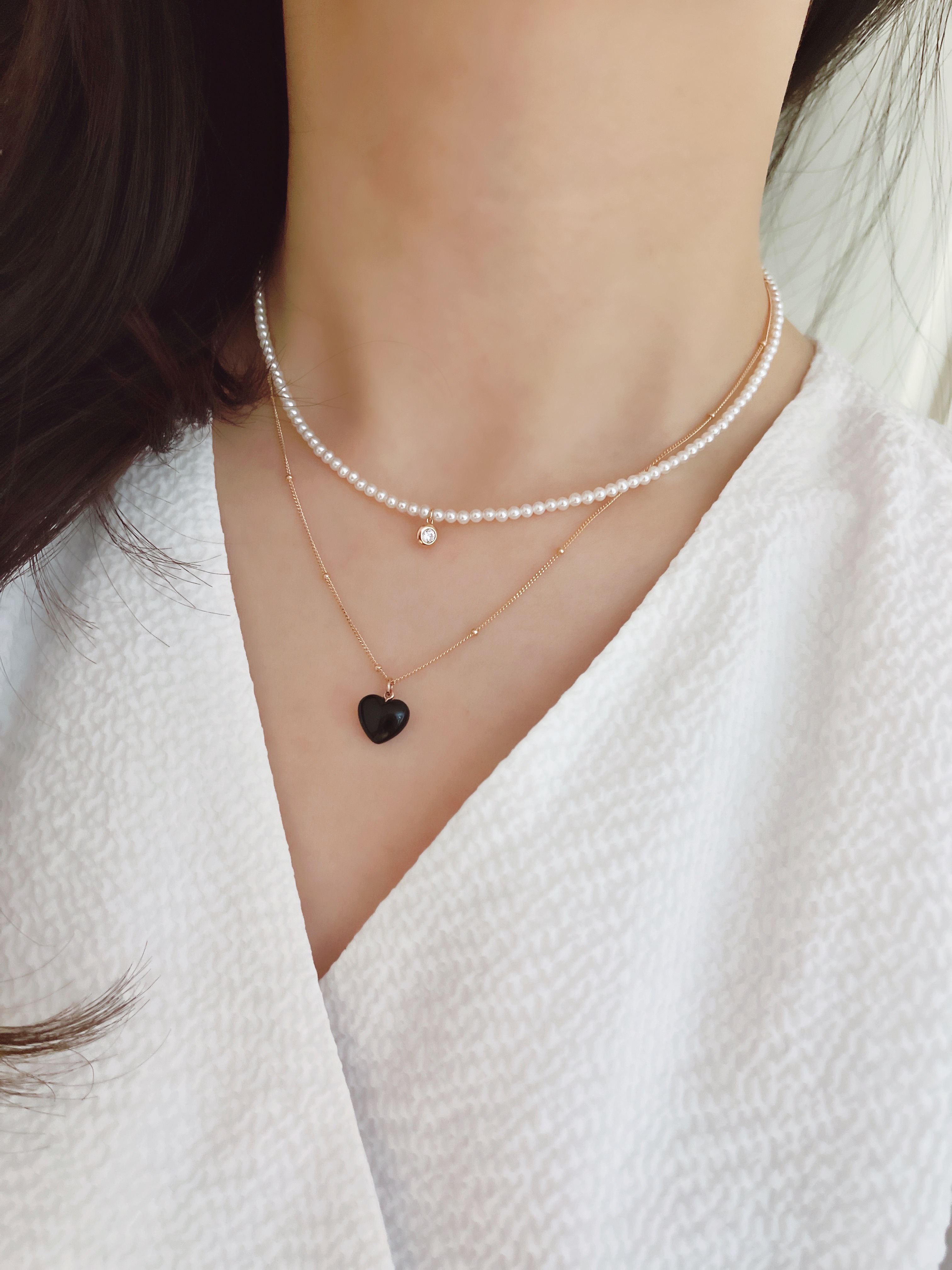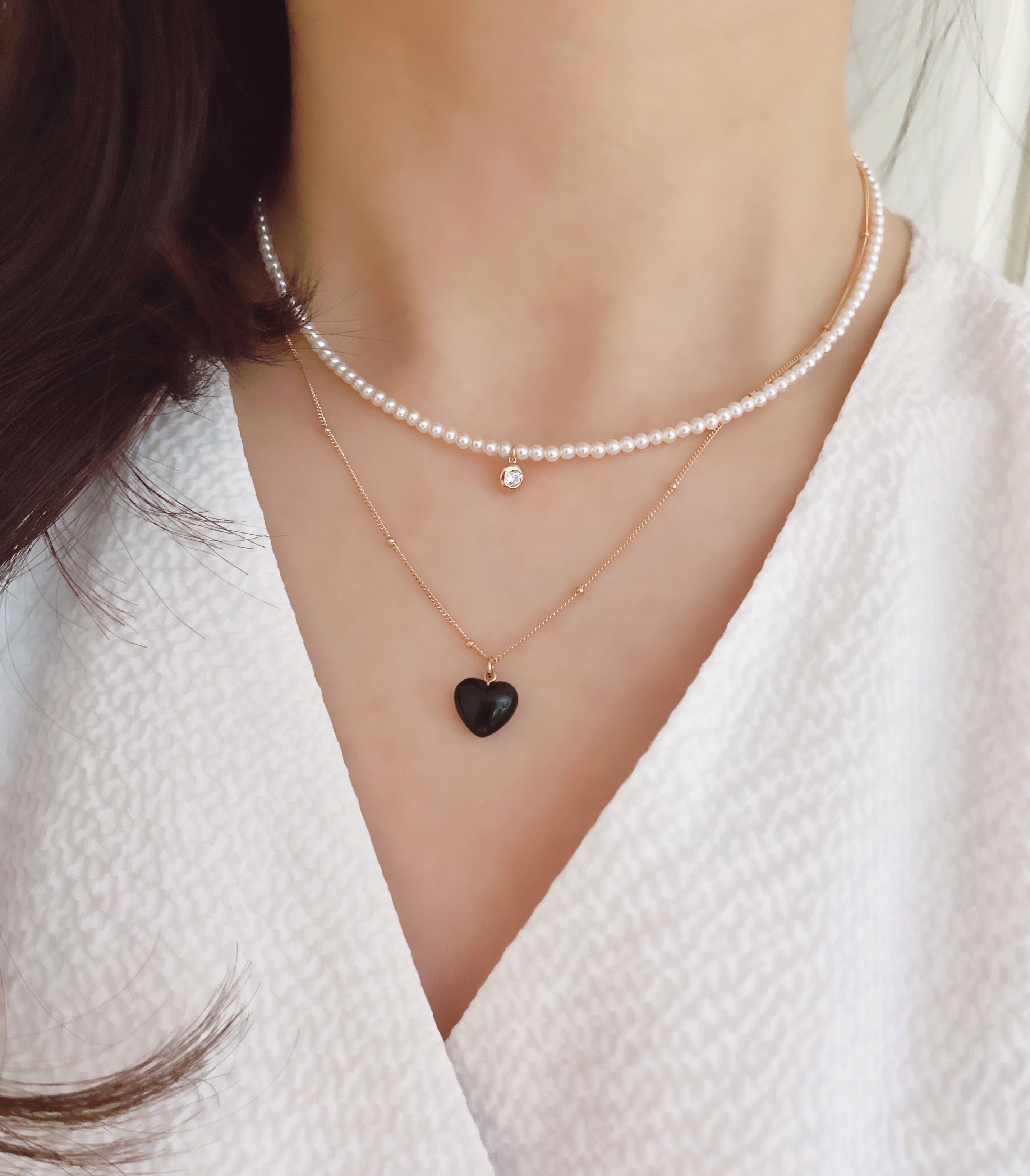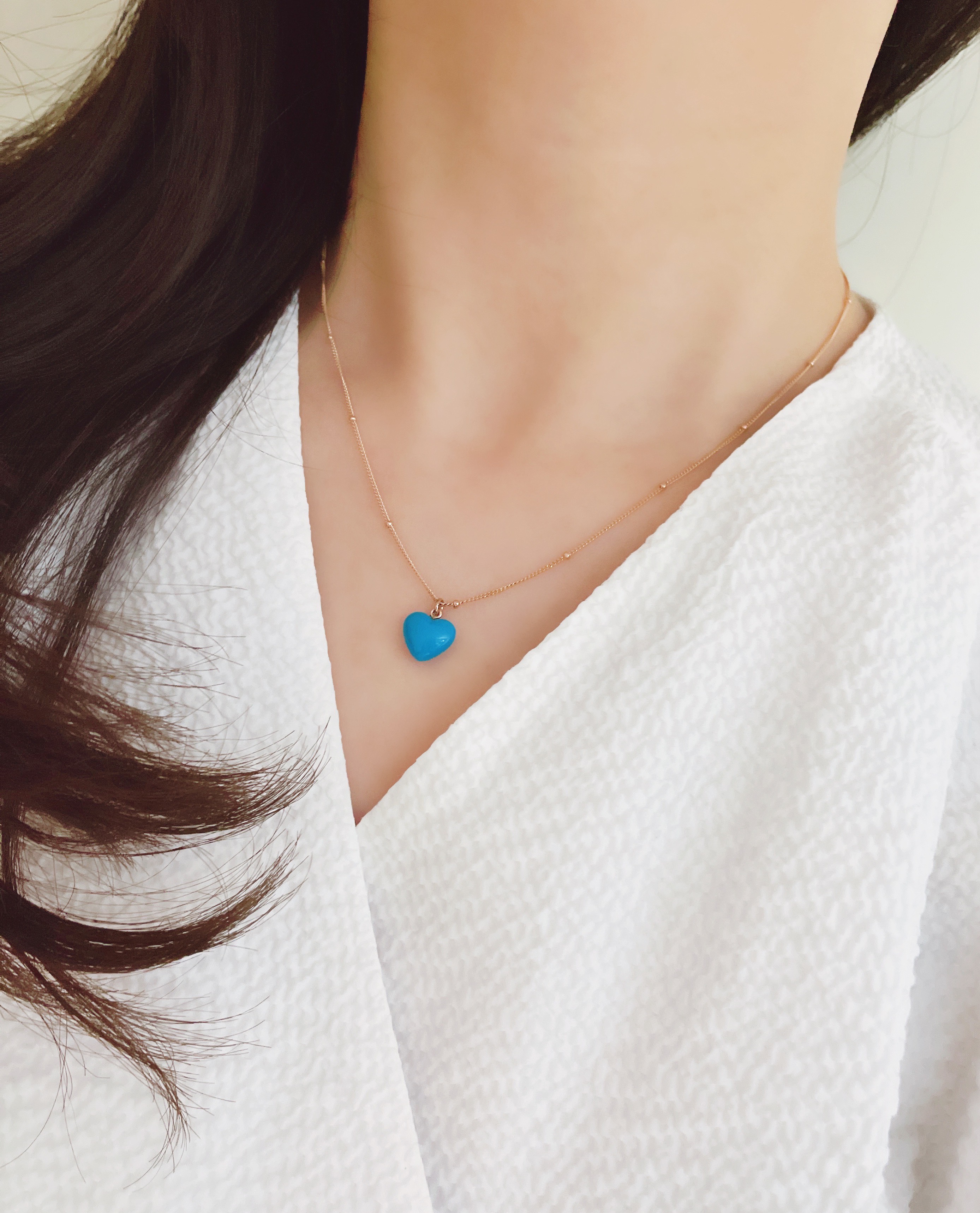 하트 오브 젬 목걸이는 3가지 스톤 옵션 (자개, 오닉스, 터키석) 중 선택 가능합니다 :-)