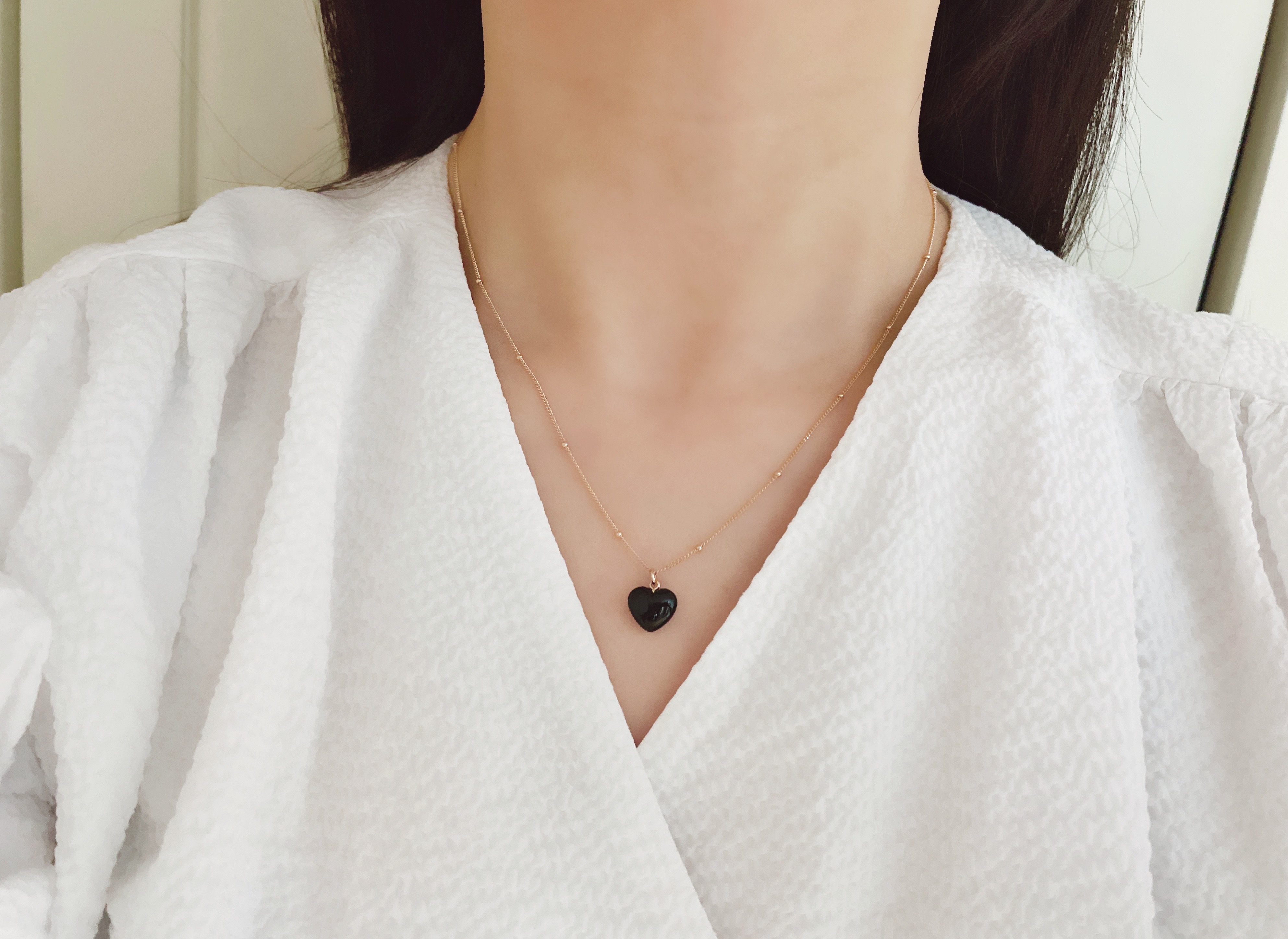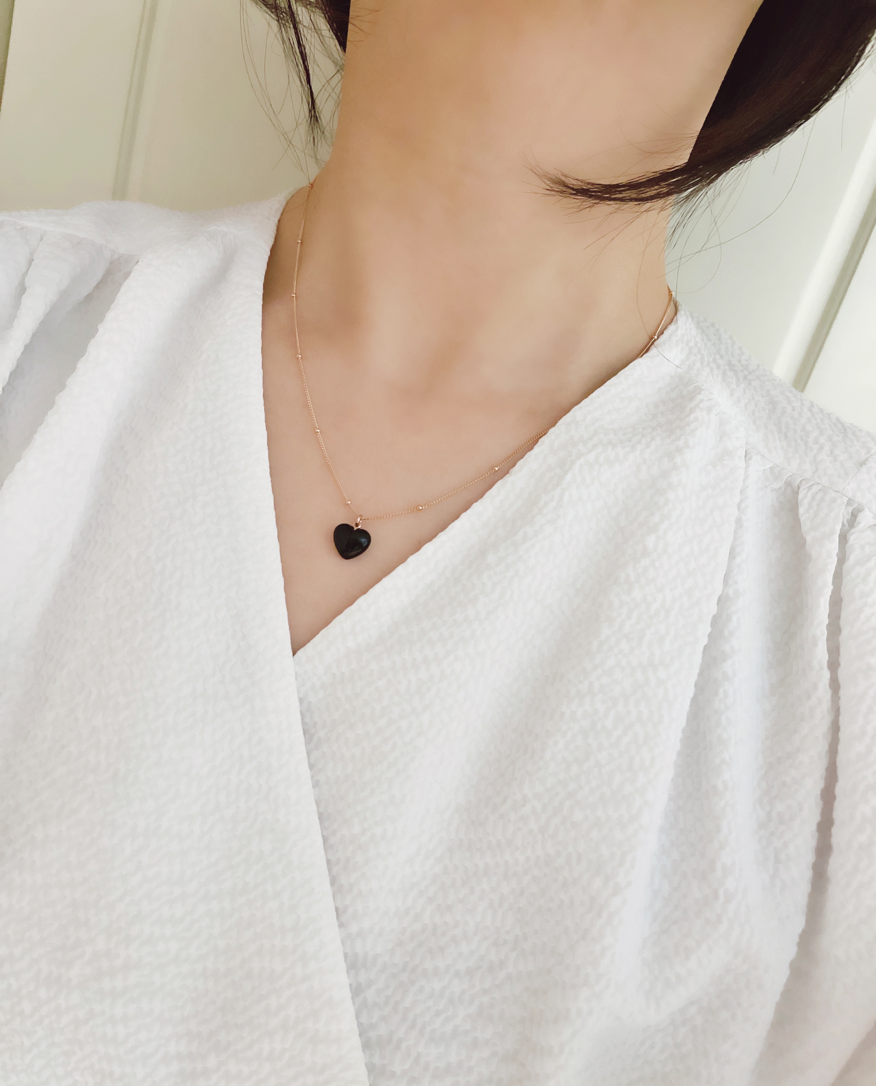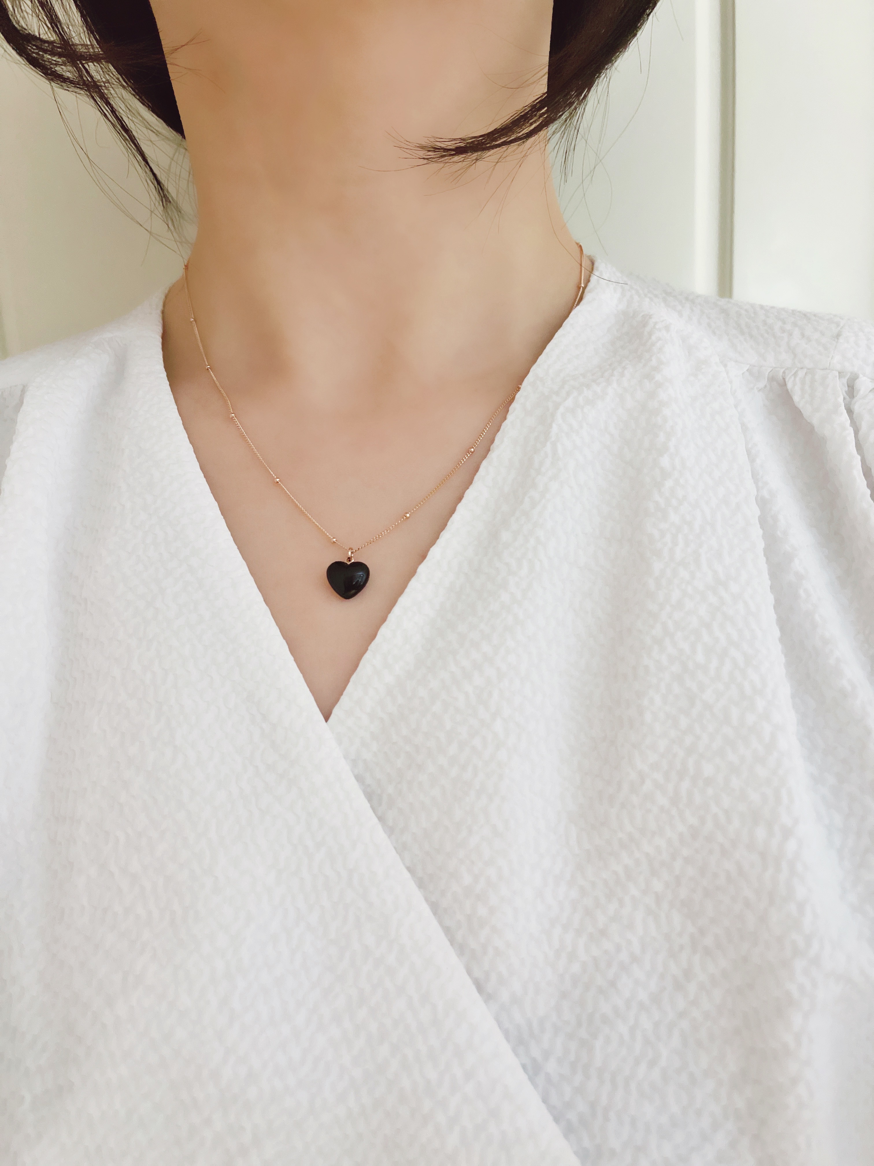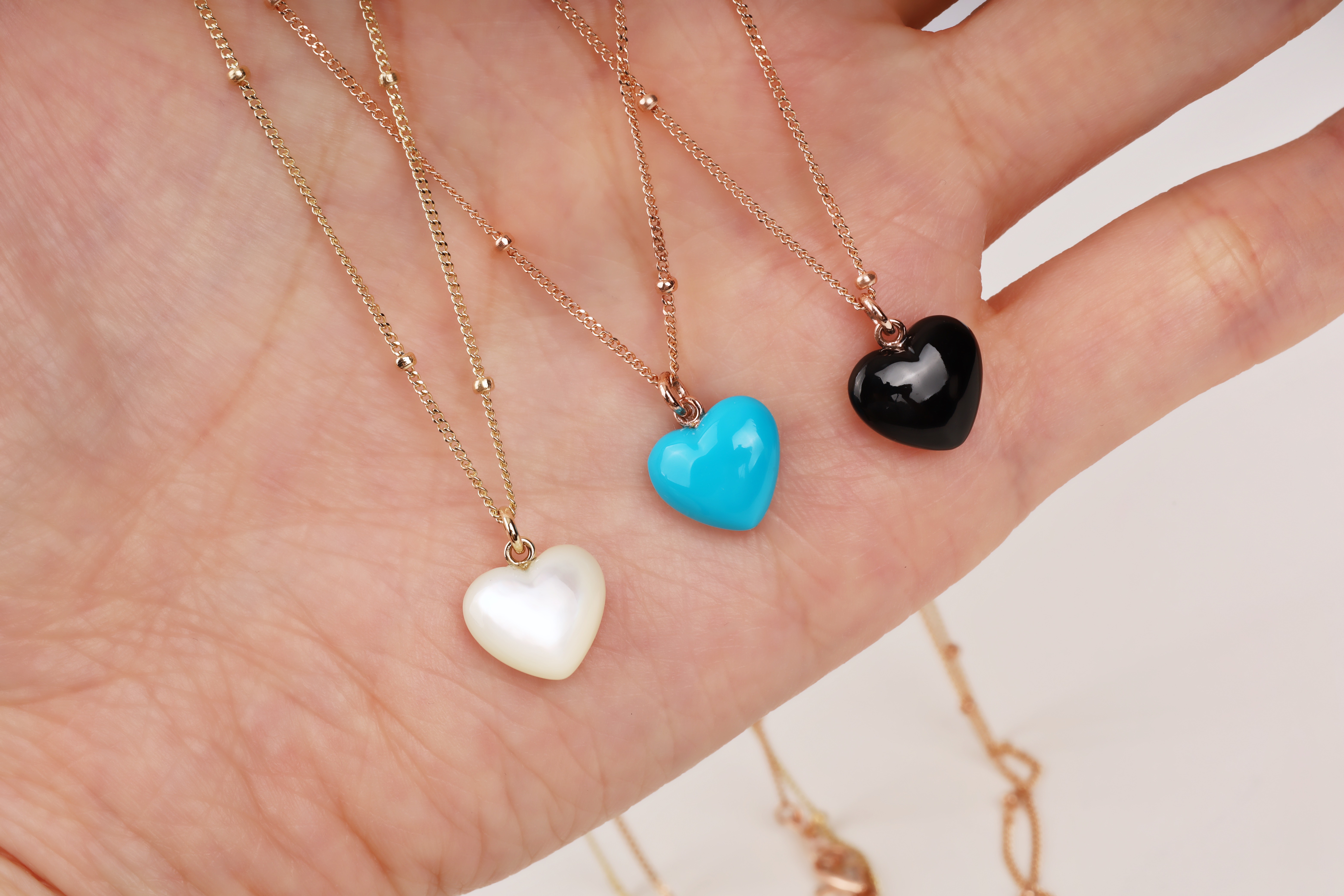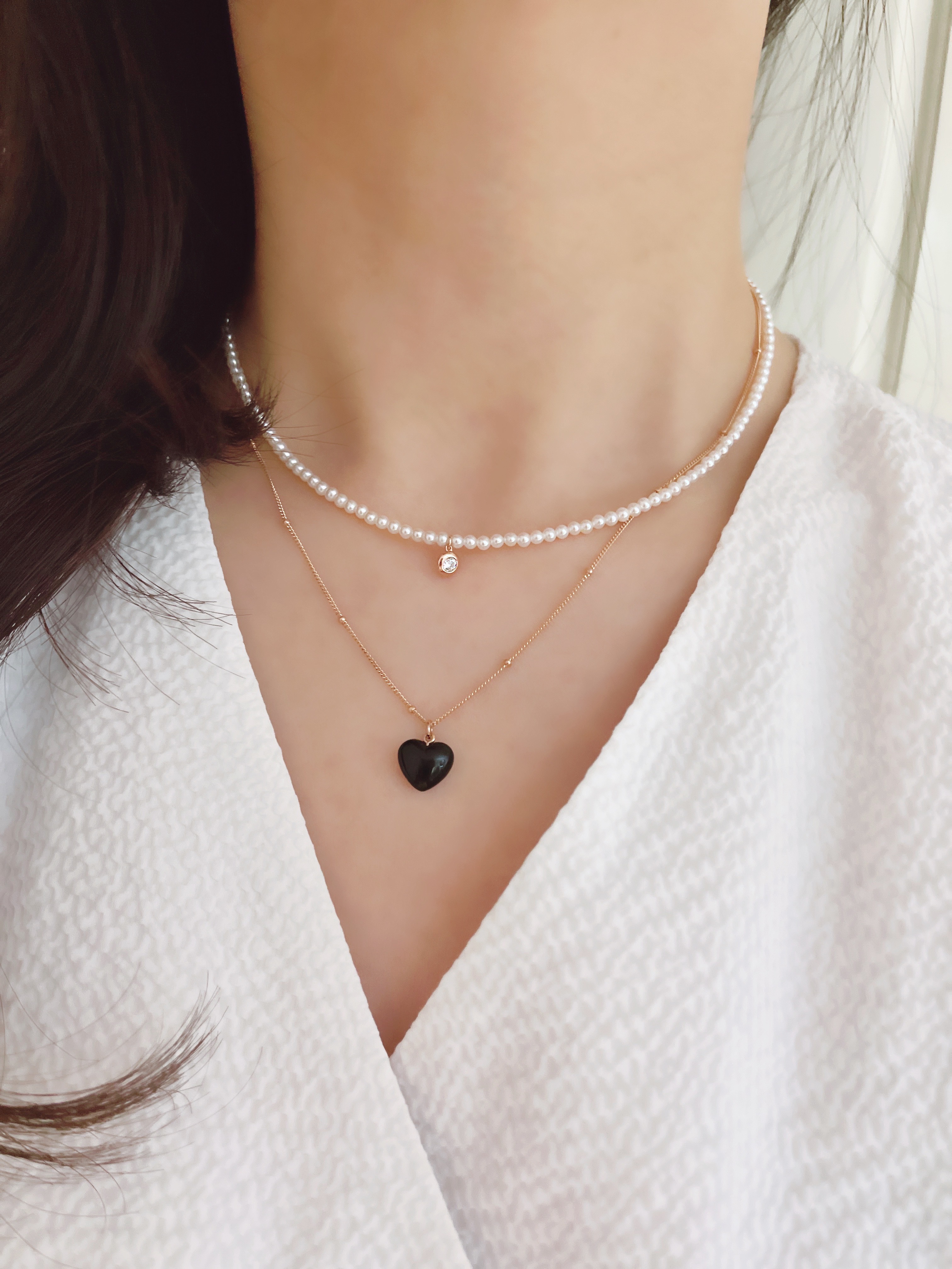하트 오브 젬 목걸이는 3가지 스톤 옵션 (자개, 오닉스, 터키석) 중 선택 가능합니다 :-)