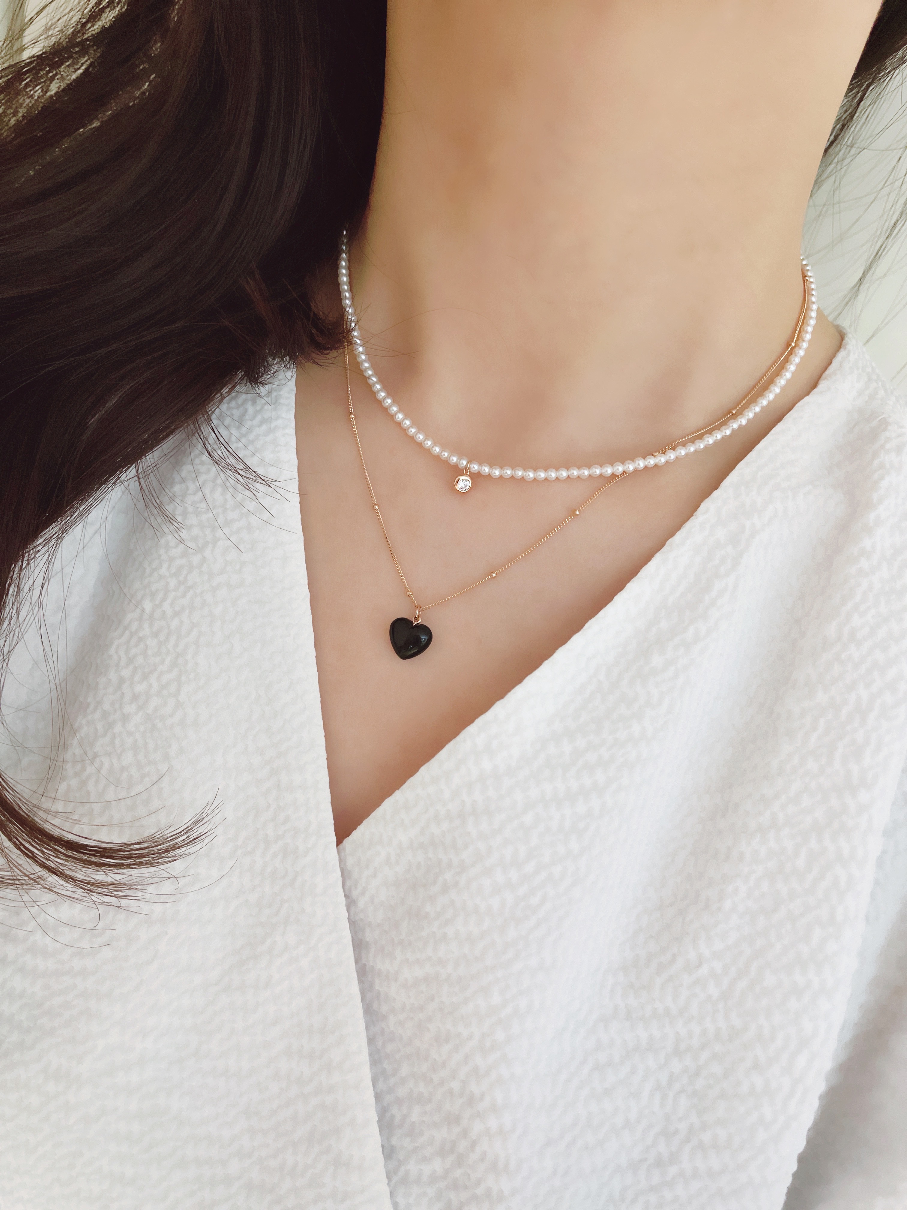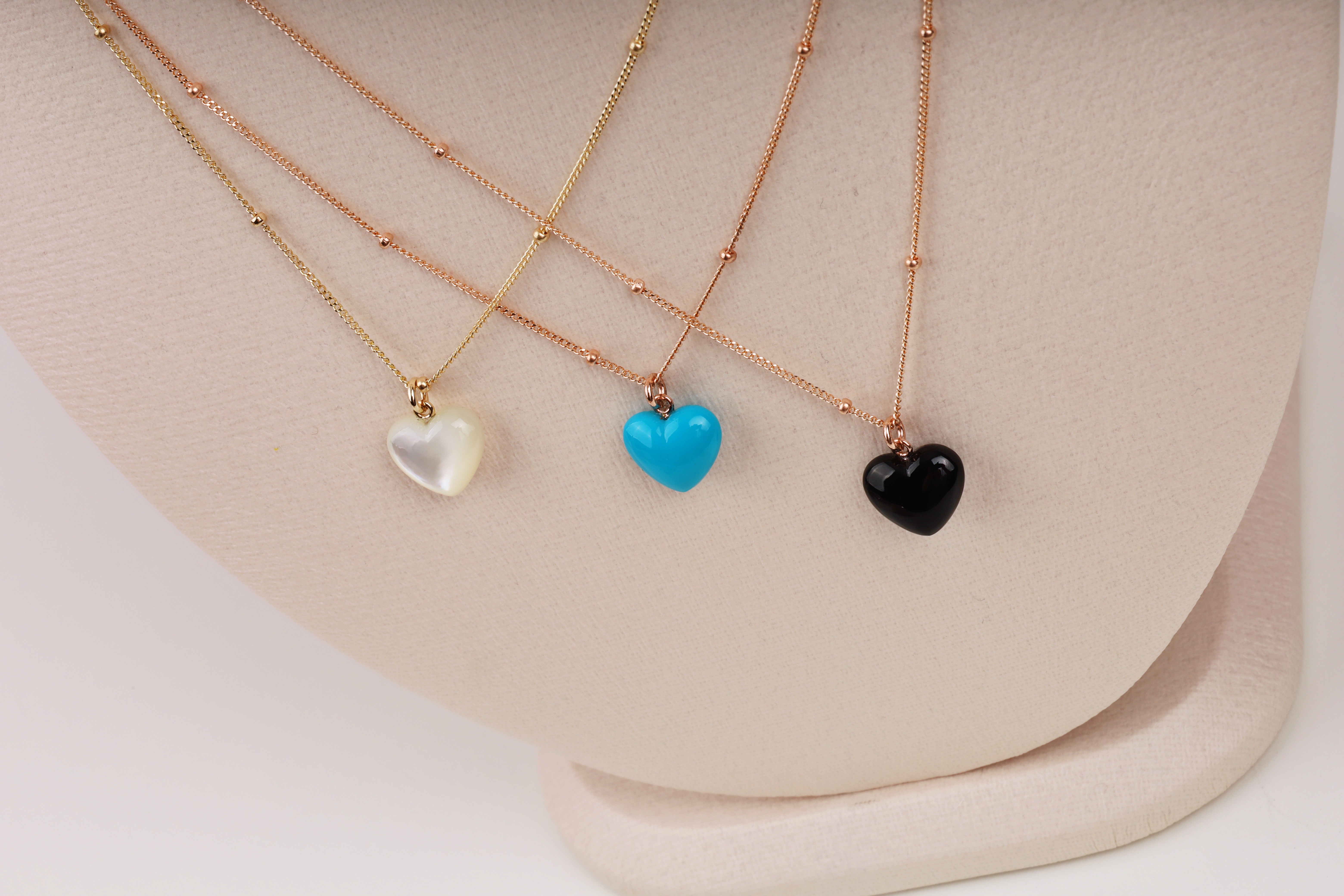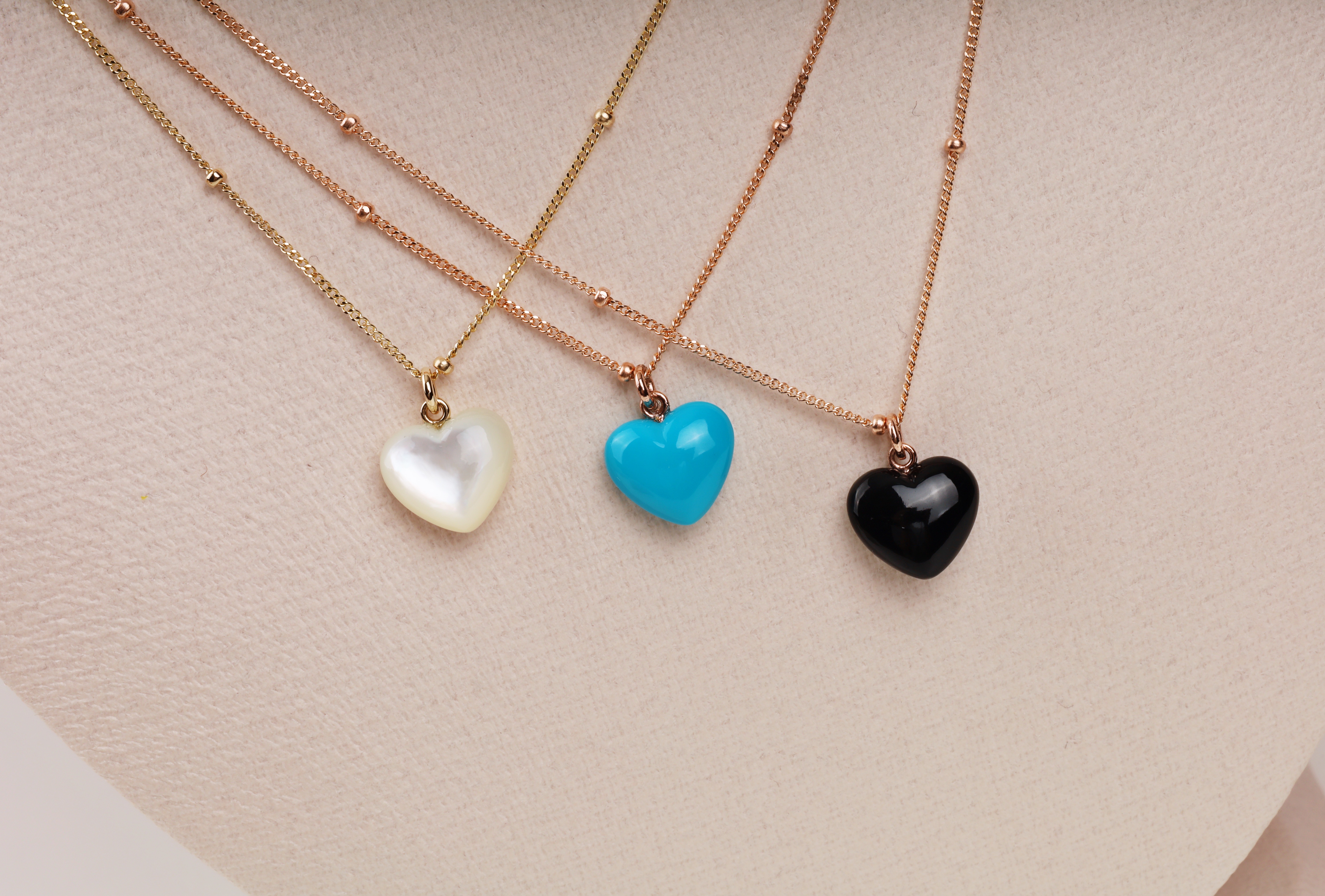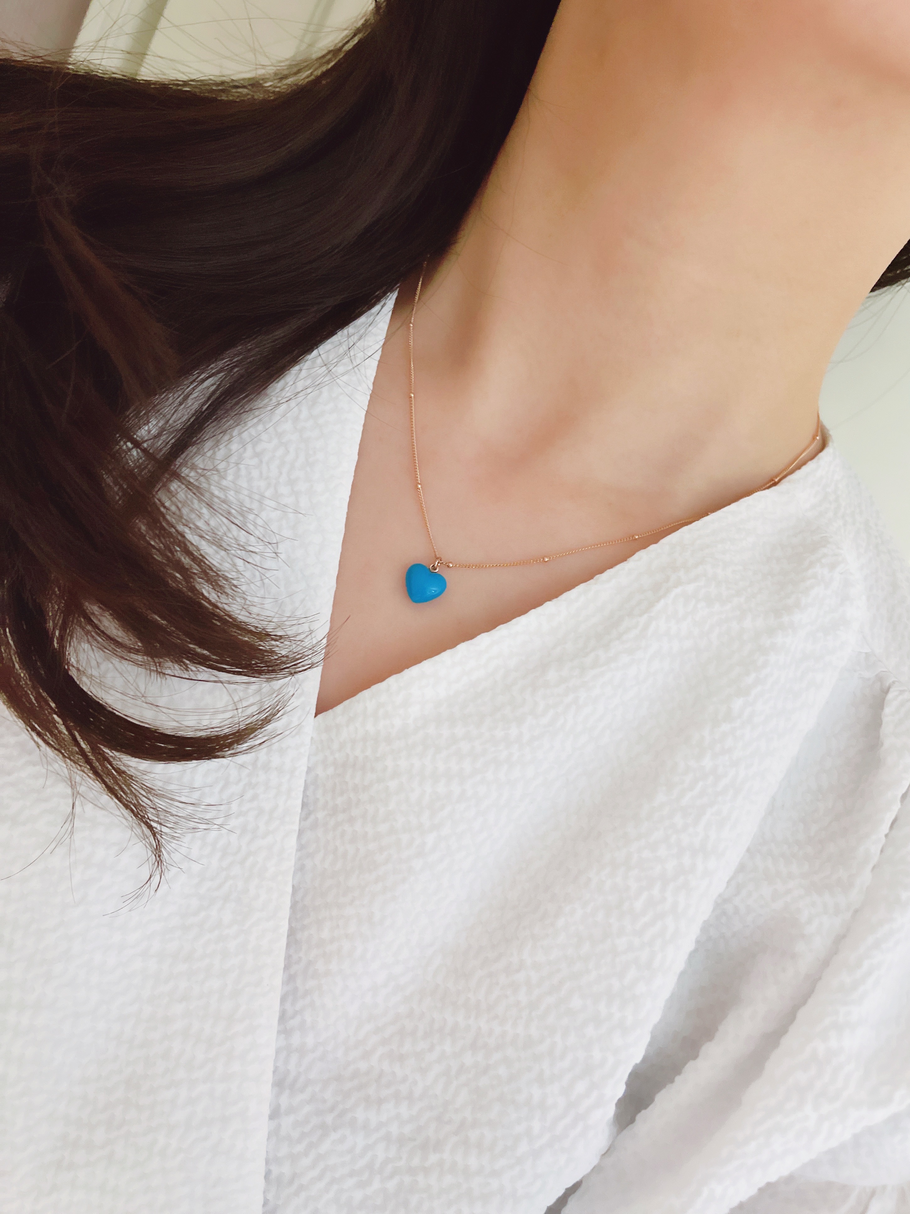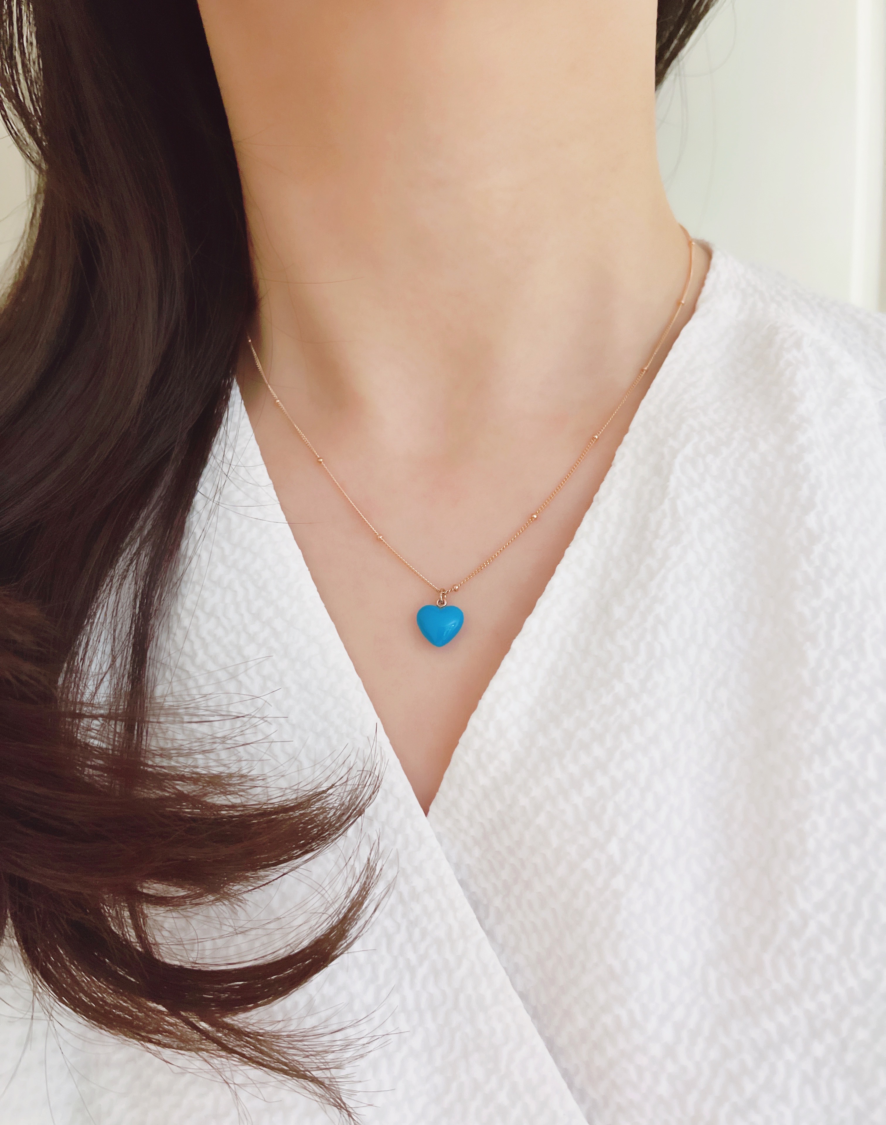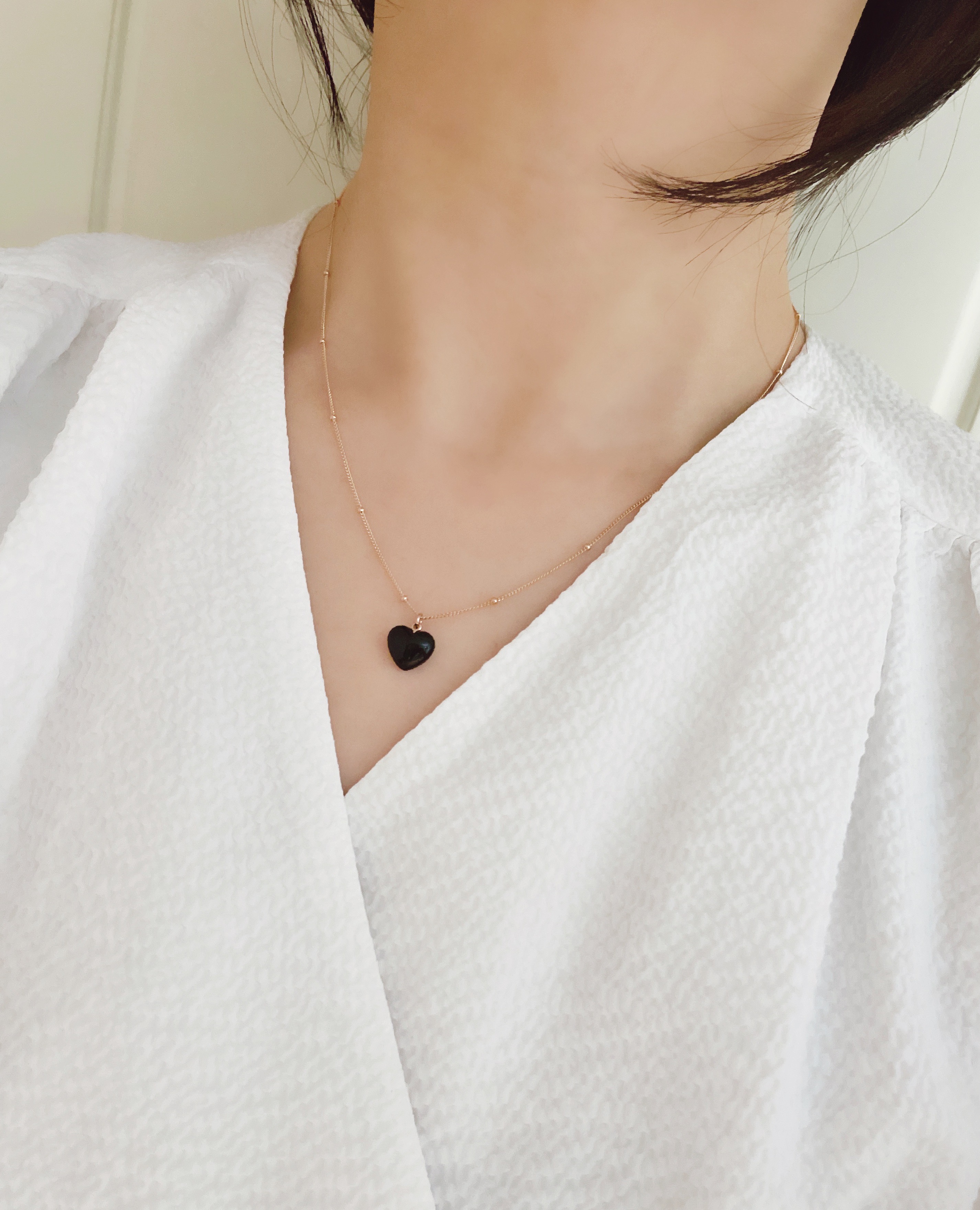 하트 오브 젬 목걸이는 3가지 스톤 옵션 (자개, 오닉스, 터키석) 중 선택 가능합니다 :-)