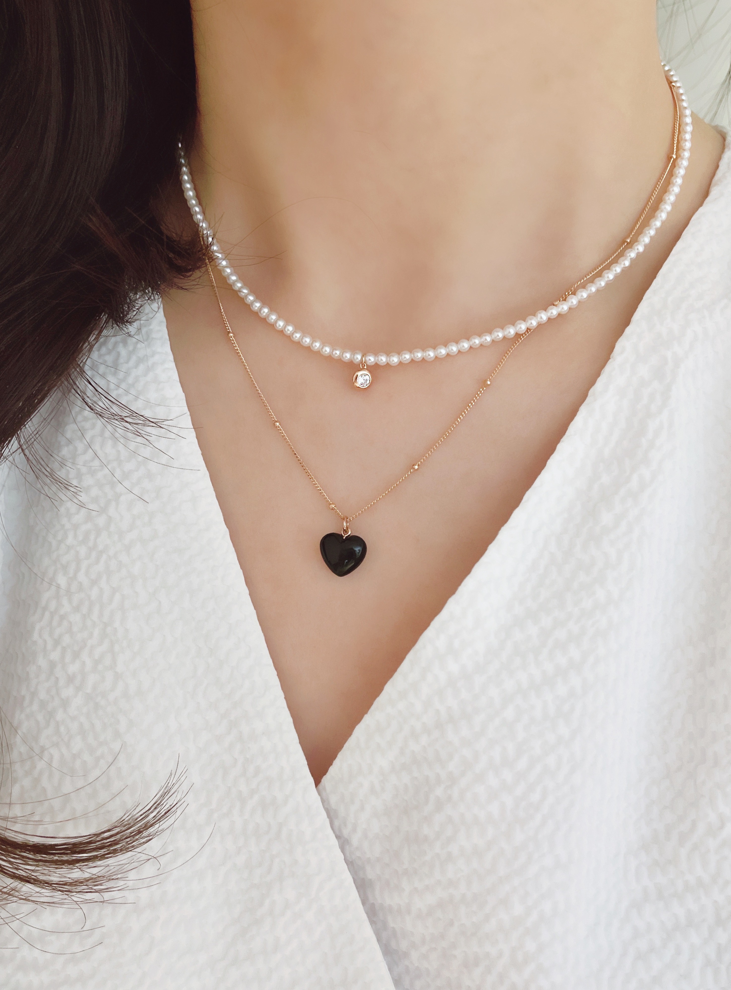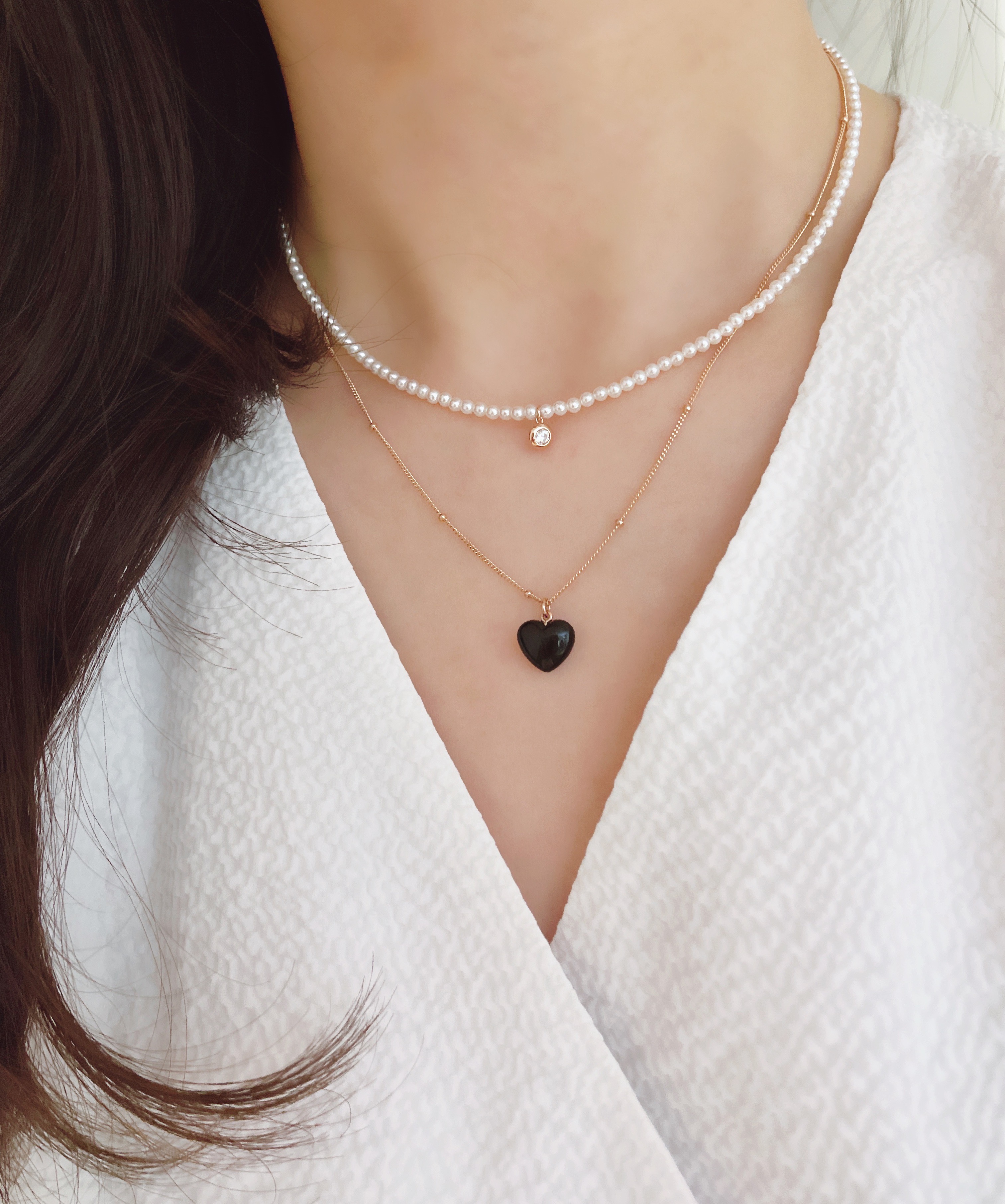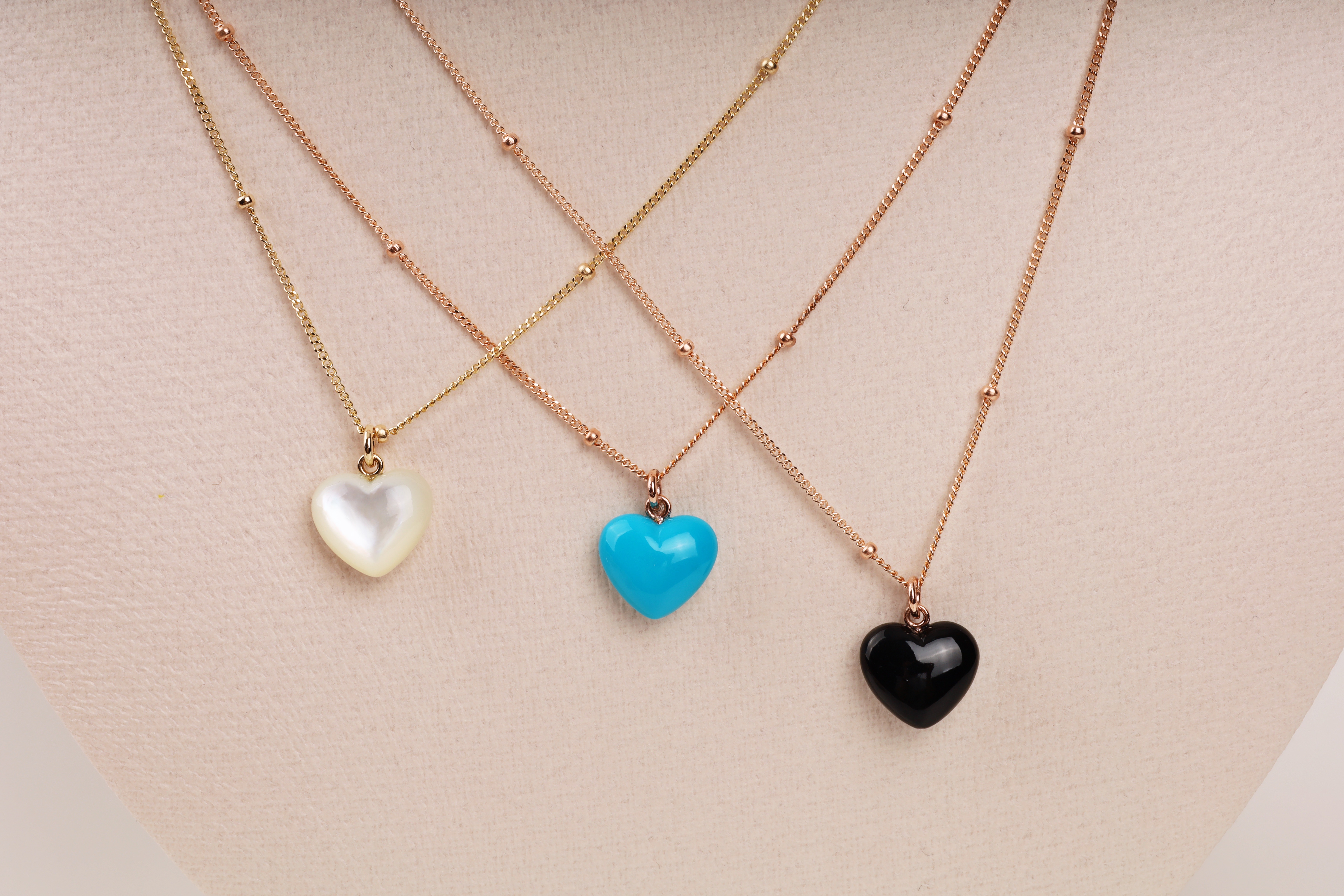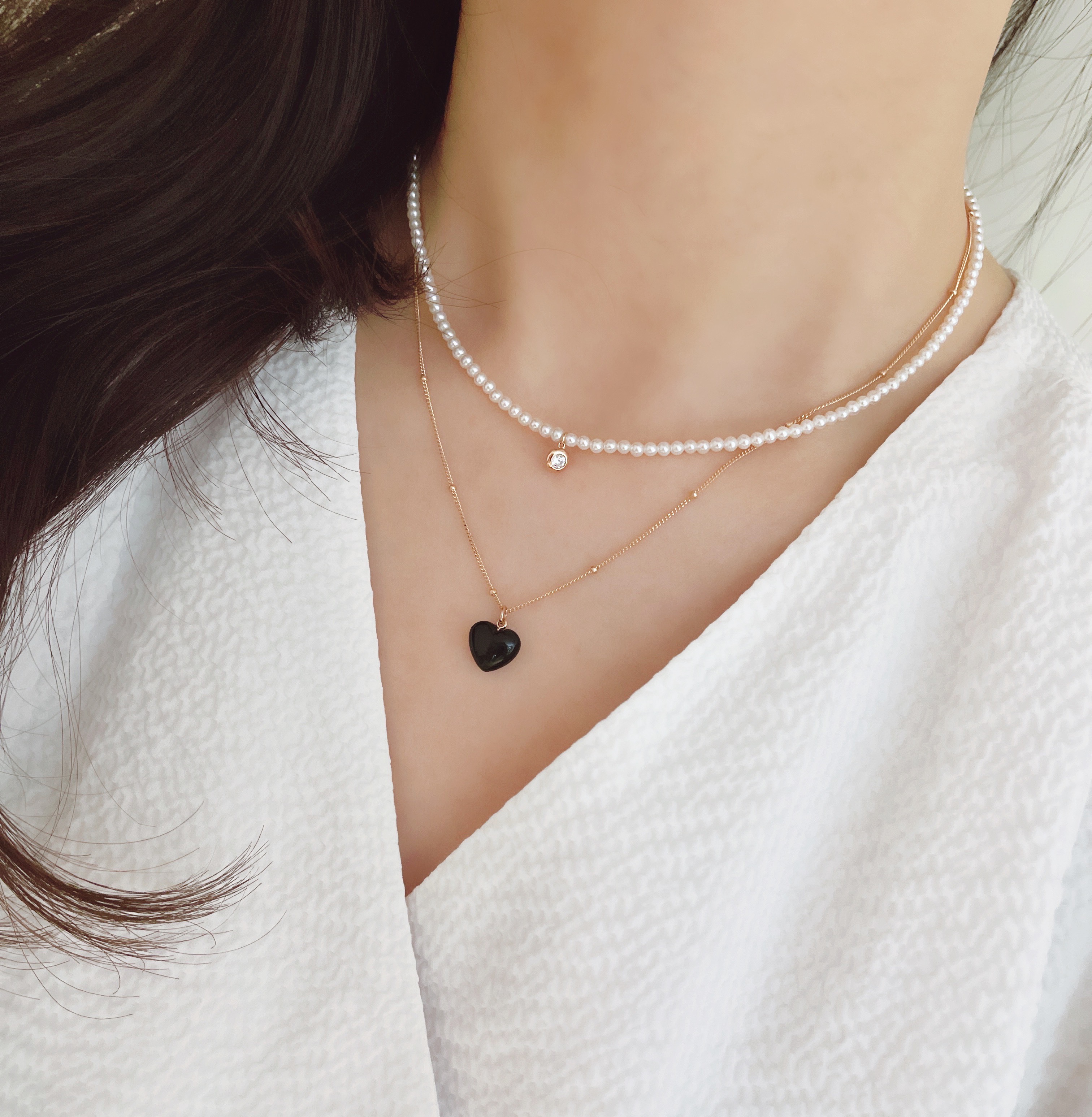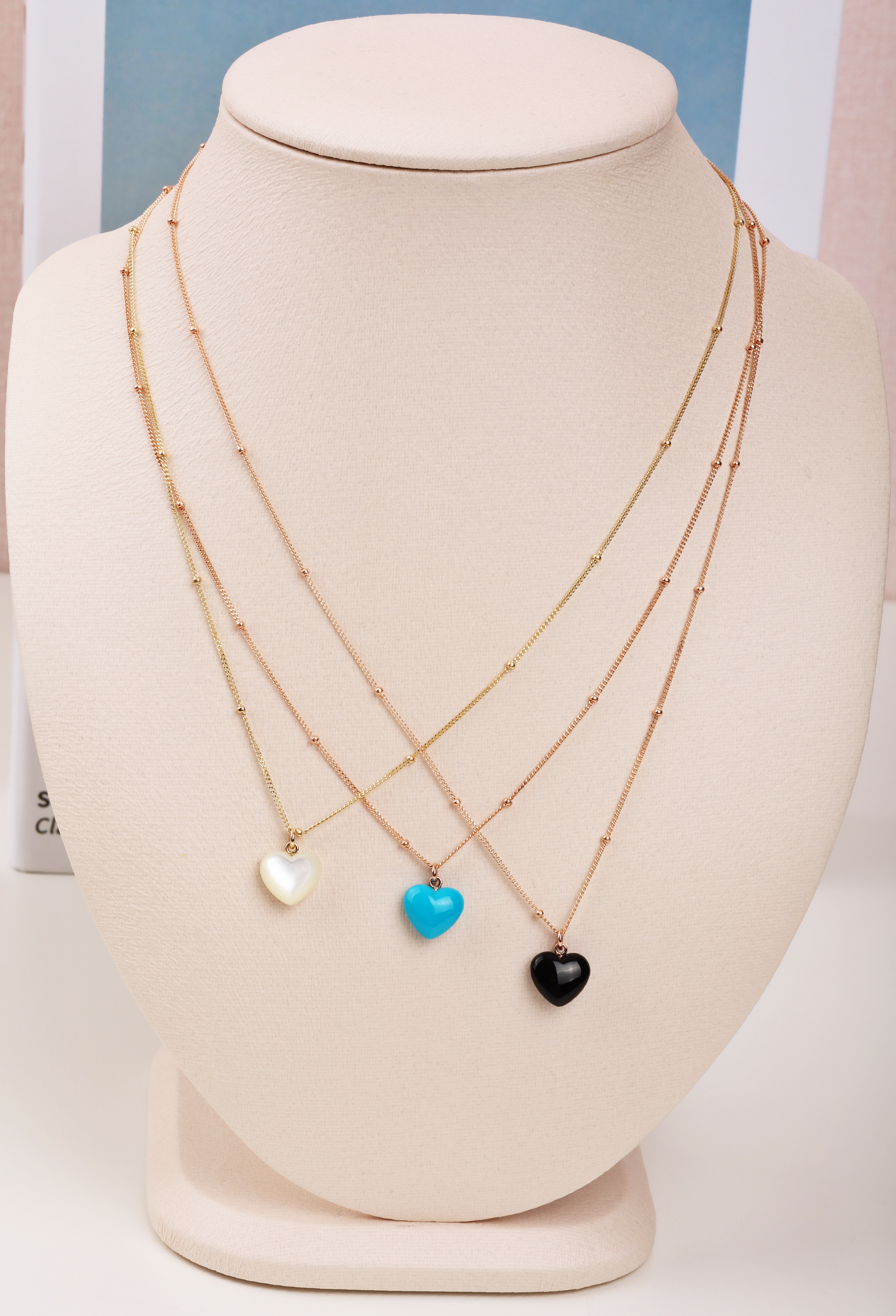 하트 오브 젬 목걸이는 3가지 스톤 옵션 (자개, 오닉스, 터키석) 중 선택 가능합니다 :-)