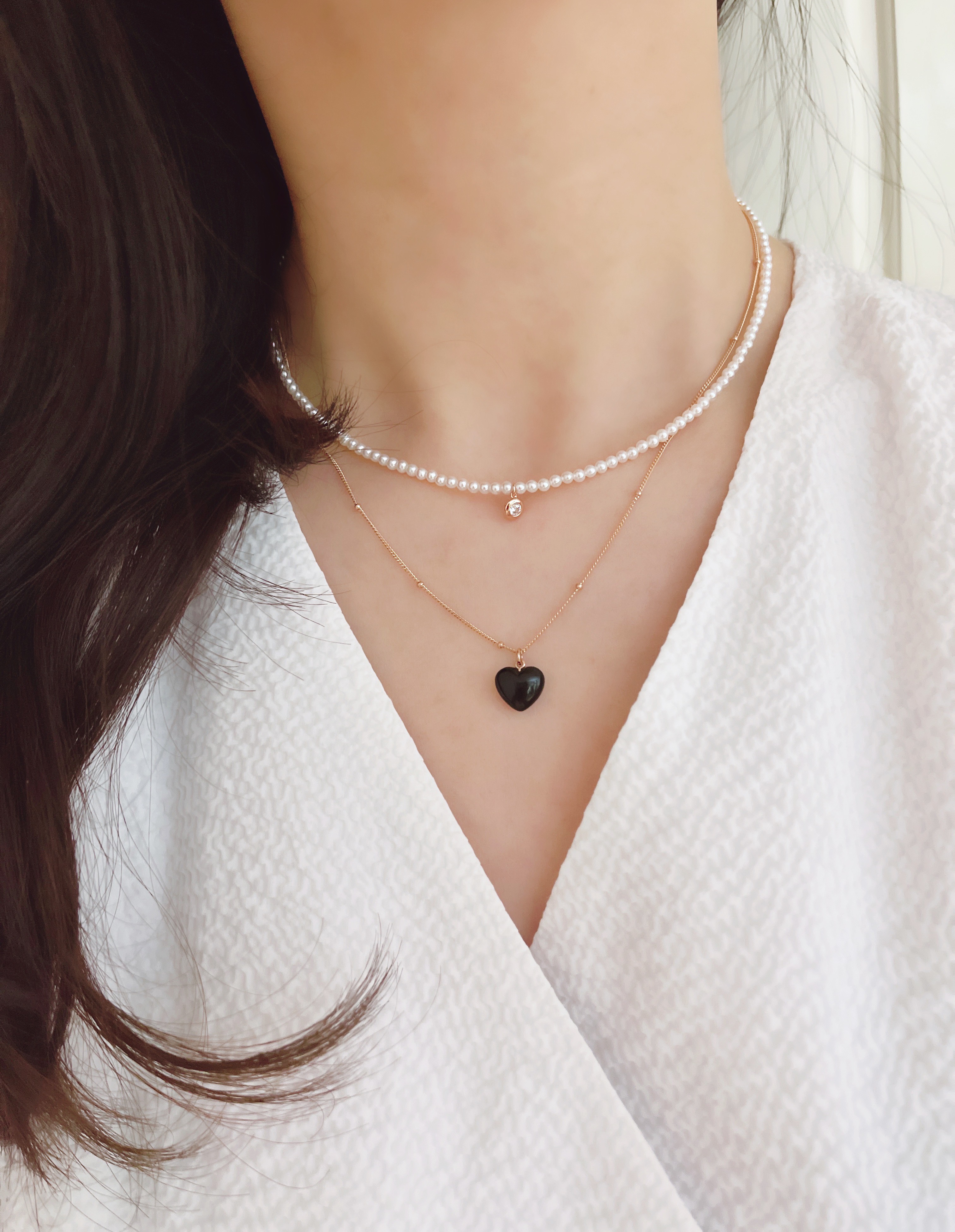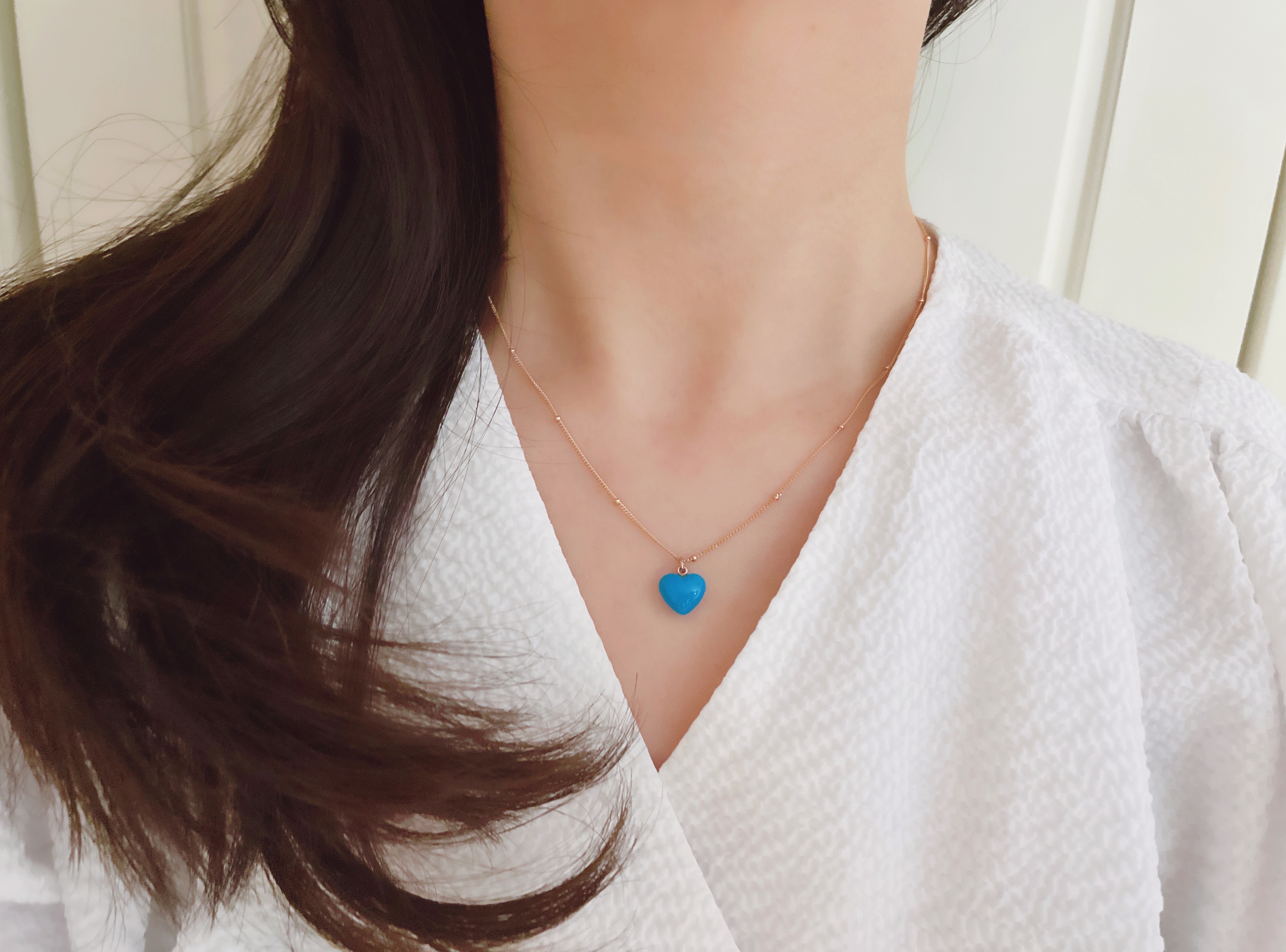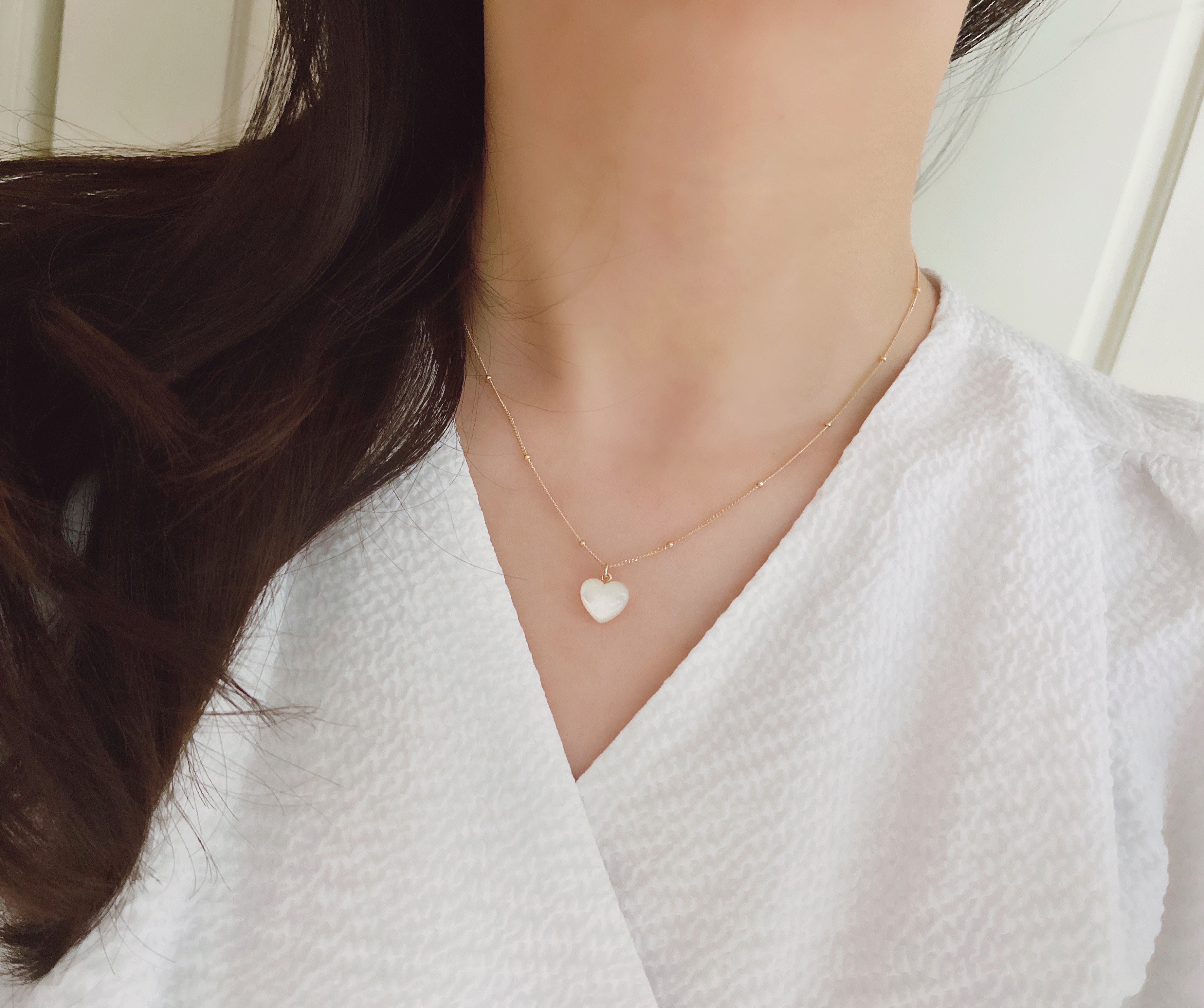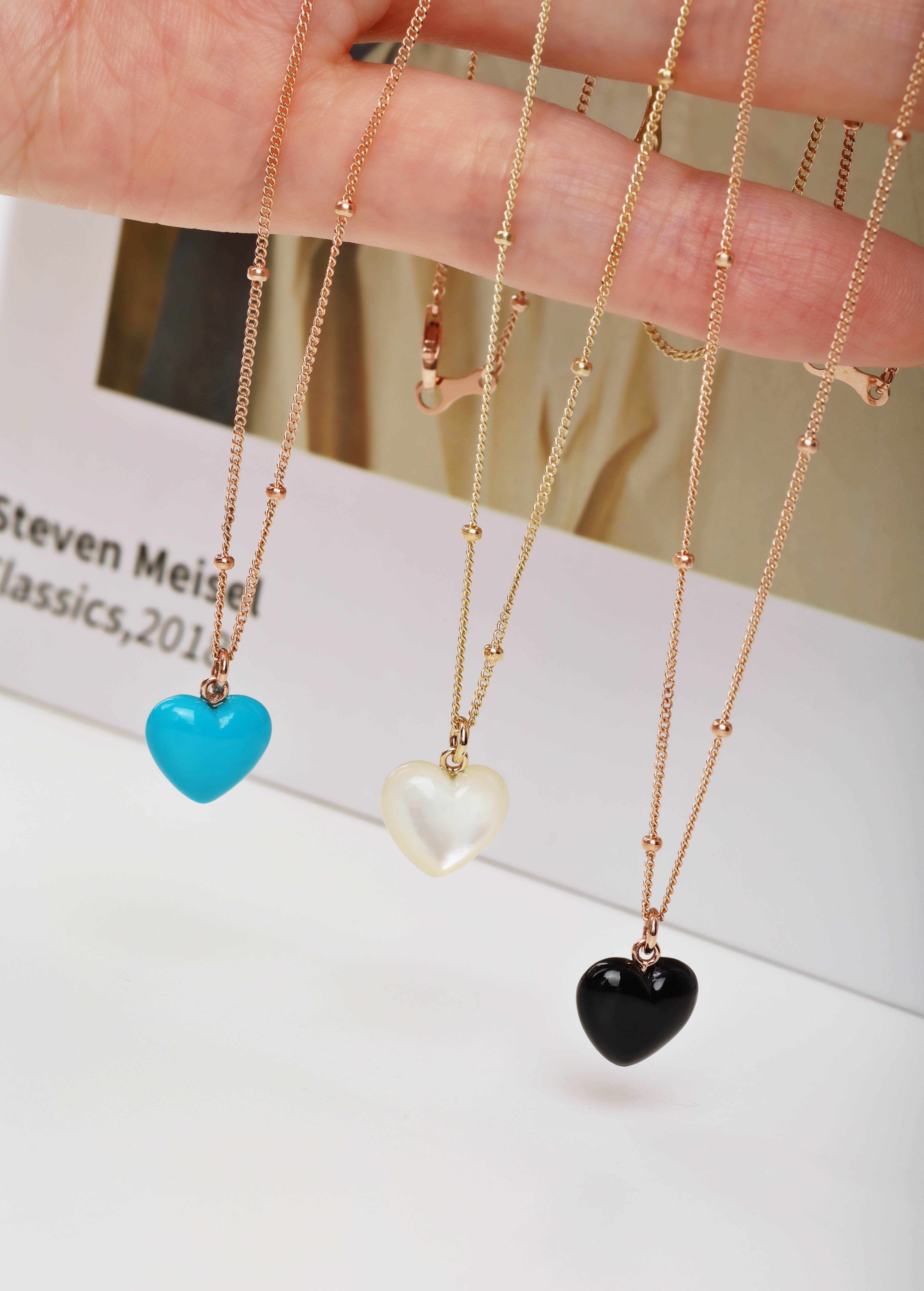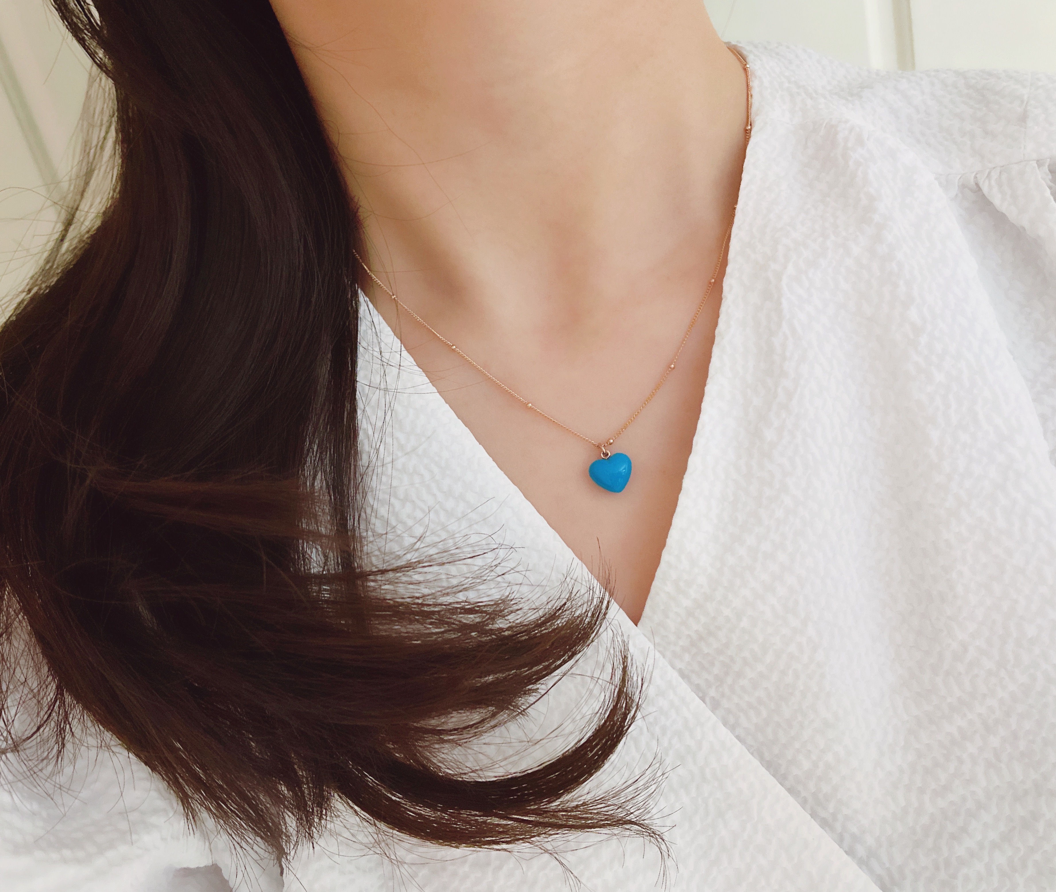 하트 오브 젬 목걸이는 3가지 스톤 옵션 (자개, 오닉스, 터키석) 중 선택 가능합니다 :-)