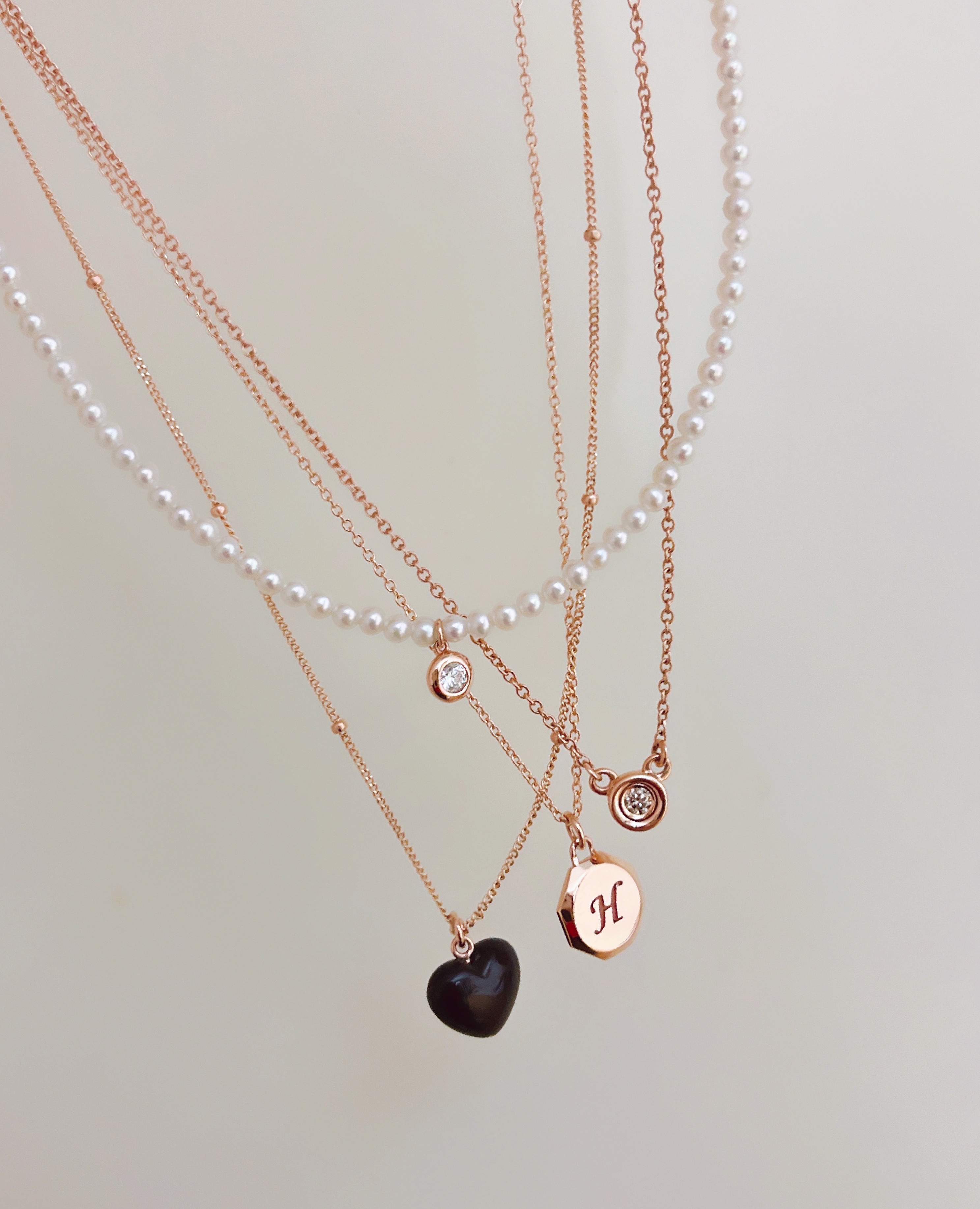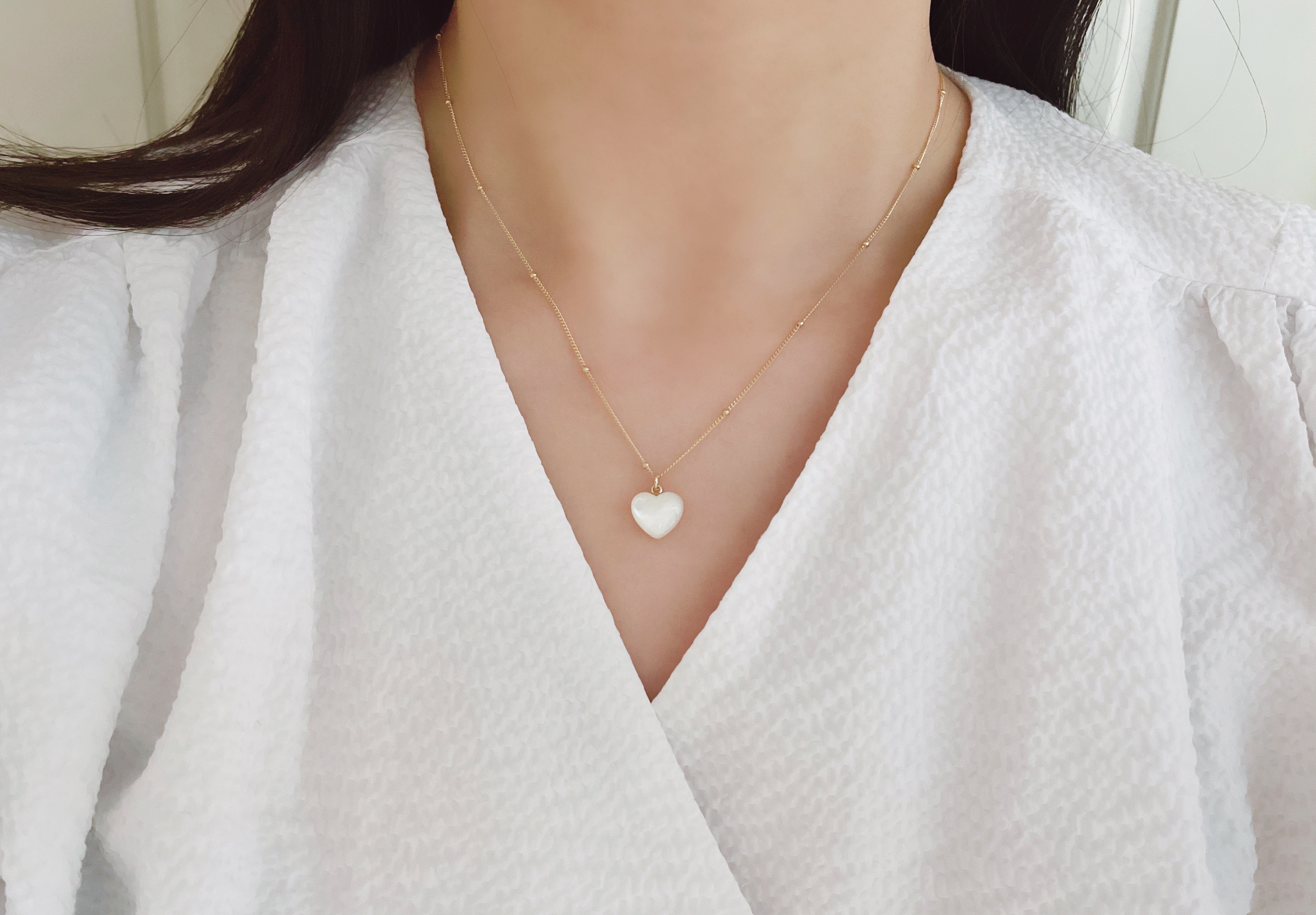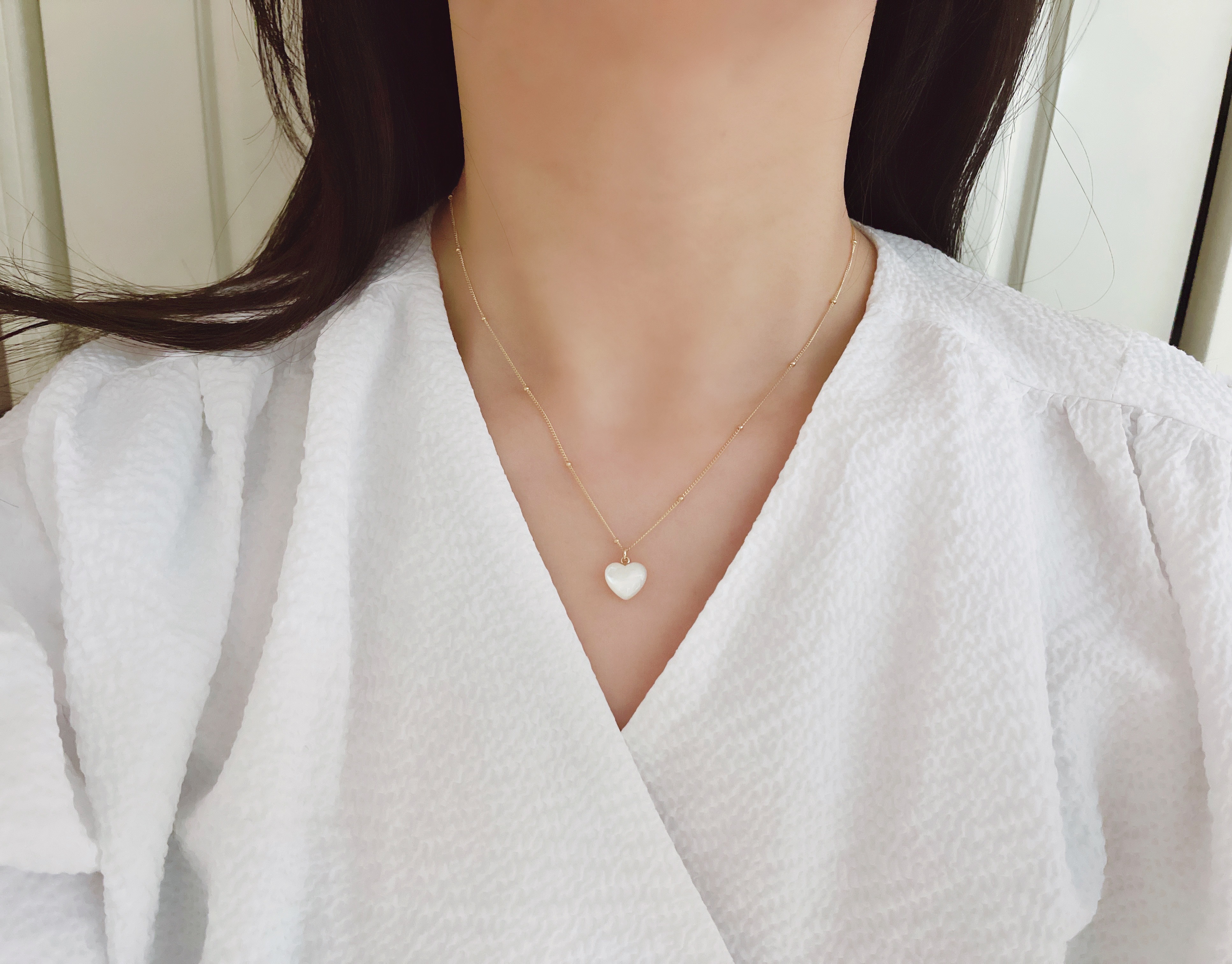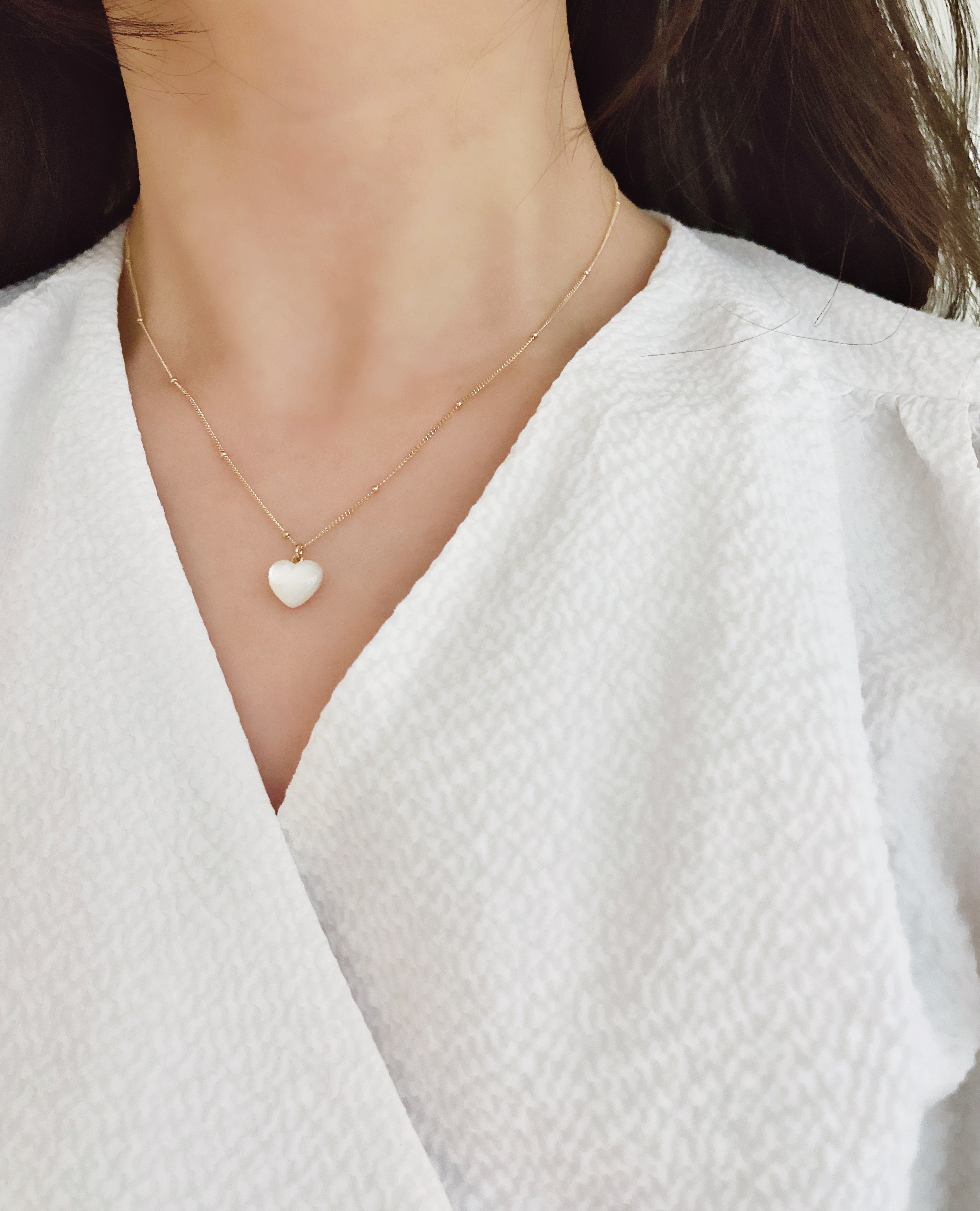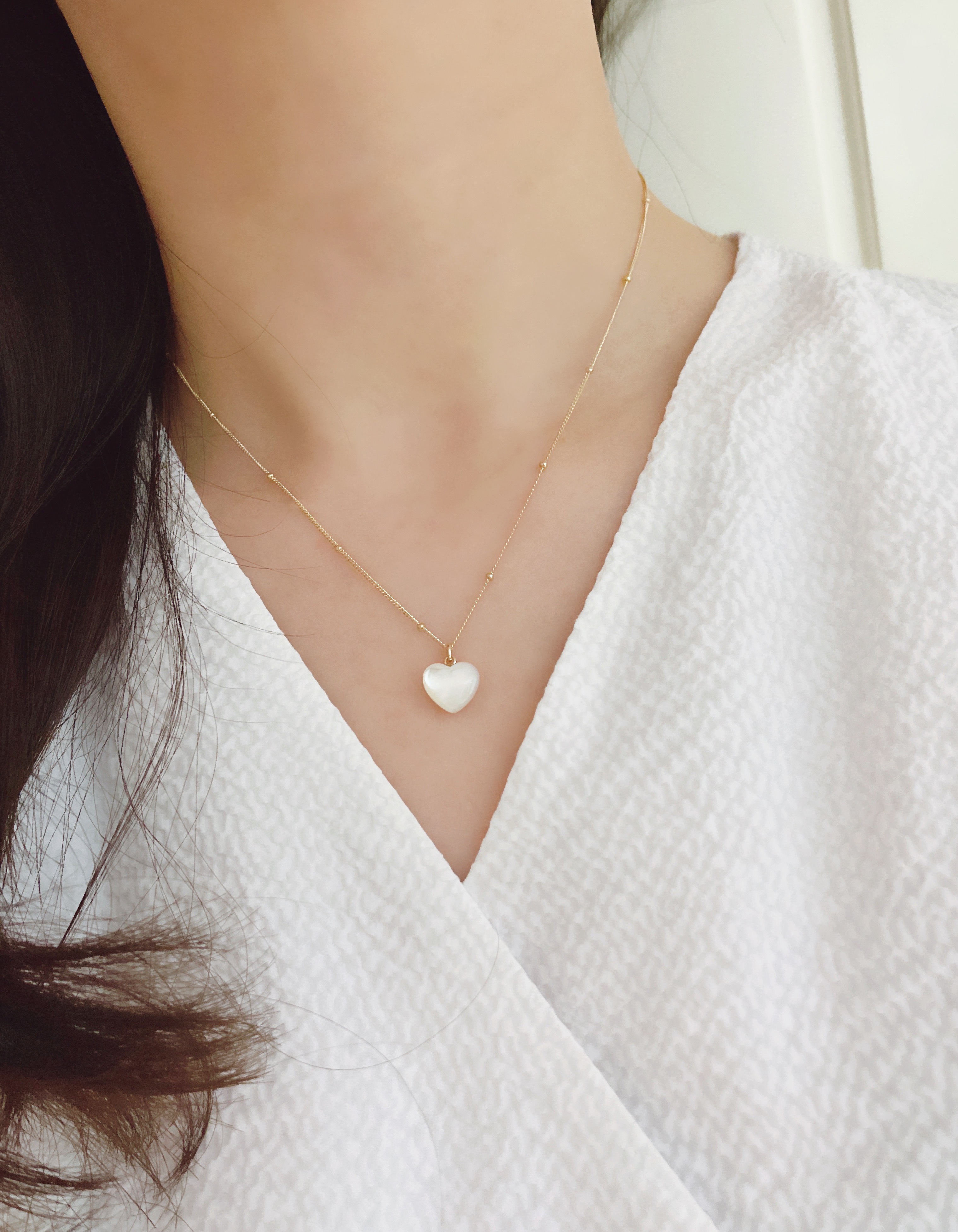 하트 오브 젬 목걸이는 3가지 스톤 옵션 (자개, 오닉스, 터키석) 중 선택 가능합니다 :-)