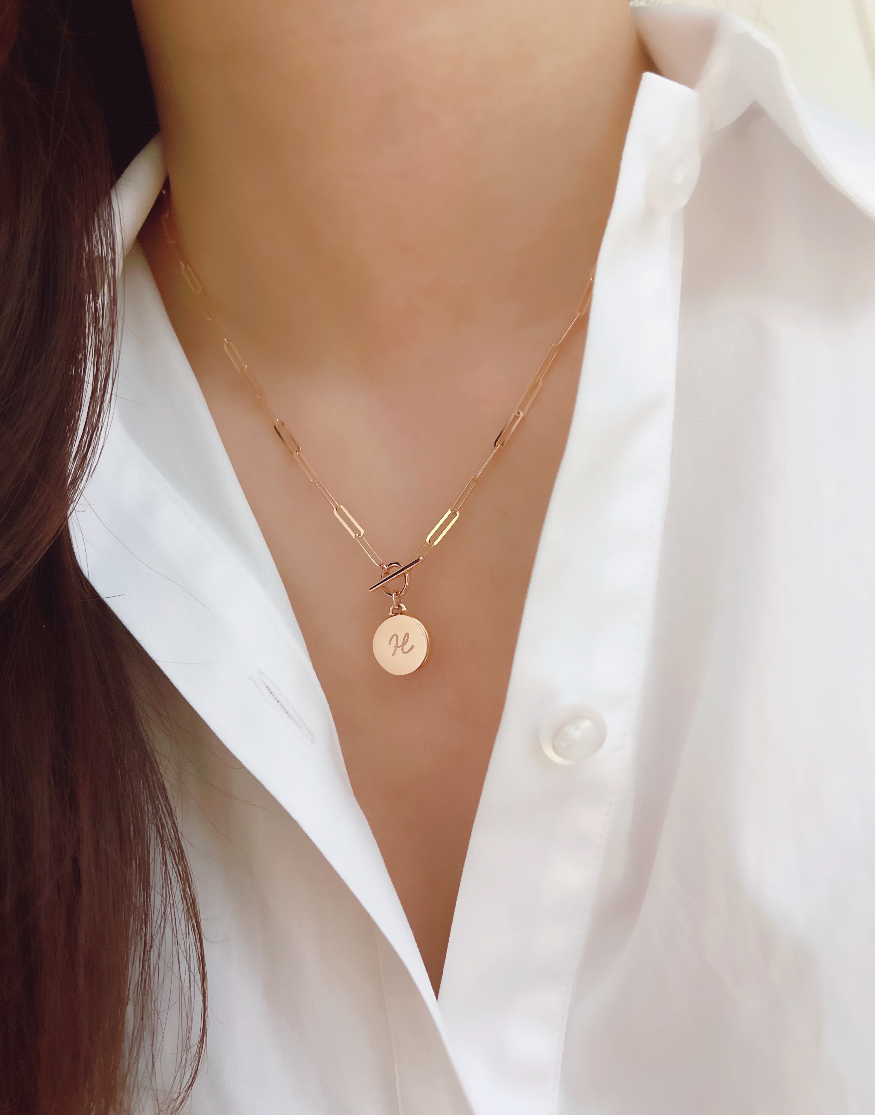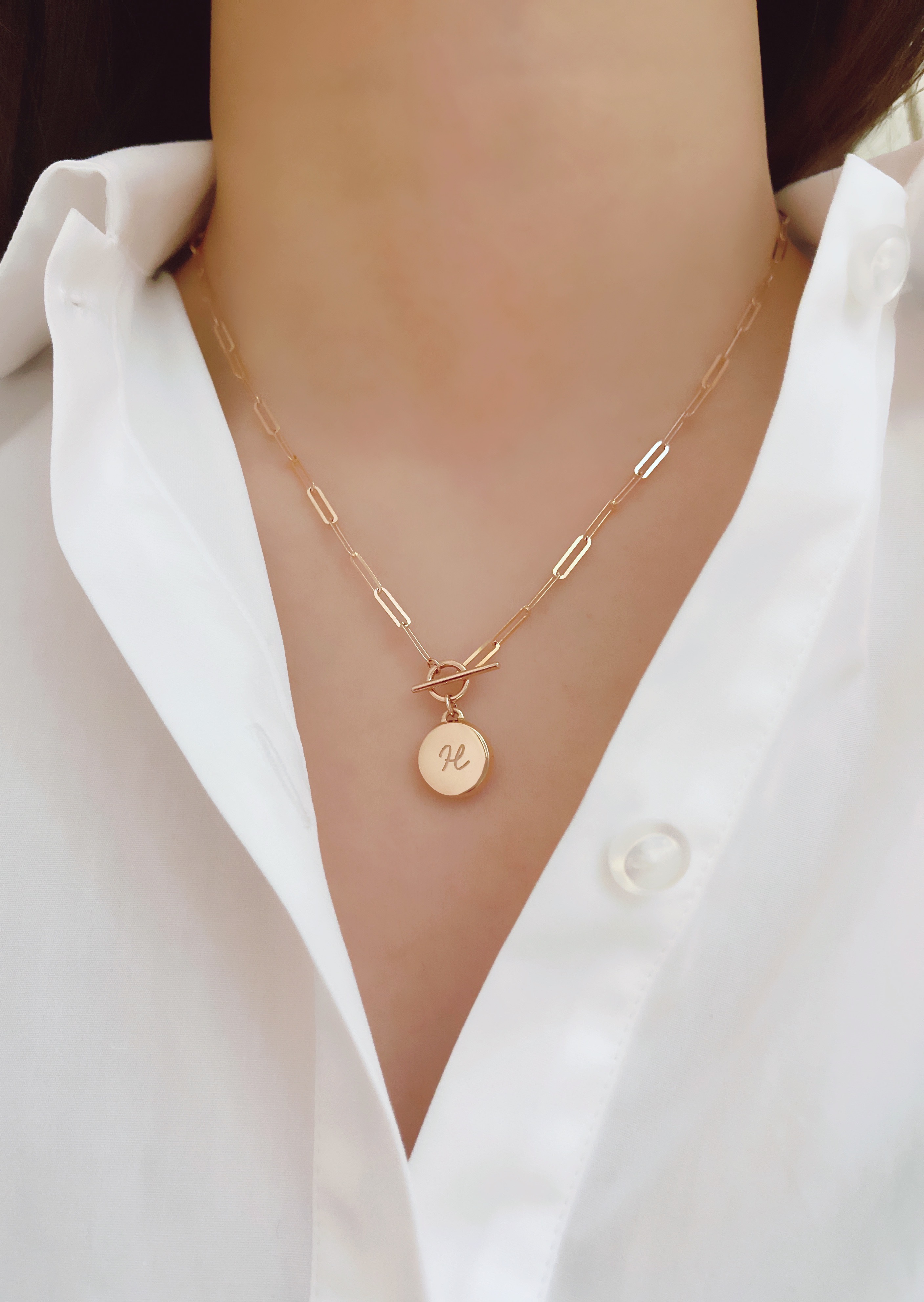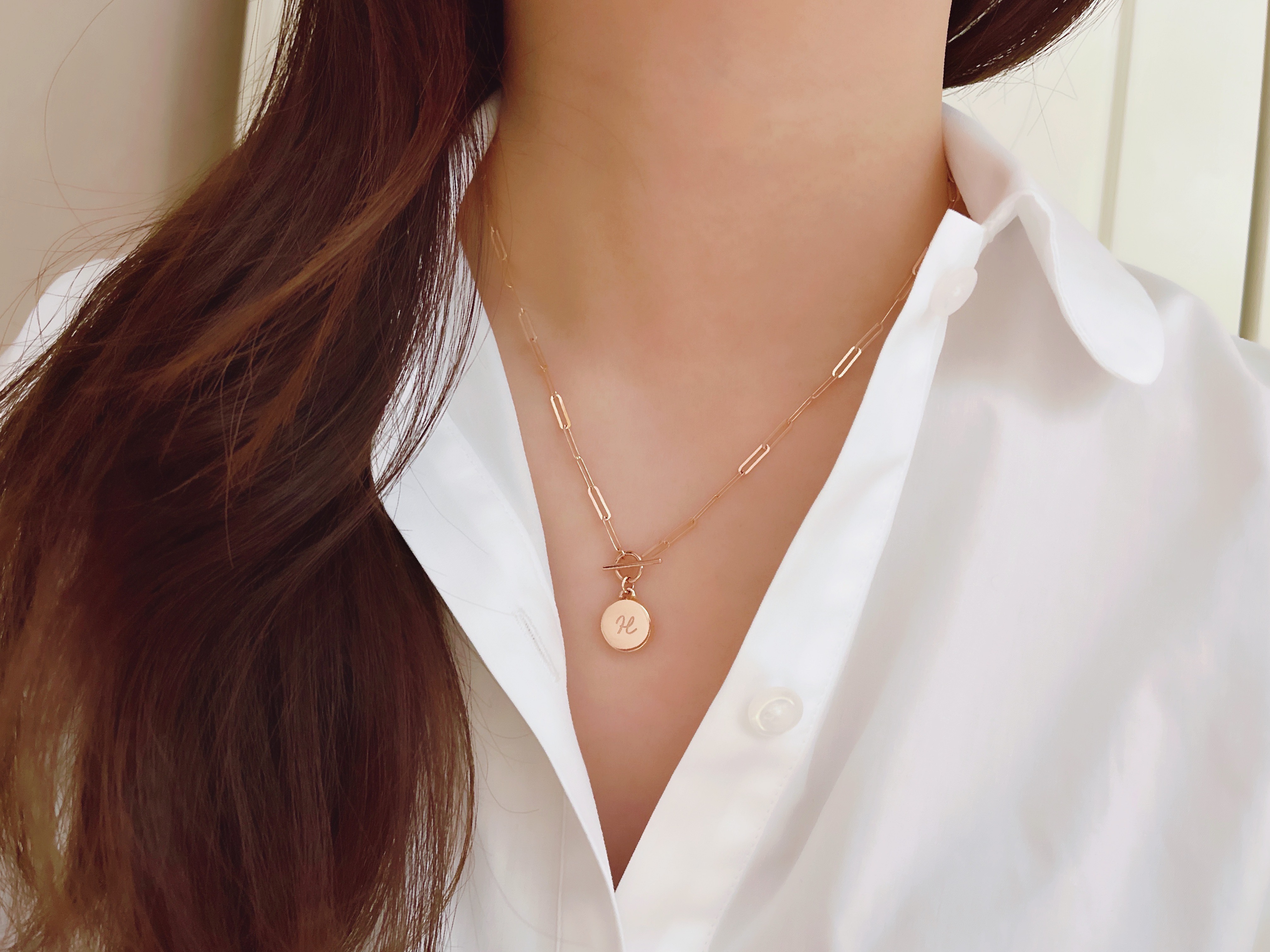 ▫️ 펜던트에는 A~Z 중 원하는 이니셜을 각인하여 제작합니다. (샘플은 H)