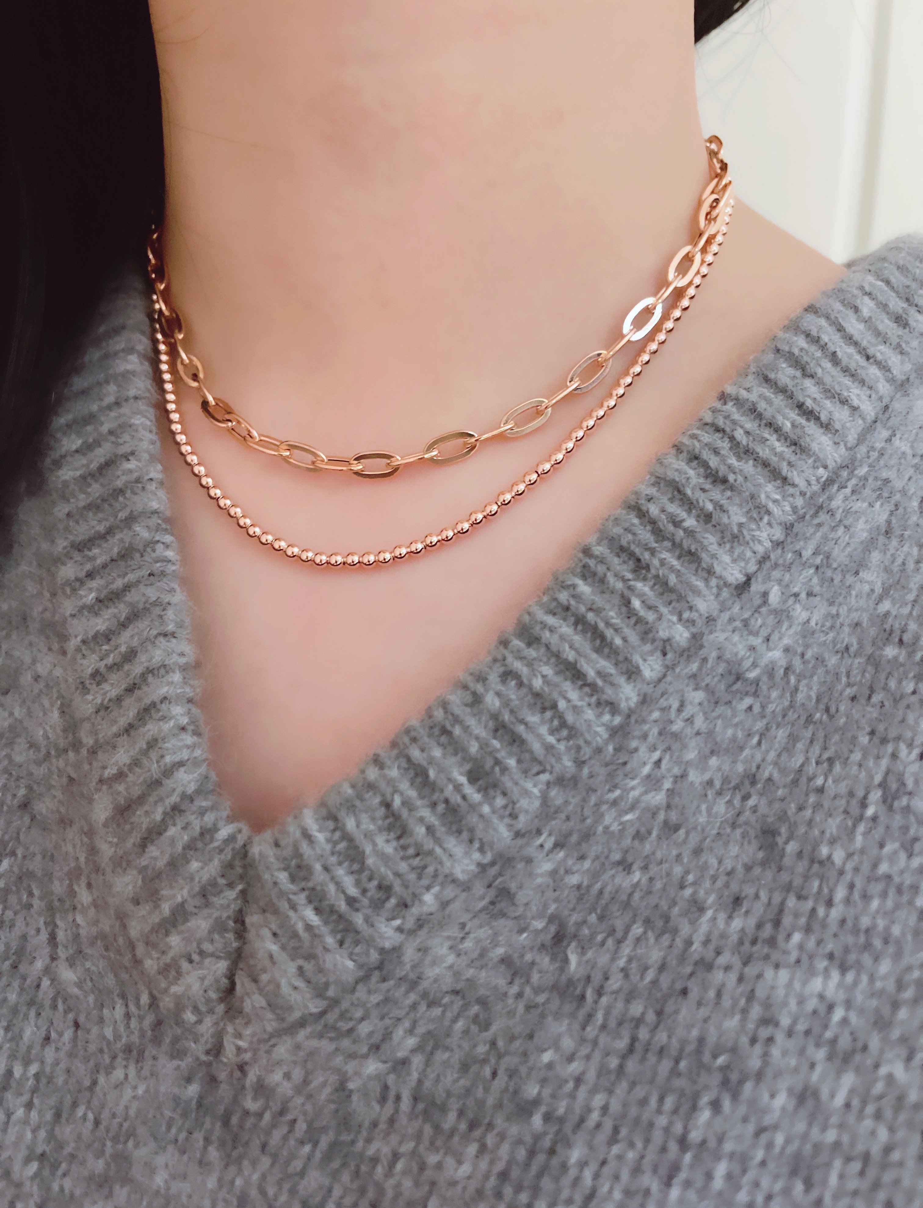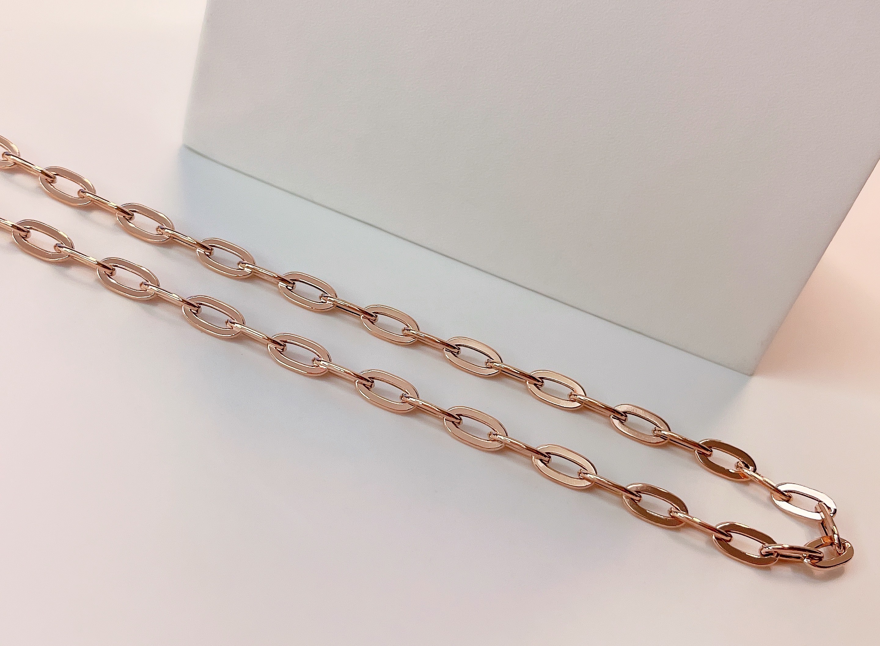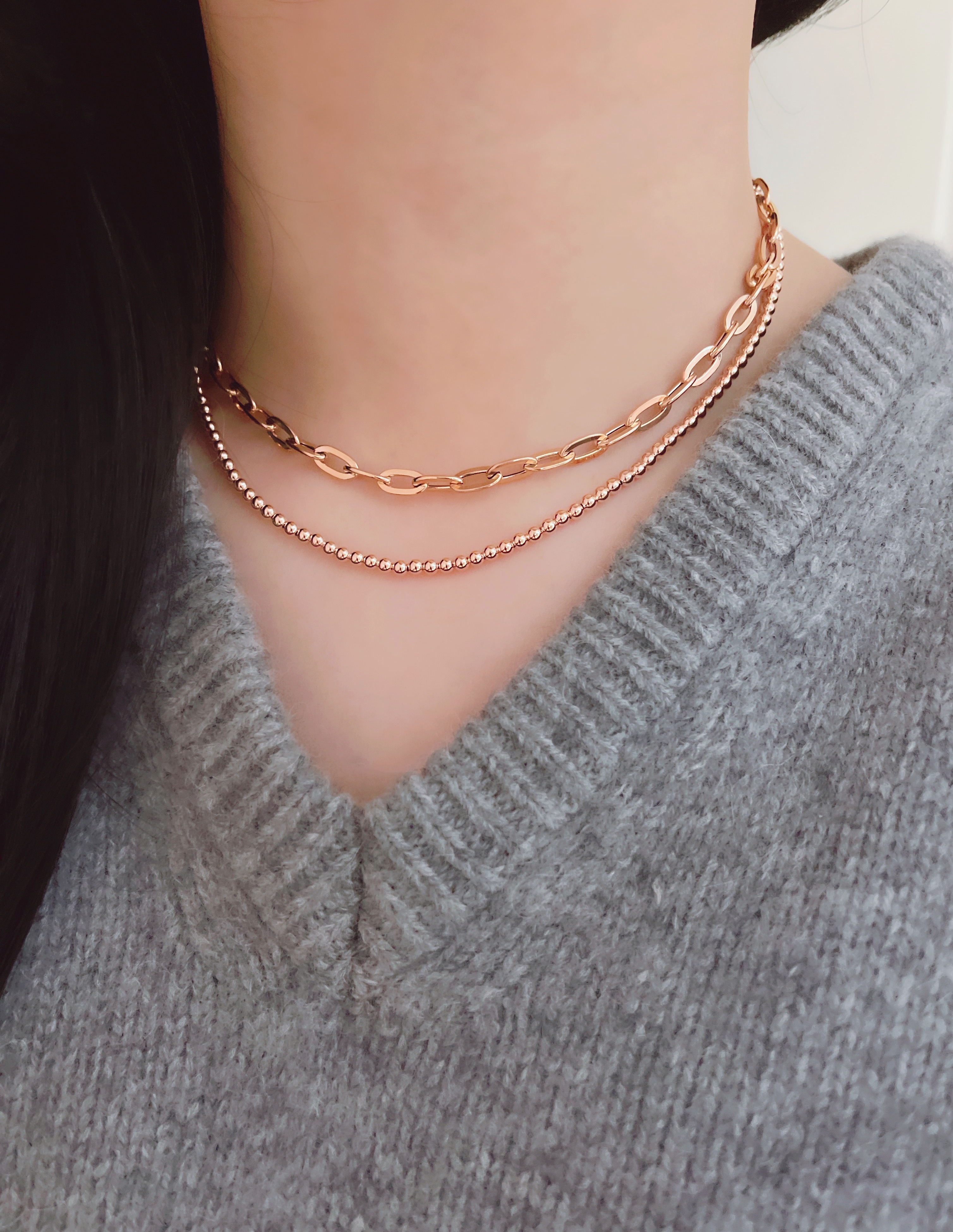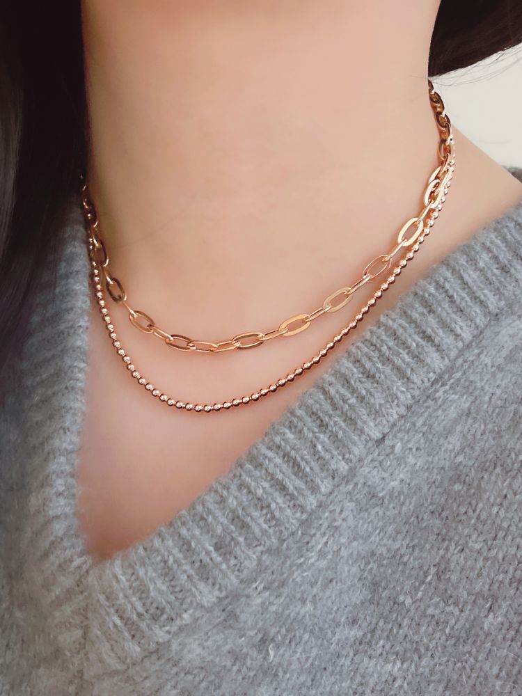 마일드 할로우 체인 목걸이는 각각의 할로우 체인 부속 하나하나를 연결해서 제작하는 팔찌로