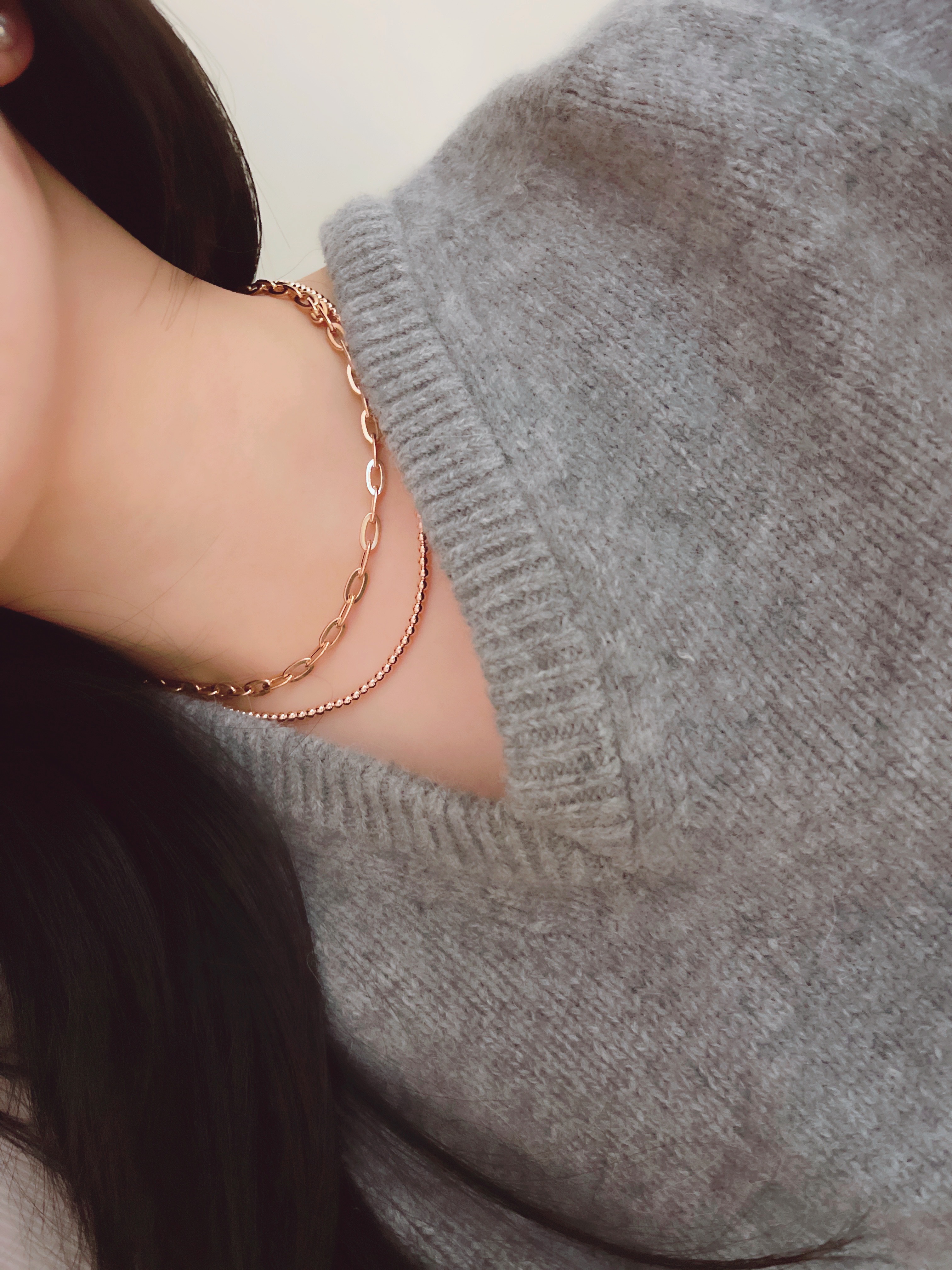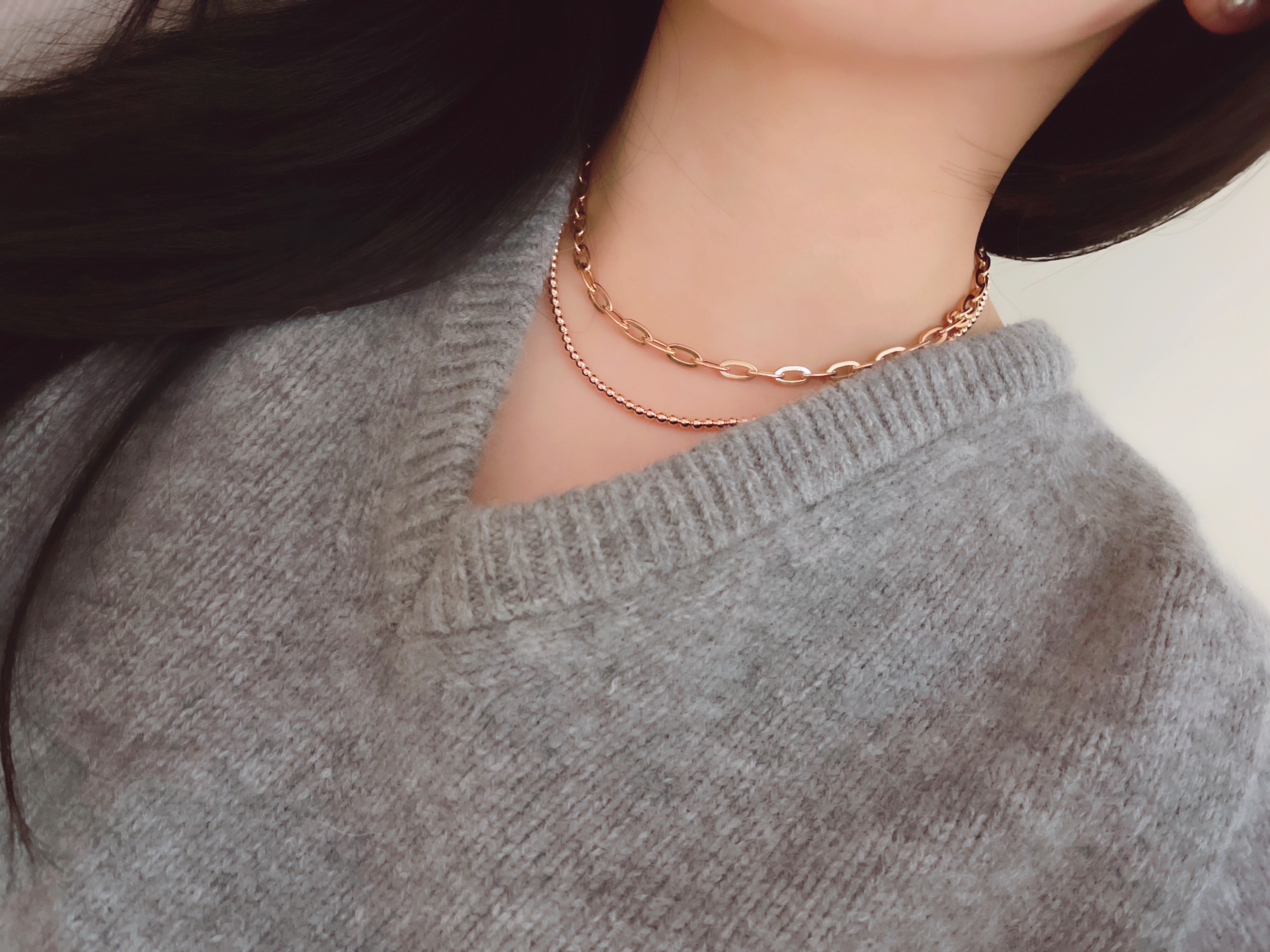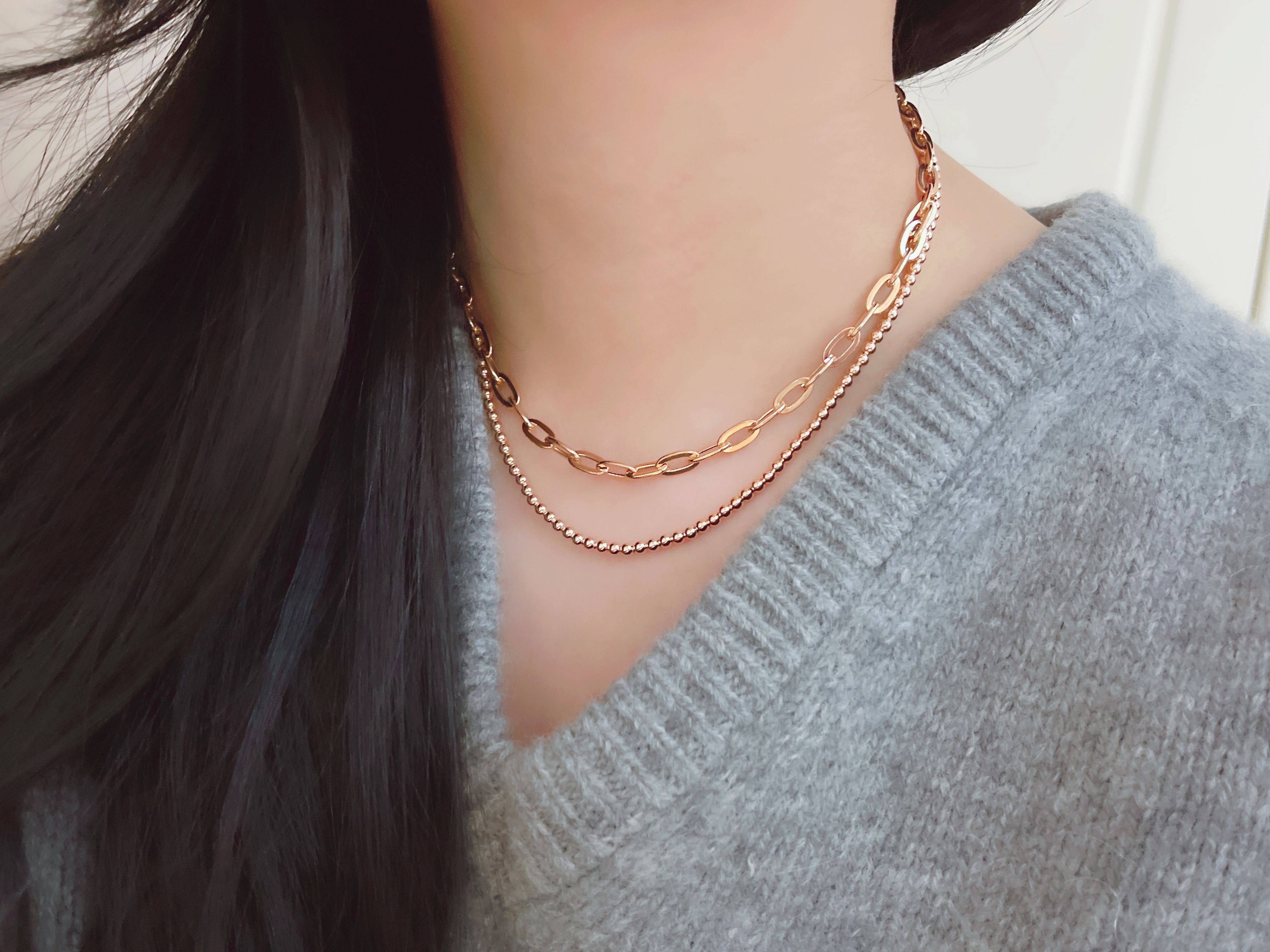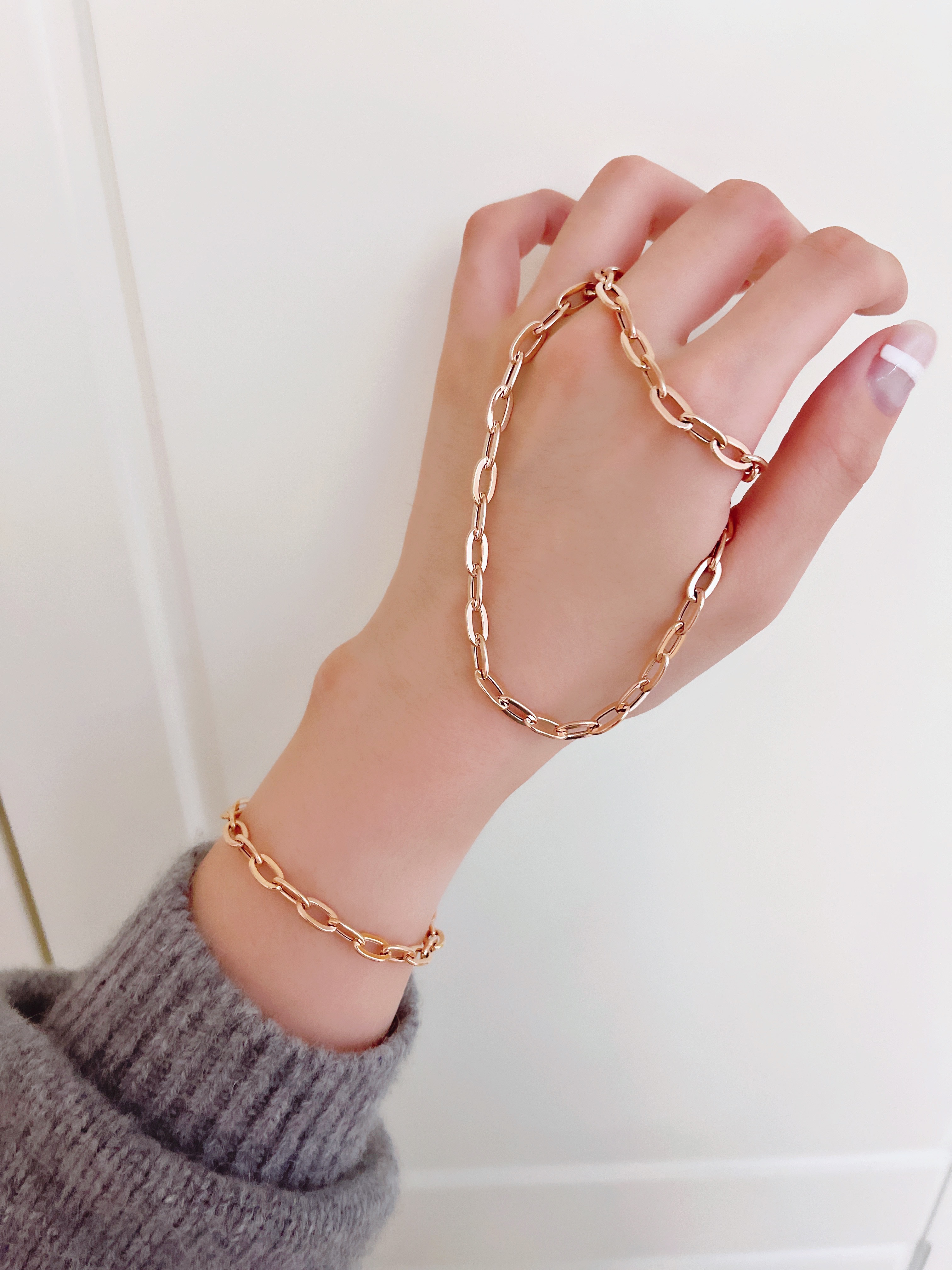 마일드 할로우 체인 목걸이는 각각의 할로우 체인 부속 하나하나를 연결해서 제작하는 팔찌로