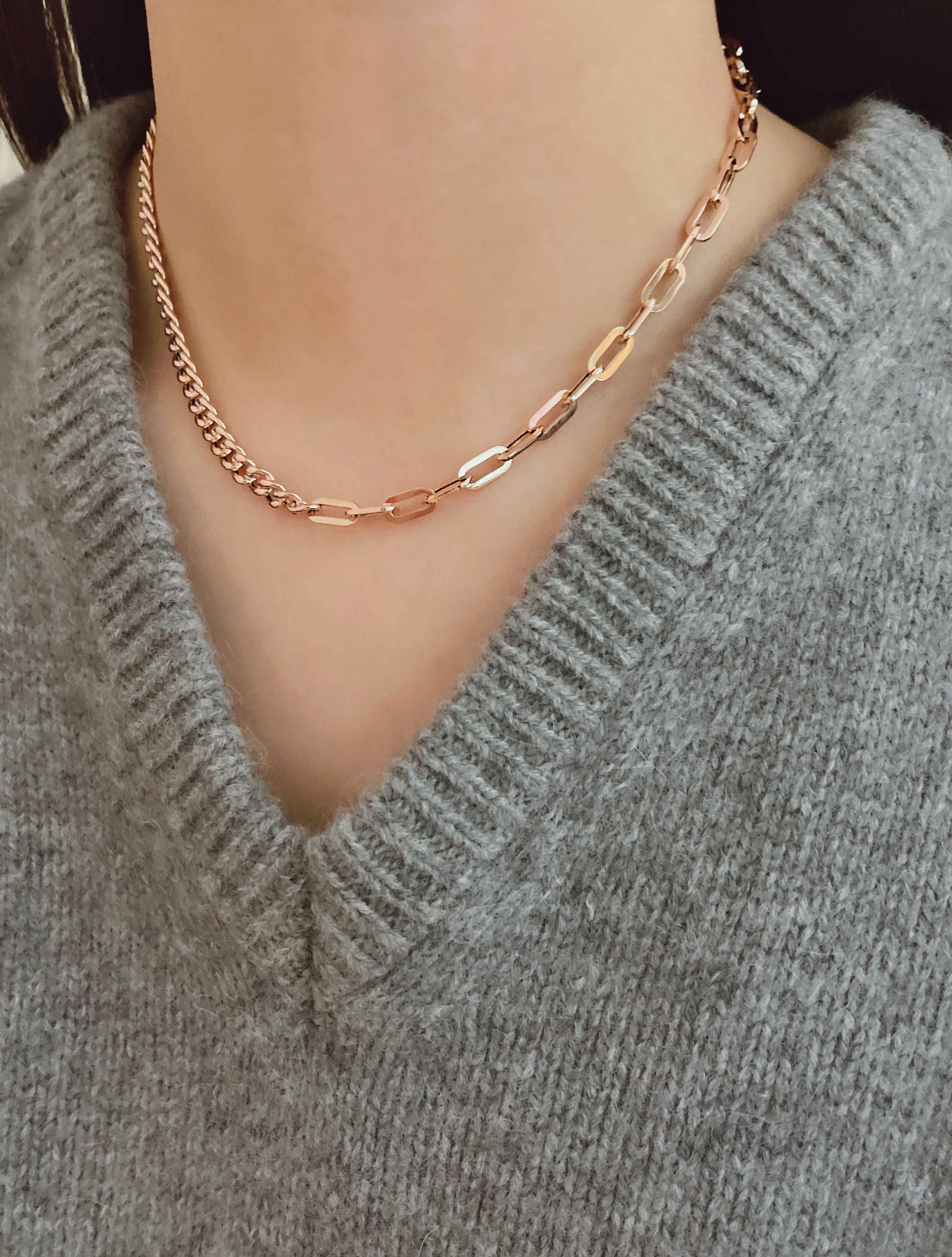 심플 할로우 콤비는 각각의 할로우 체인 부속 하나하나를 연결해서 제작하는 팔찌로