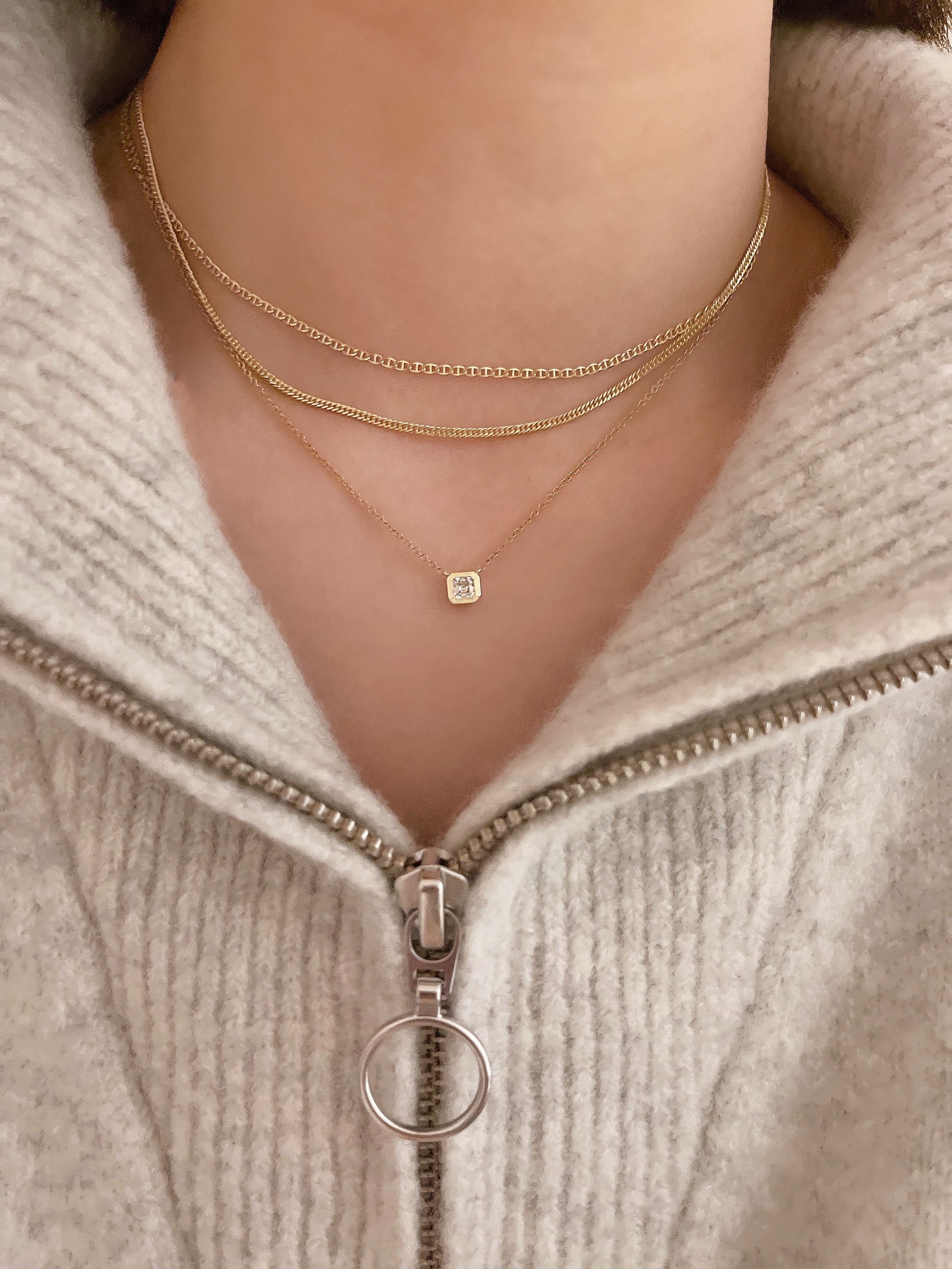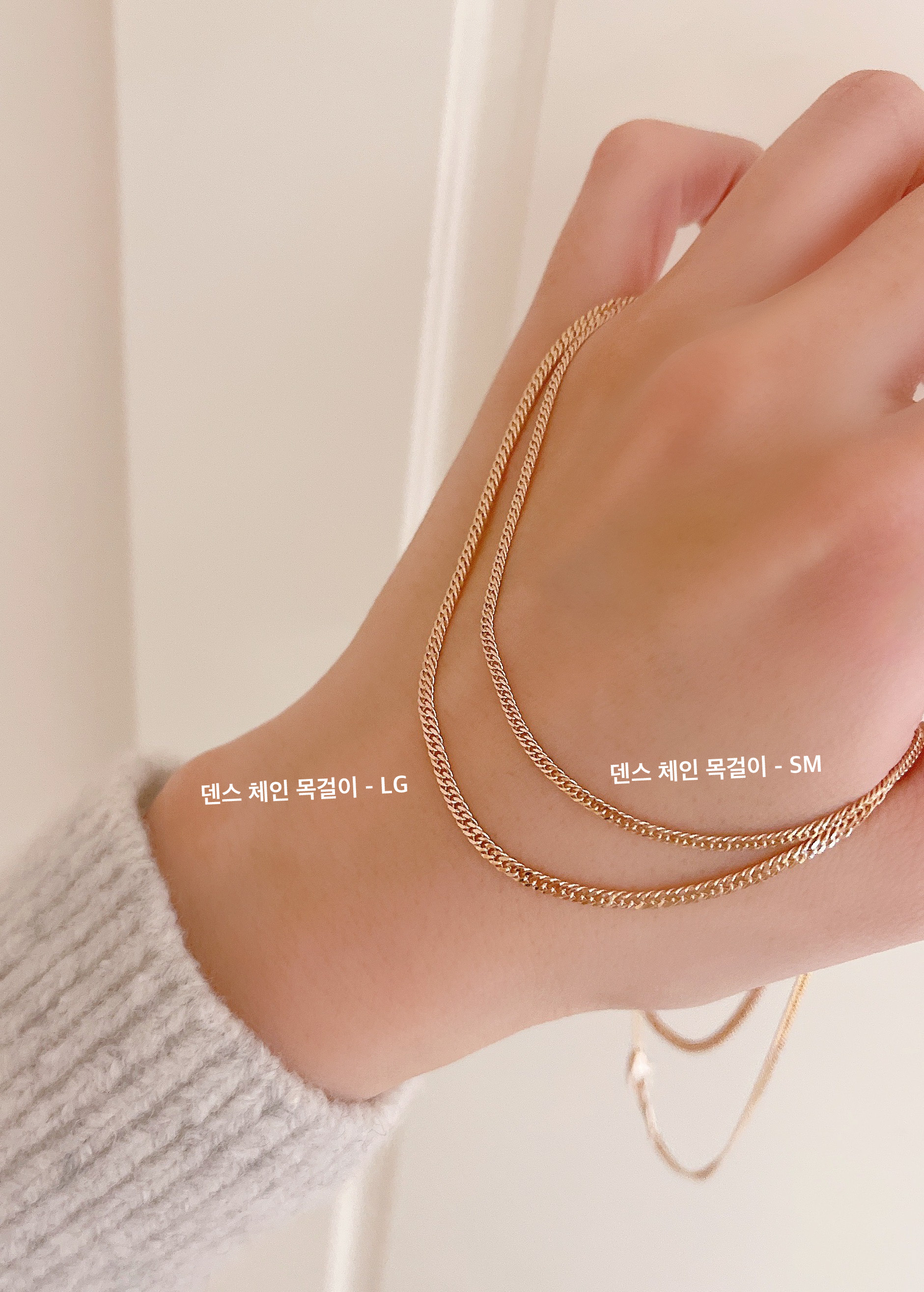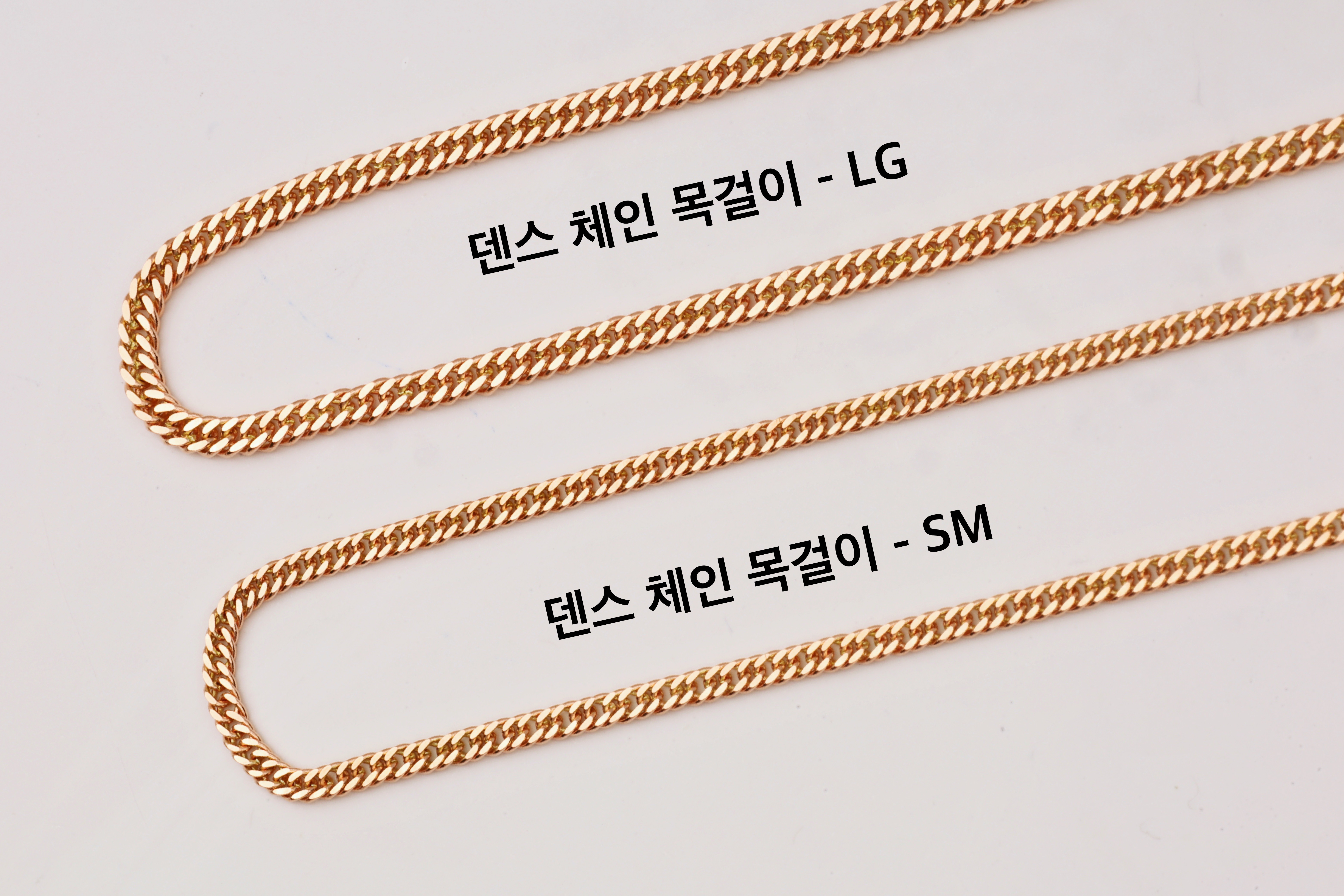 일반 체인과 비교했을때 체인 조직이 서로 촘촘하게 연결되어 내구성이 뛰어나고 착용했을때 체인 결의 매력이 더욱 돋보이는 제품입니다.