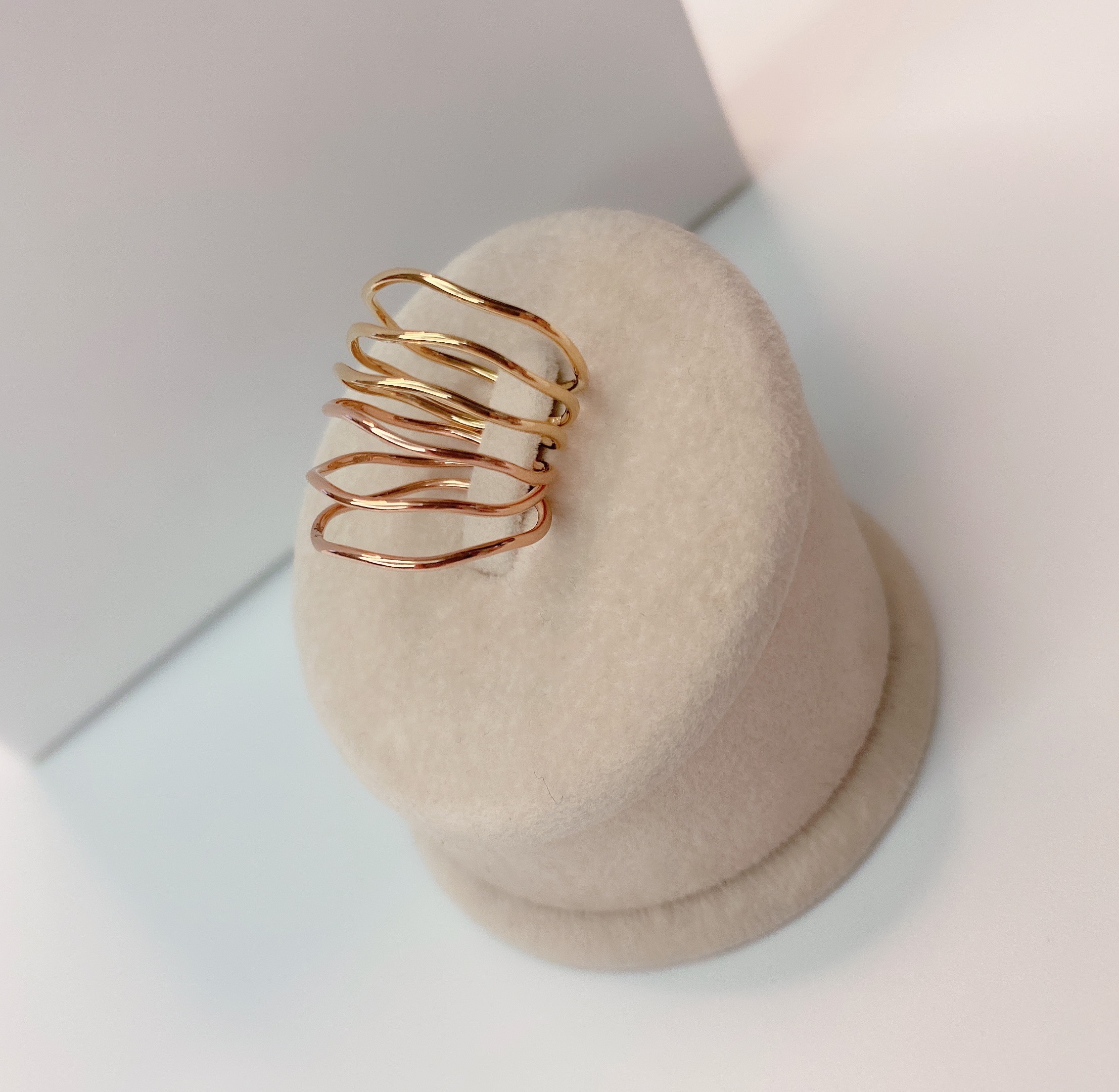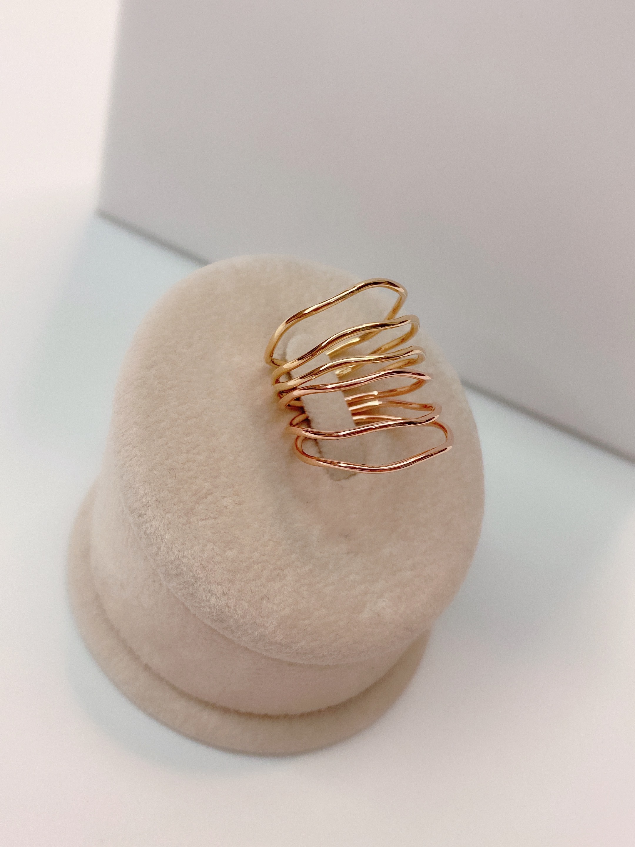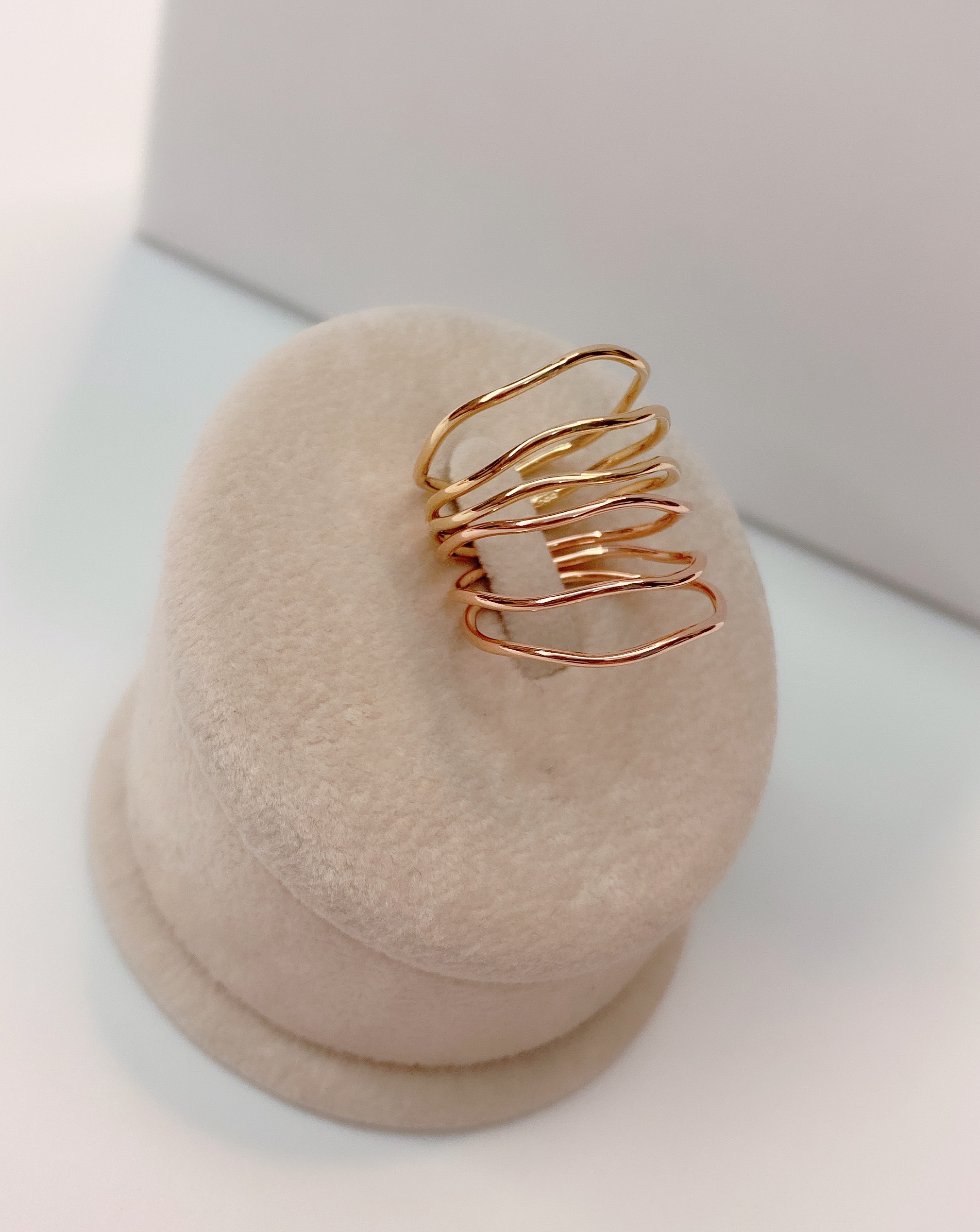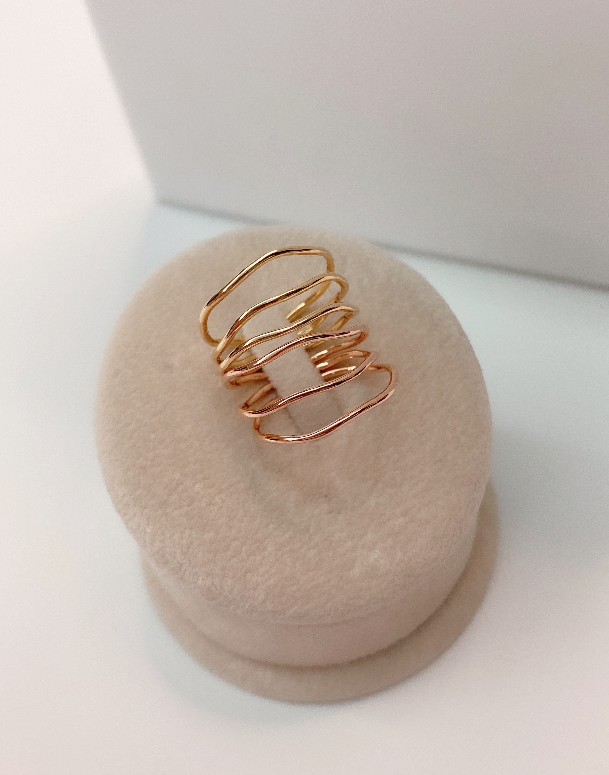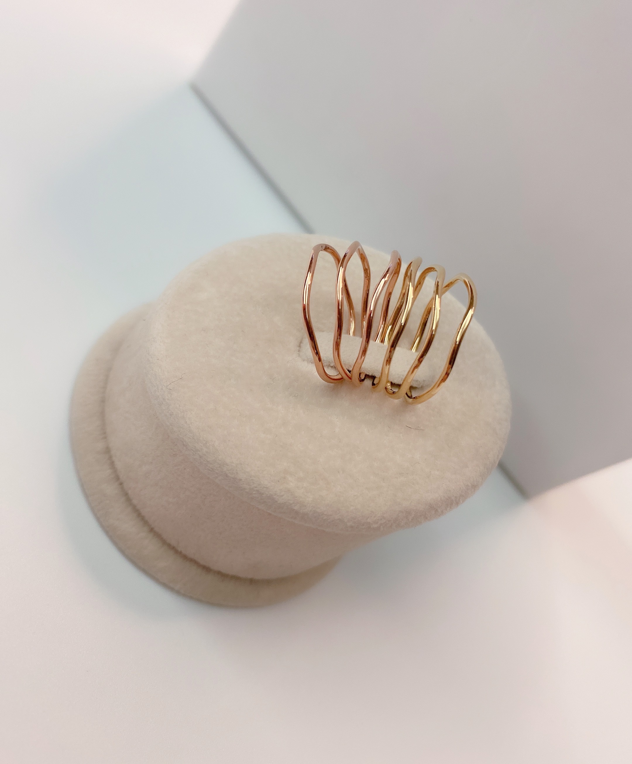 와이어링 기법으로 강도가 강한 웨이브 형태의 원통 실반지 입니다.